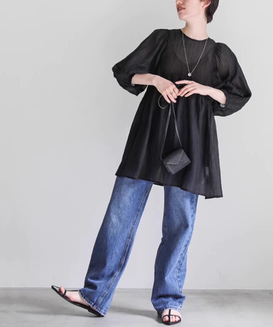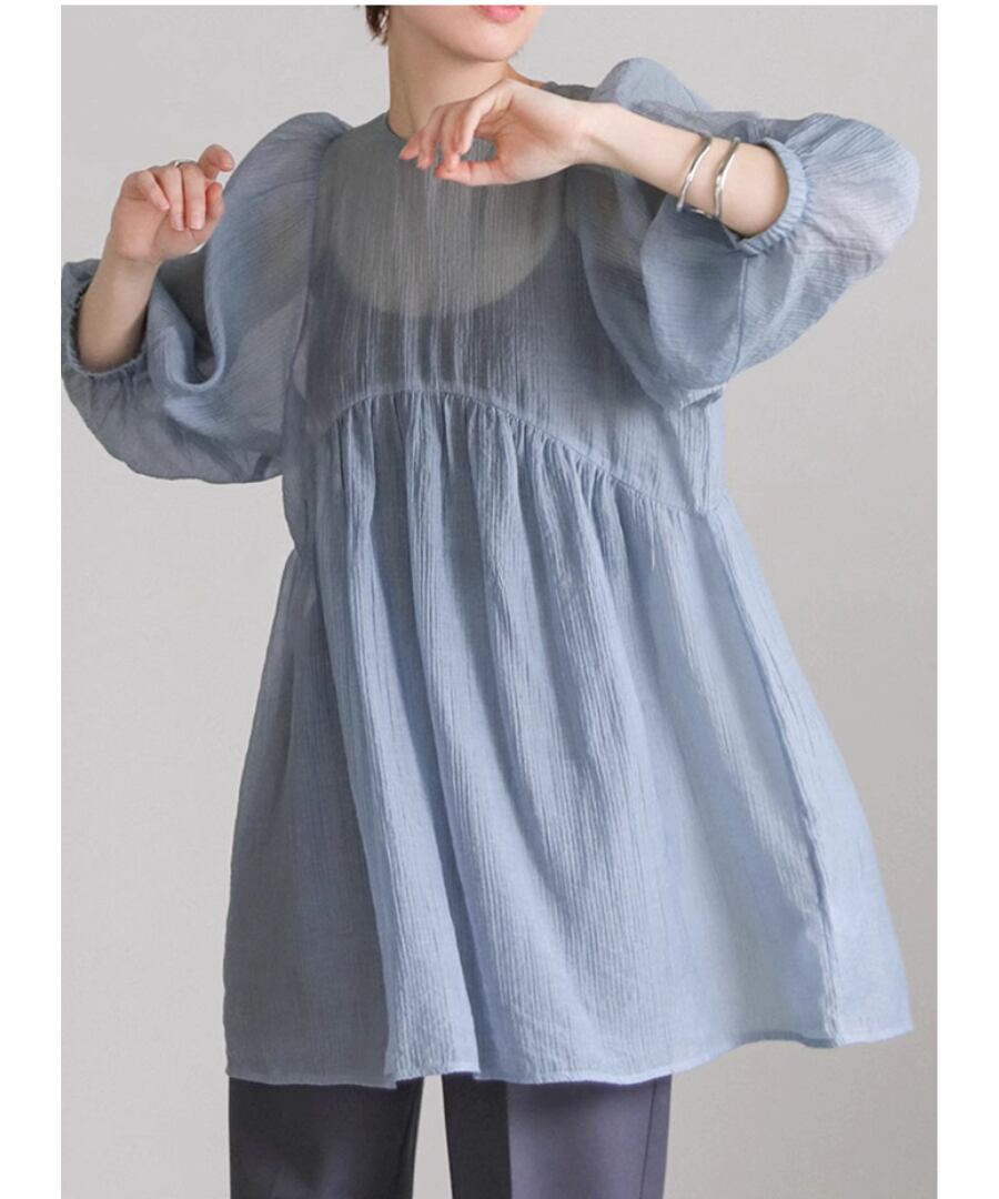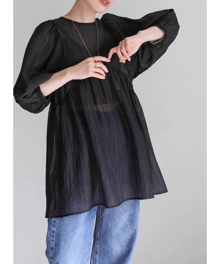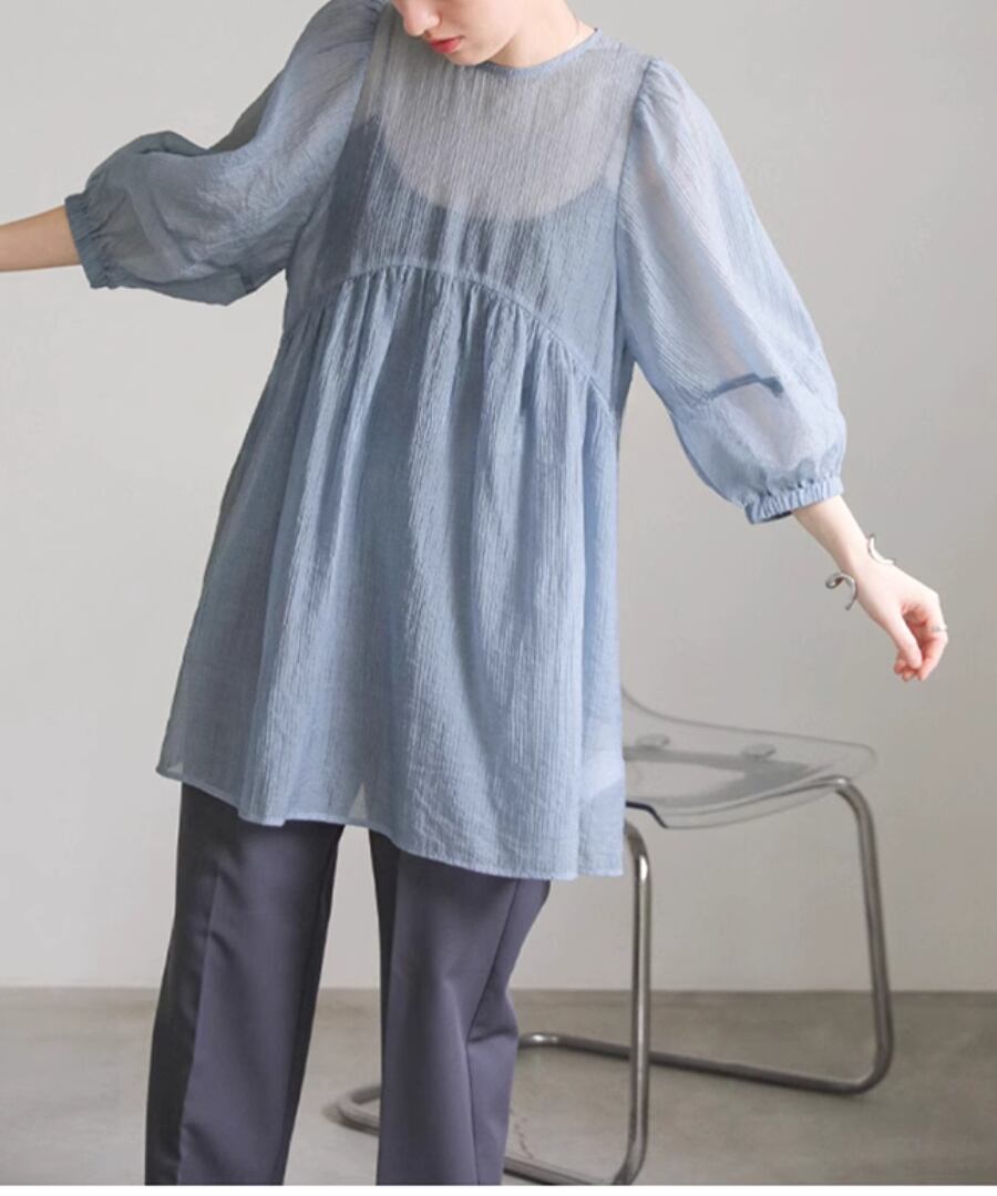 ランタンスリーブ◆シアーブラウス【t-10539】