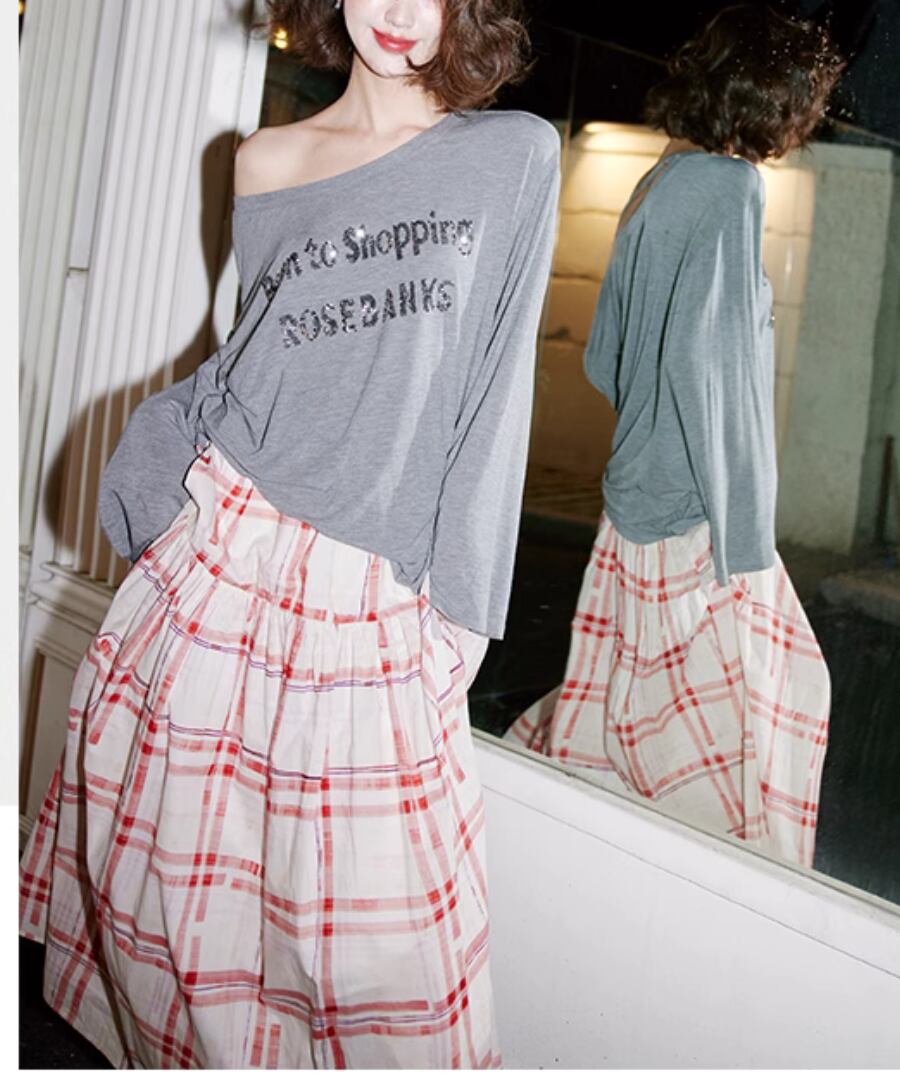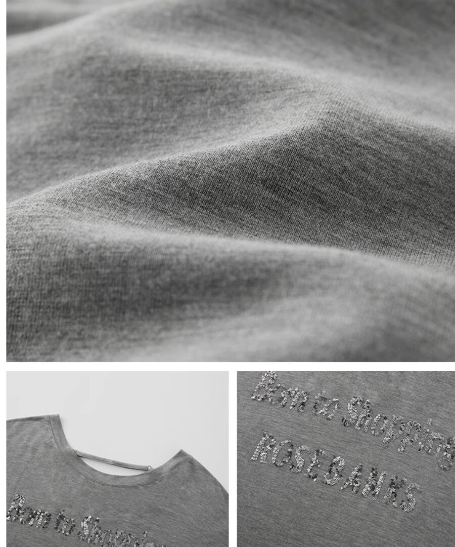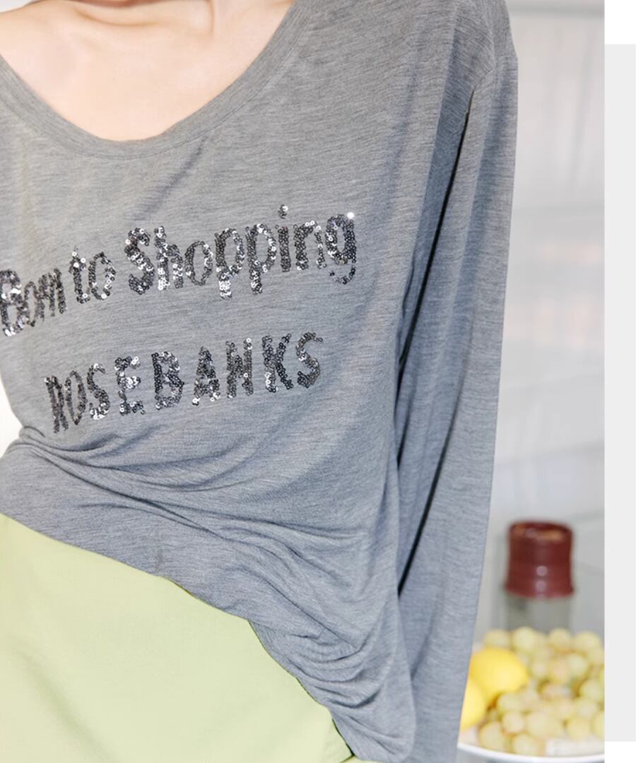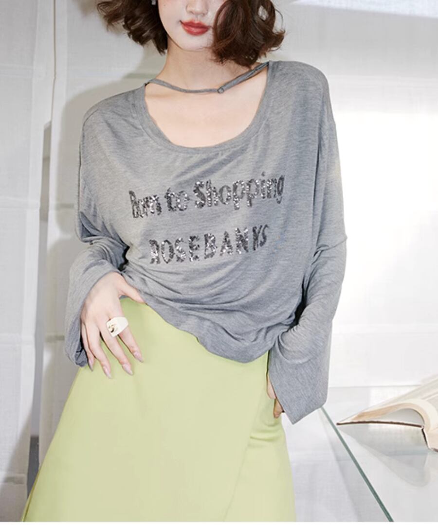 スタイリッシュなオフショルダーのデザインと、煌めくスパンコールが特徴のカットソー。