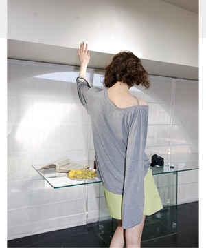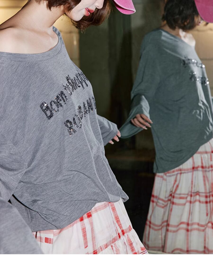 オフショルダーカットソー◆スパンコールデザイン【t-10994】
