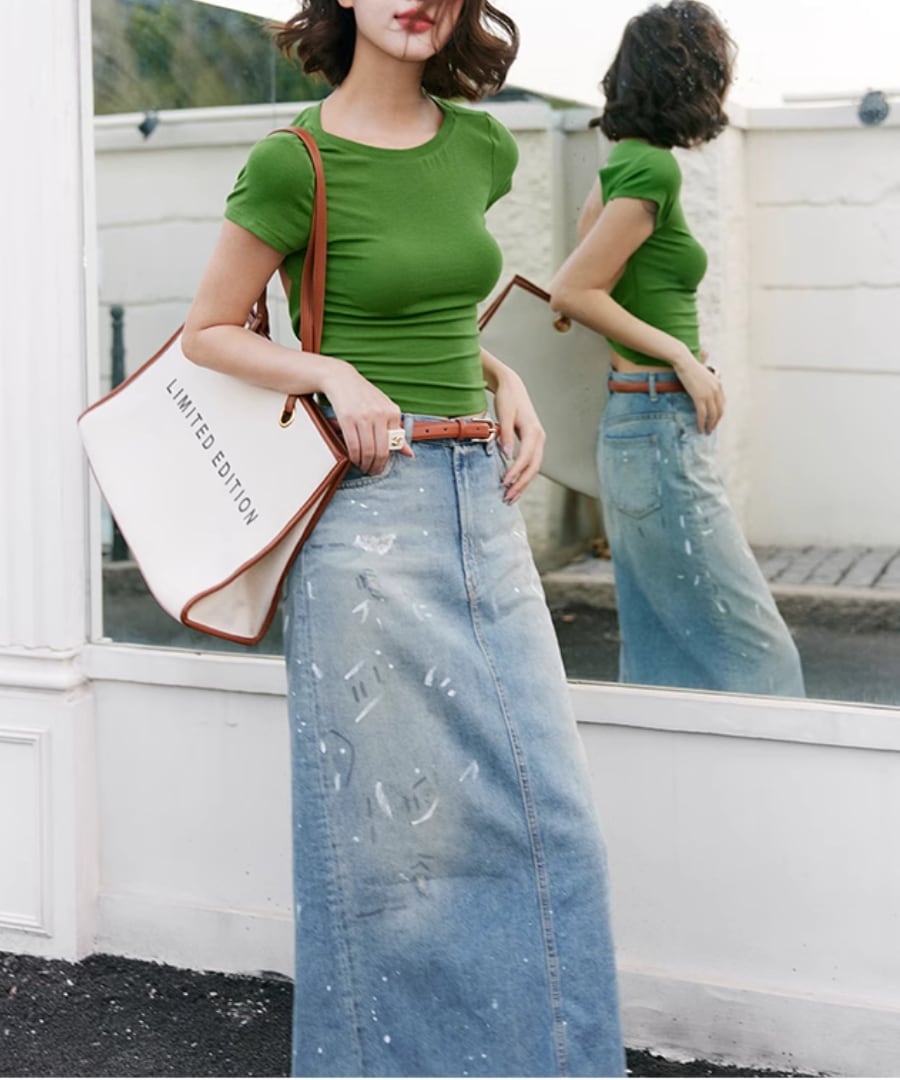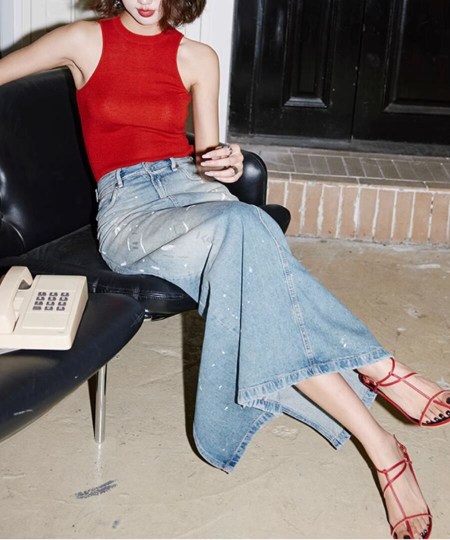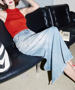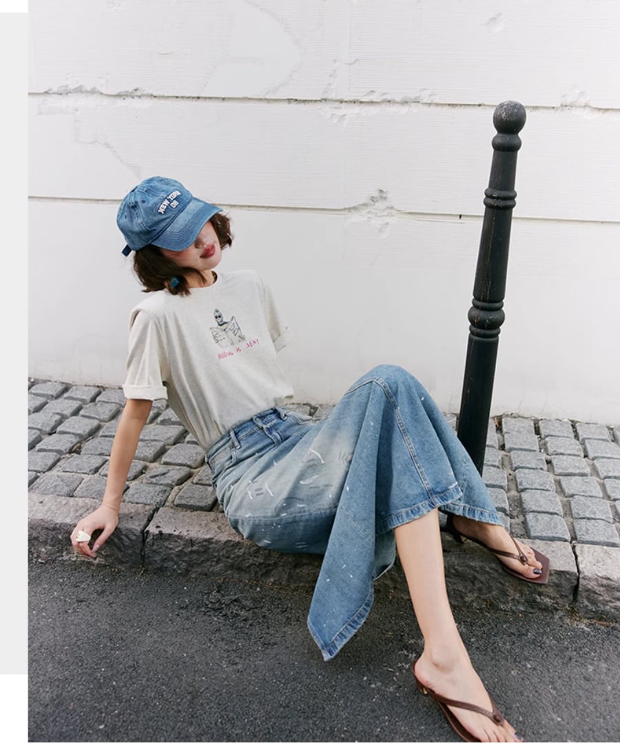 ジーンズの色合いが特別な印象を与え、カジュアルなシーンやお出かけにもぴったりです。