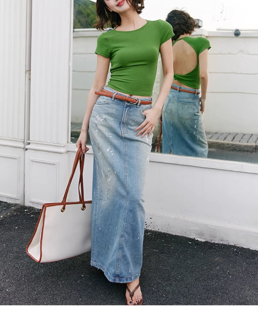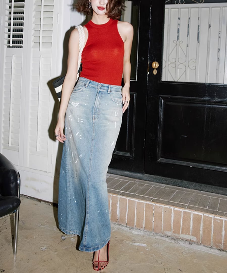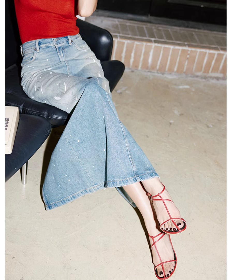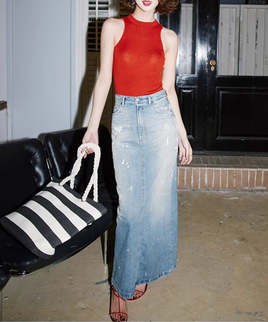 ジーンズの色合いが特別な印象を与え、カジュアルなシーンやお出かけにもぴったりです。