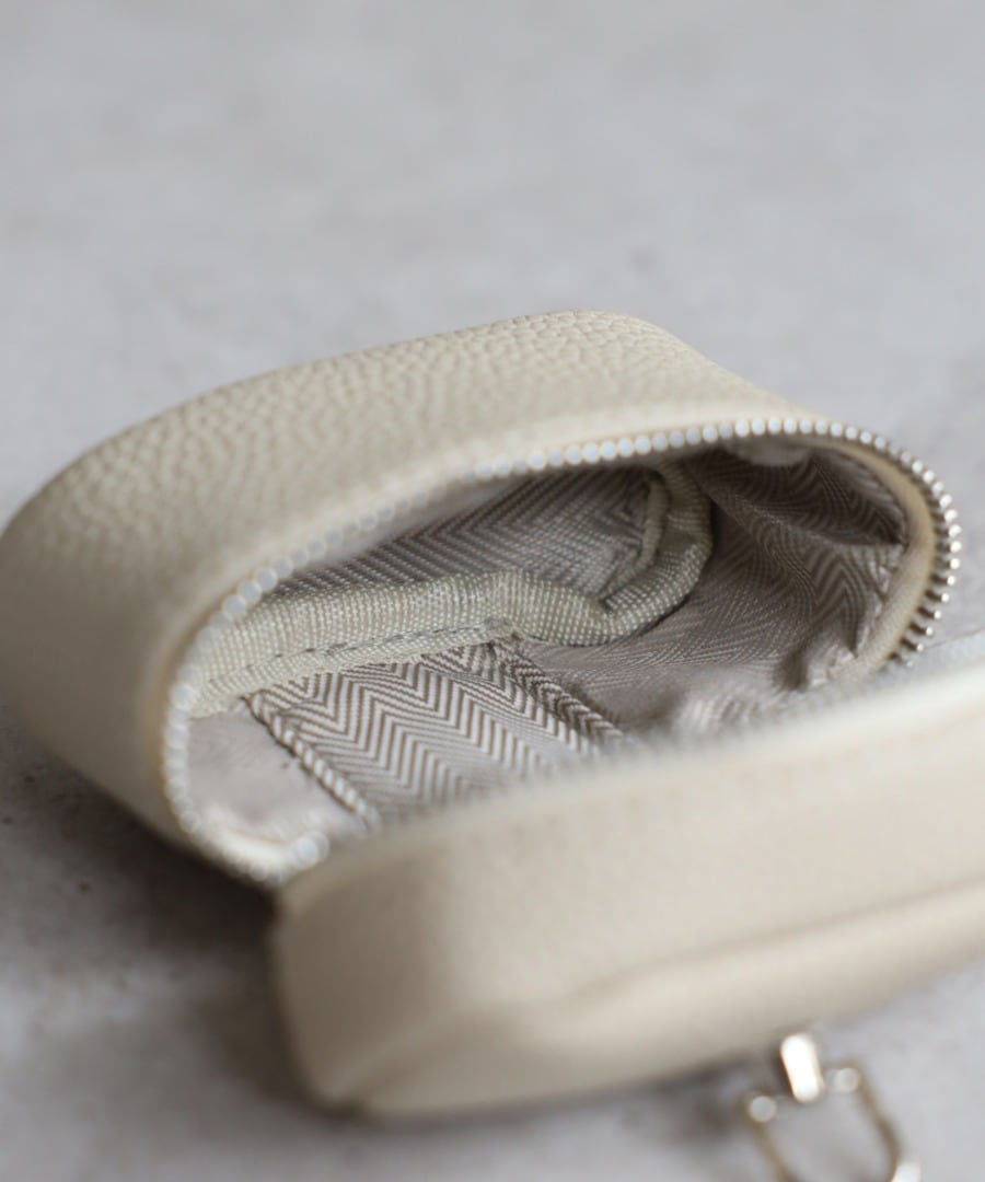 アクセサリー感覚で使える、スクエアフォルムのミニポーチ。