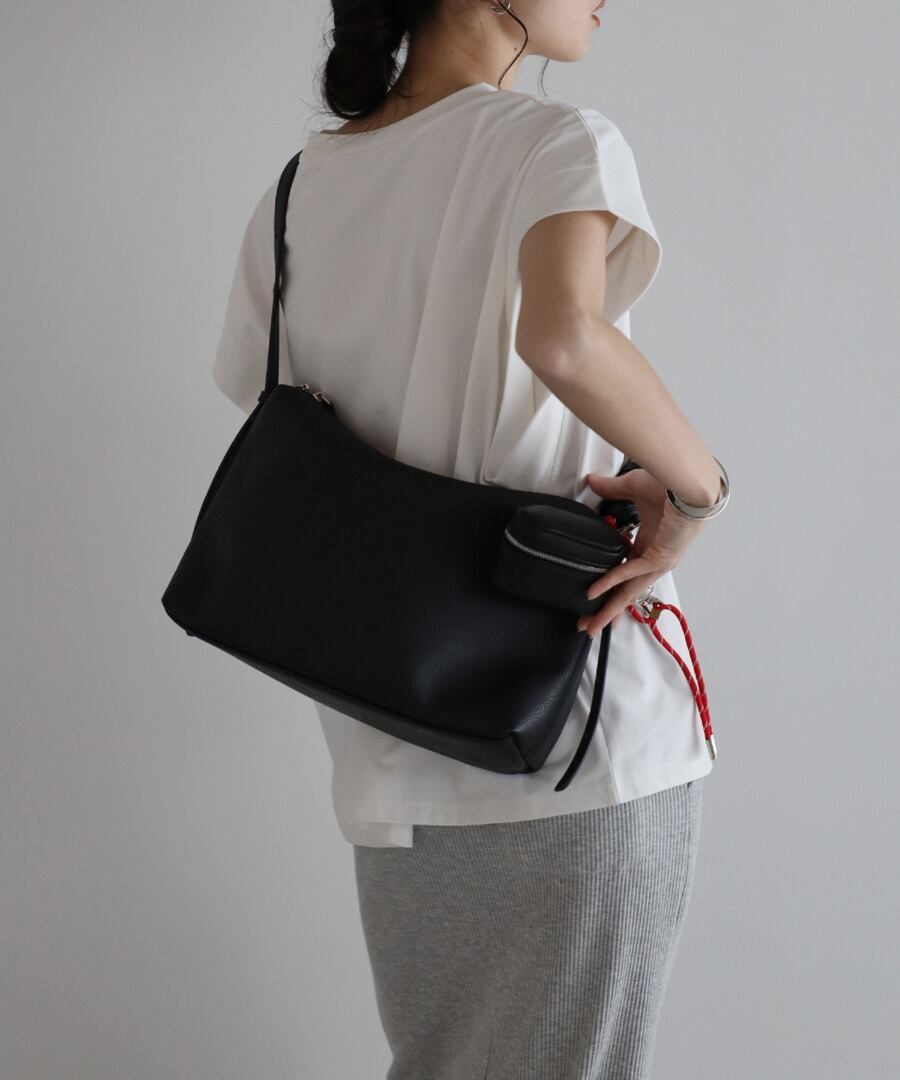 高見えするシボ感フェイクレザーで、スタイリングに上品さをプラス。