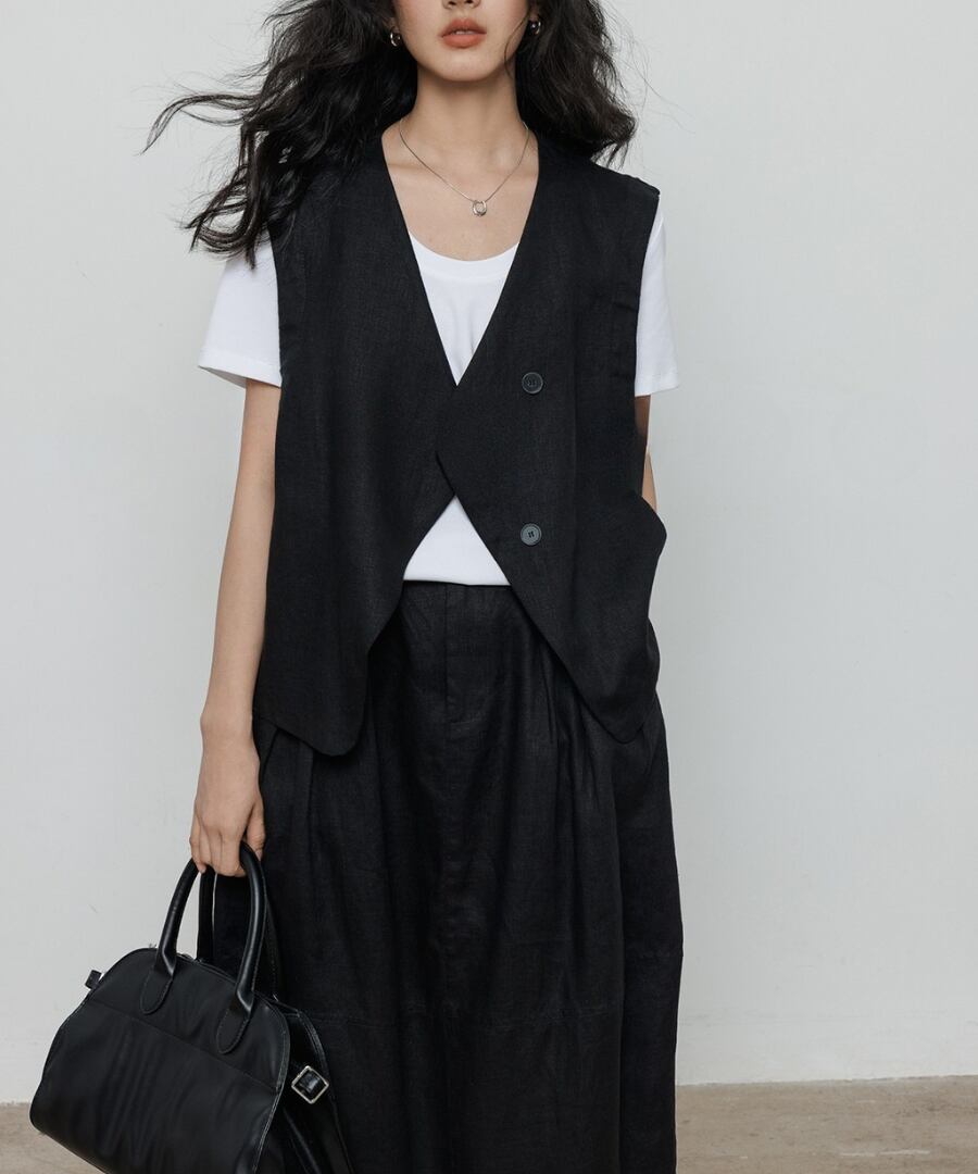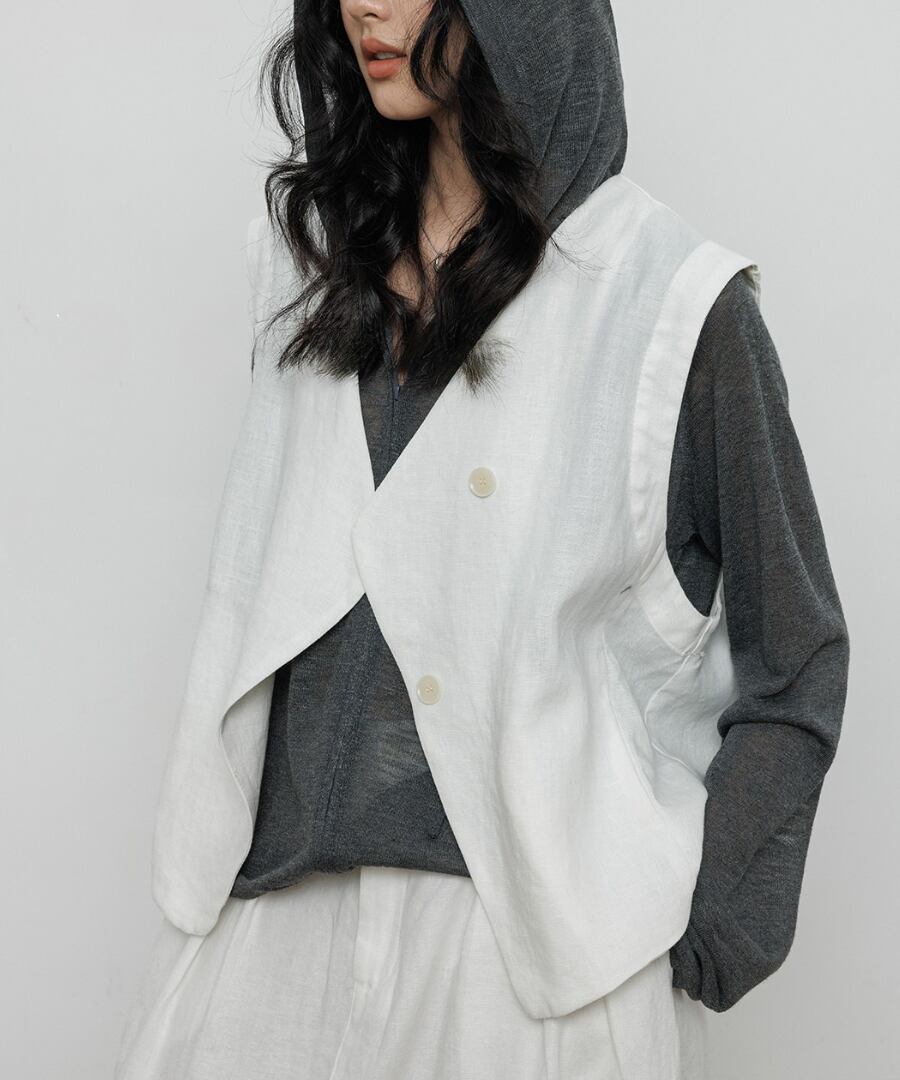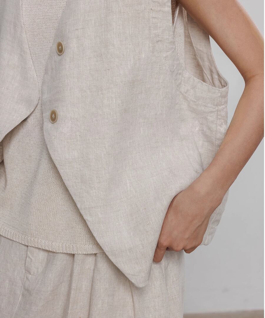 リネン素材ならではの軽やかさと通気性が、これからの季節にぴったりな一着。