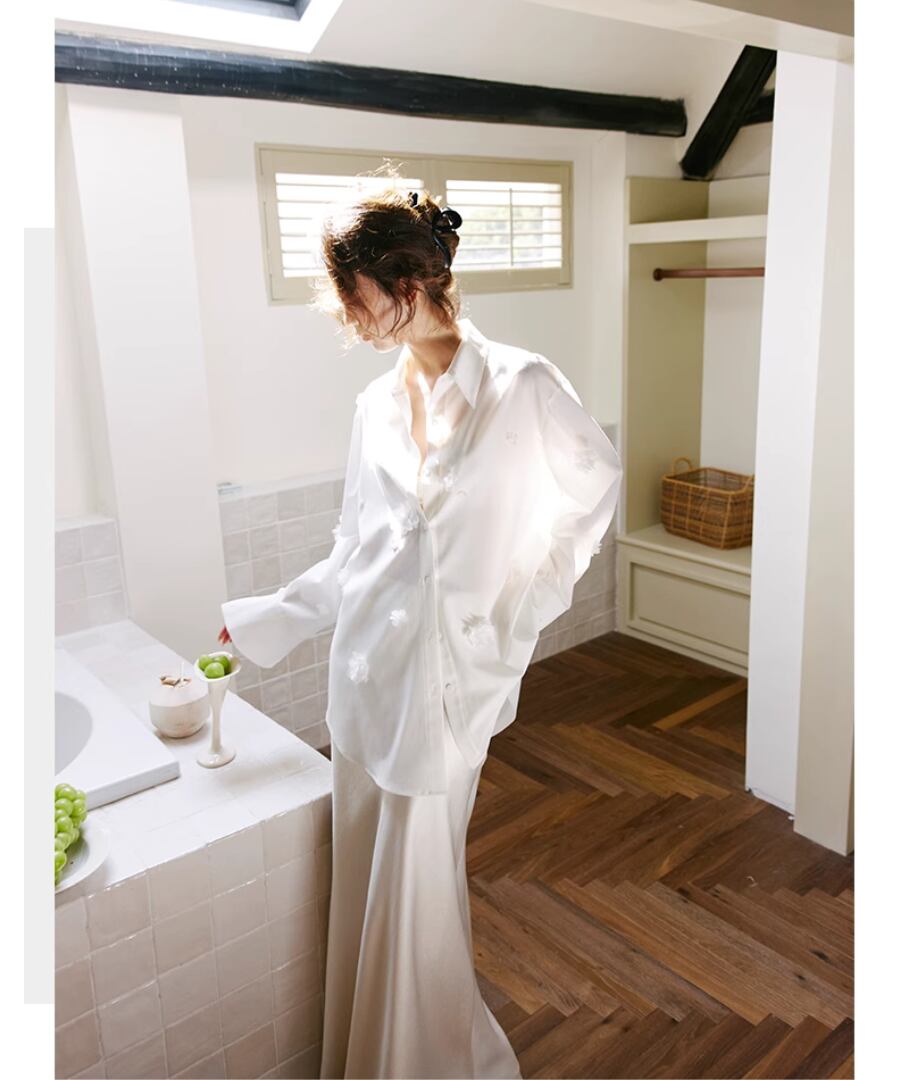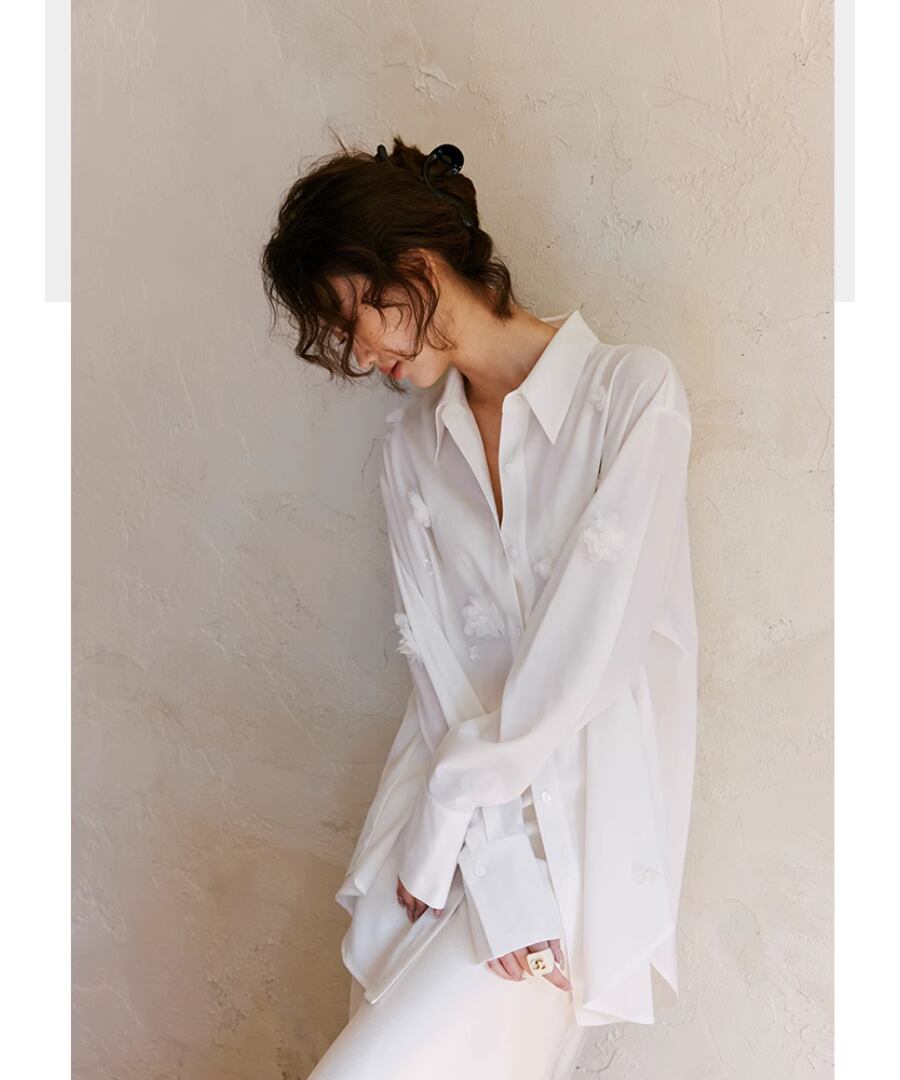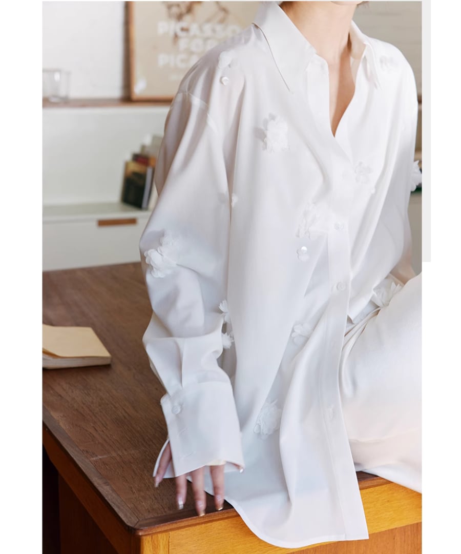 フラワーモチーフ&シェル◆ホワイトシャツ【t-10363】