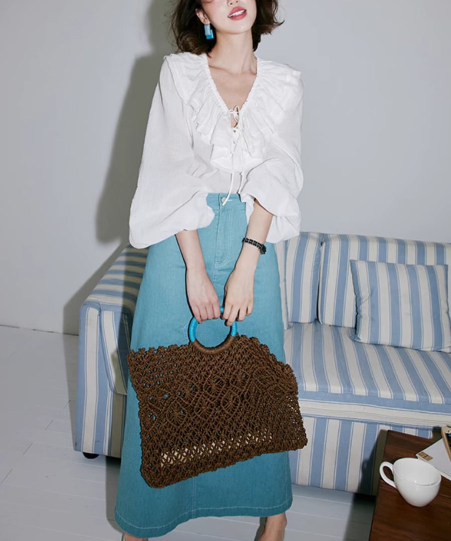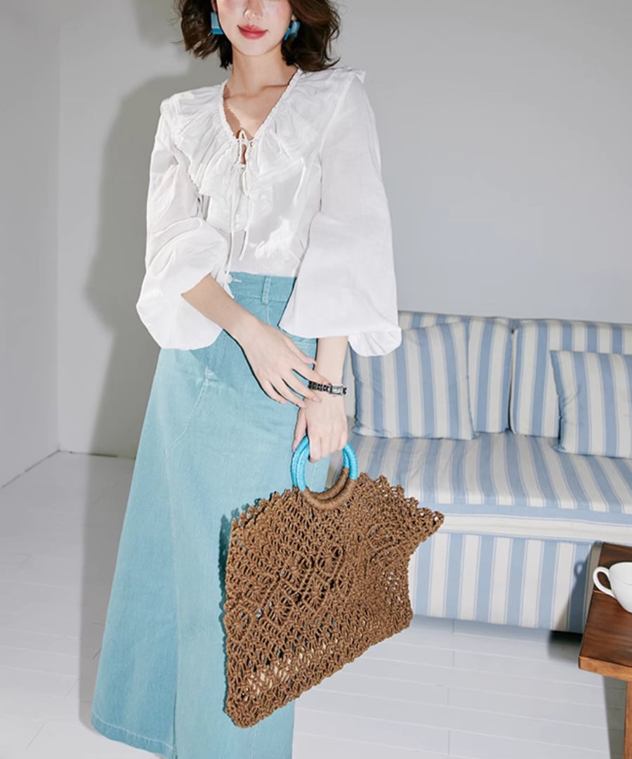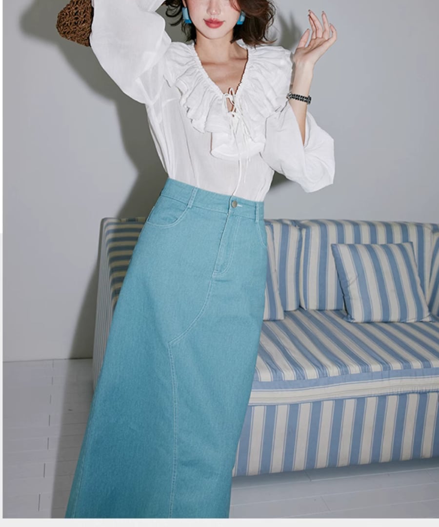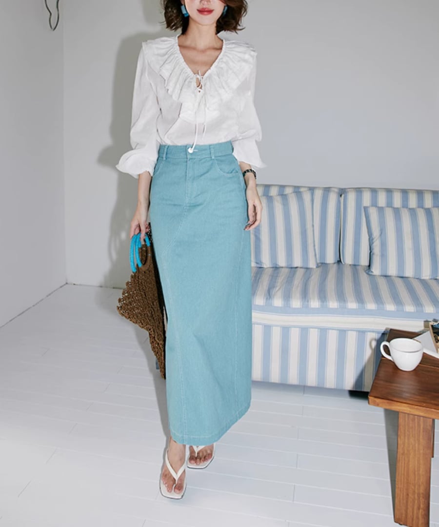 ダメージデニムスカート◆レイクブルー【s-60141】