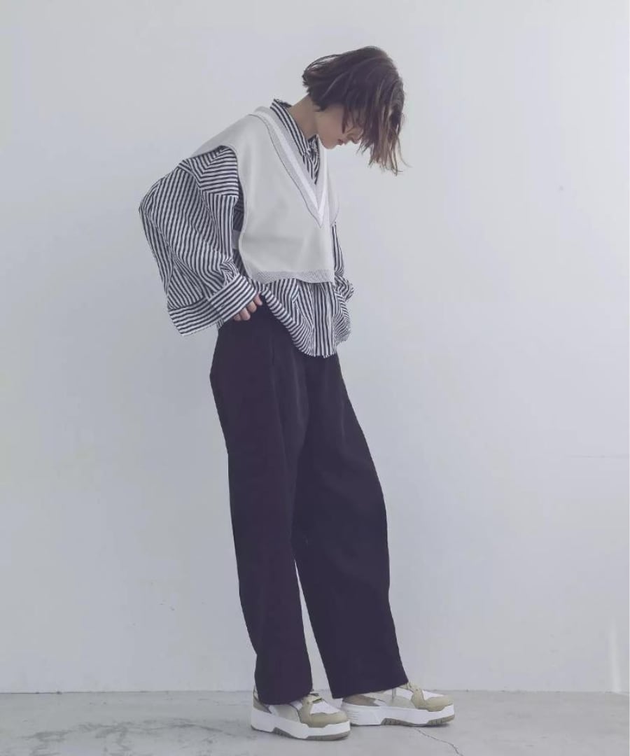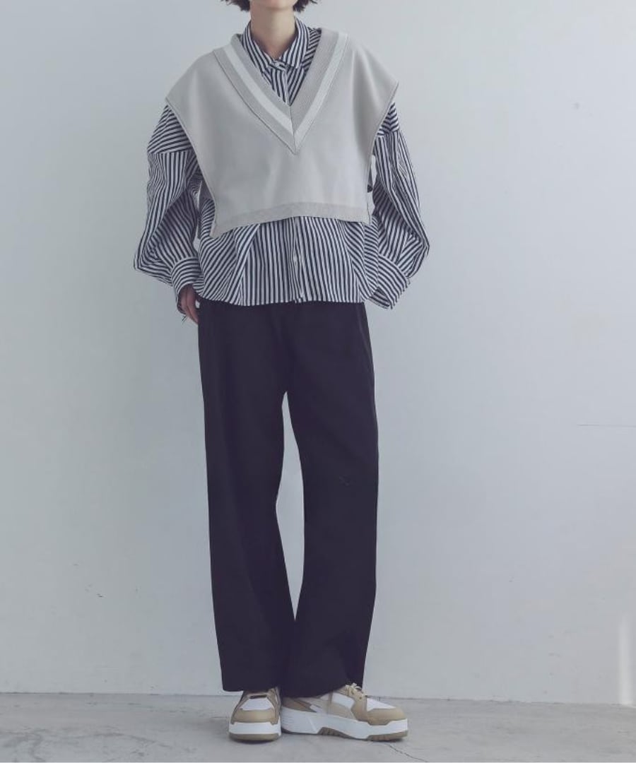 抜け感のある大きめのカフスボタンはボタンを外して袖口を開けて着るのもおすすめ。