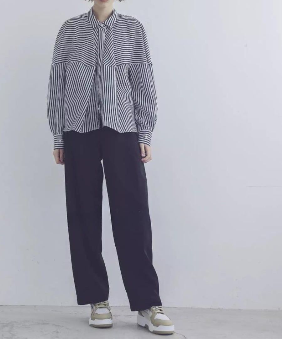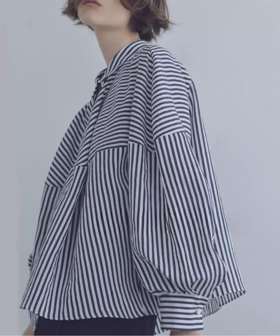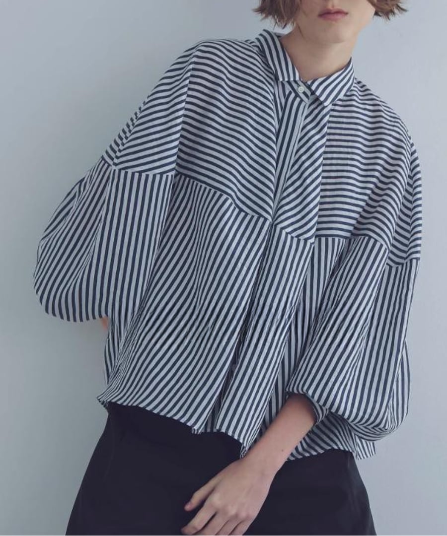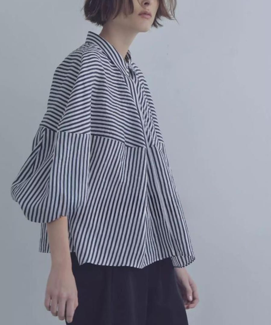 袖から身頃にかけての切り替えラインでバルーンのようなシルエットを表現したシャツ。