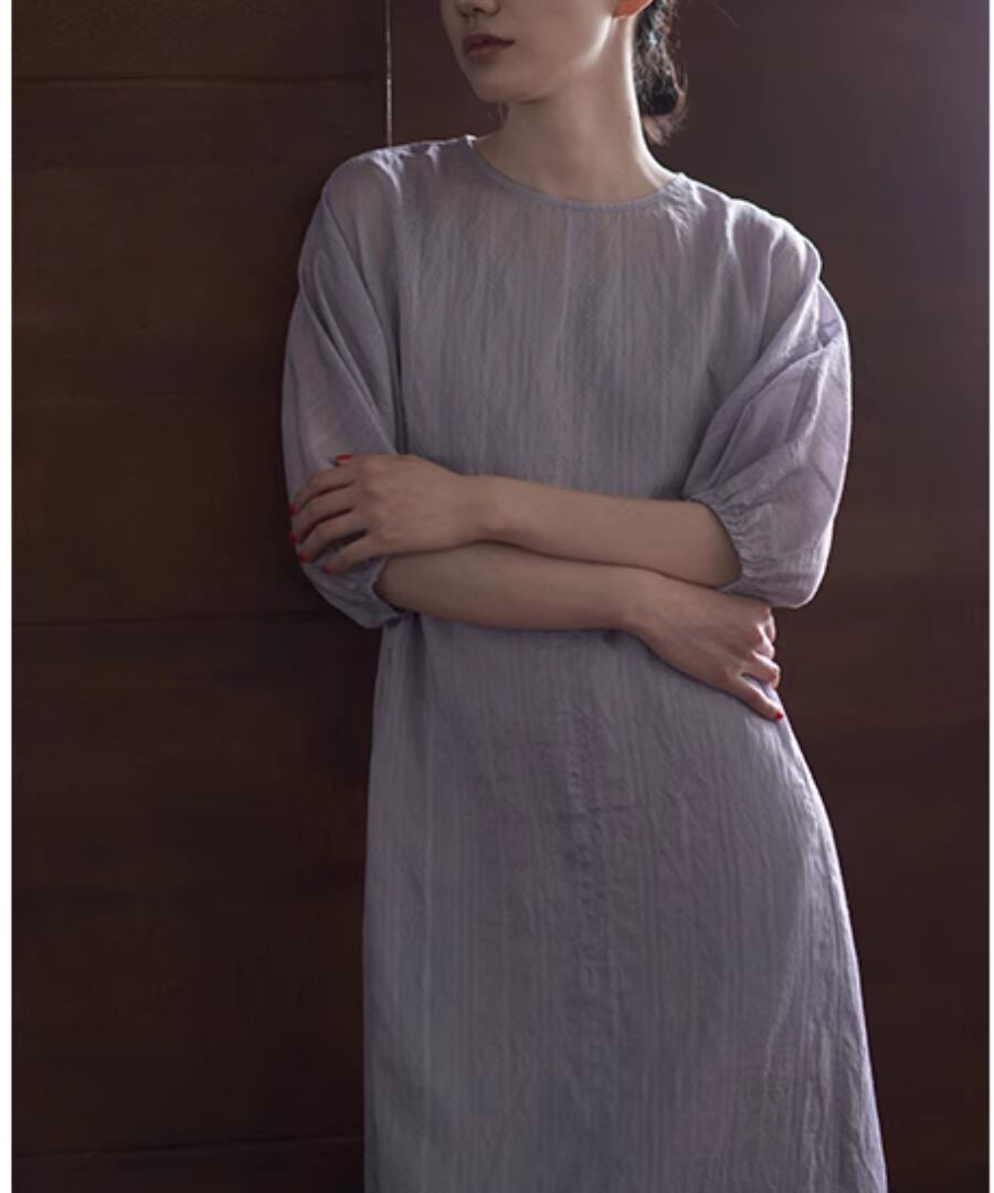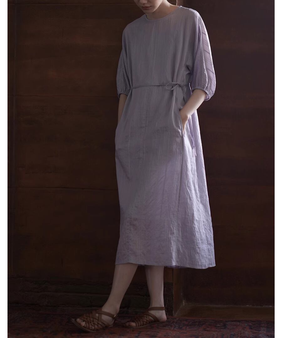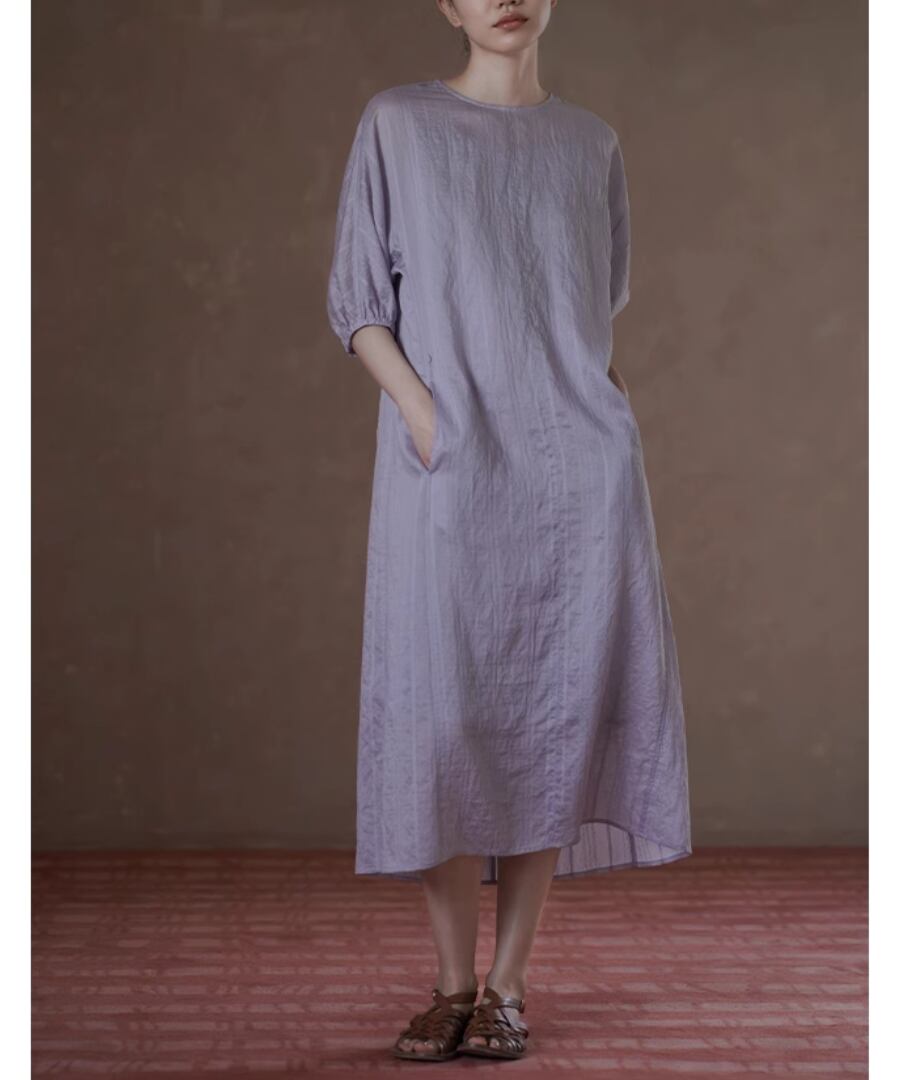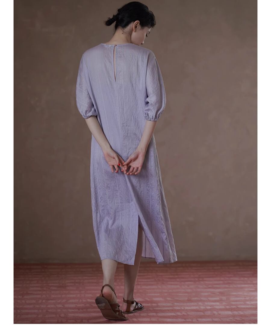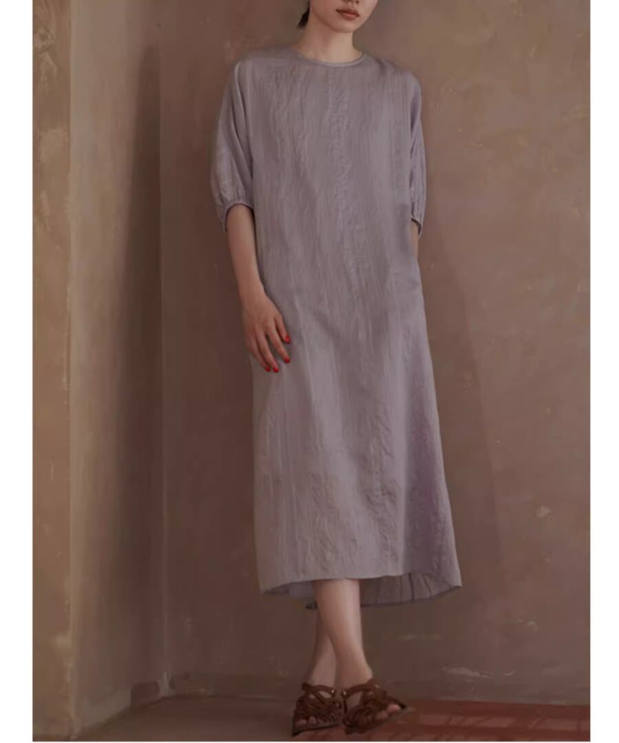 ゆったりラウンドネック◆刺繍ワンピース【w-30046】