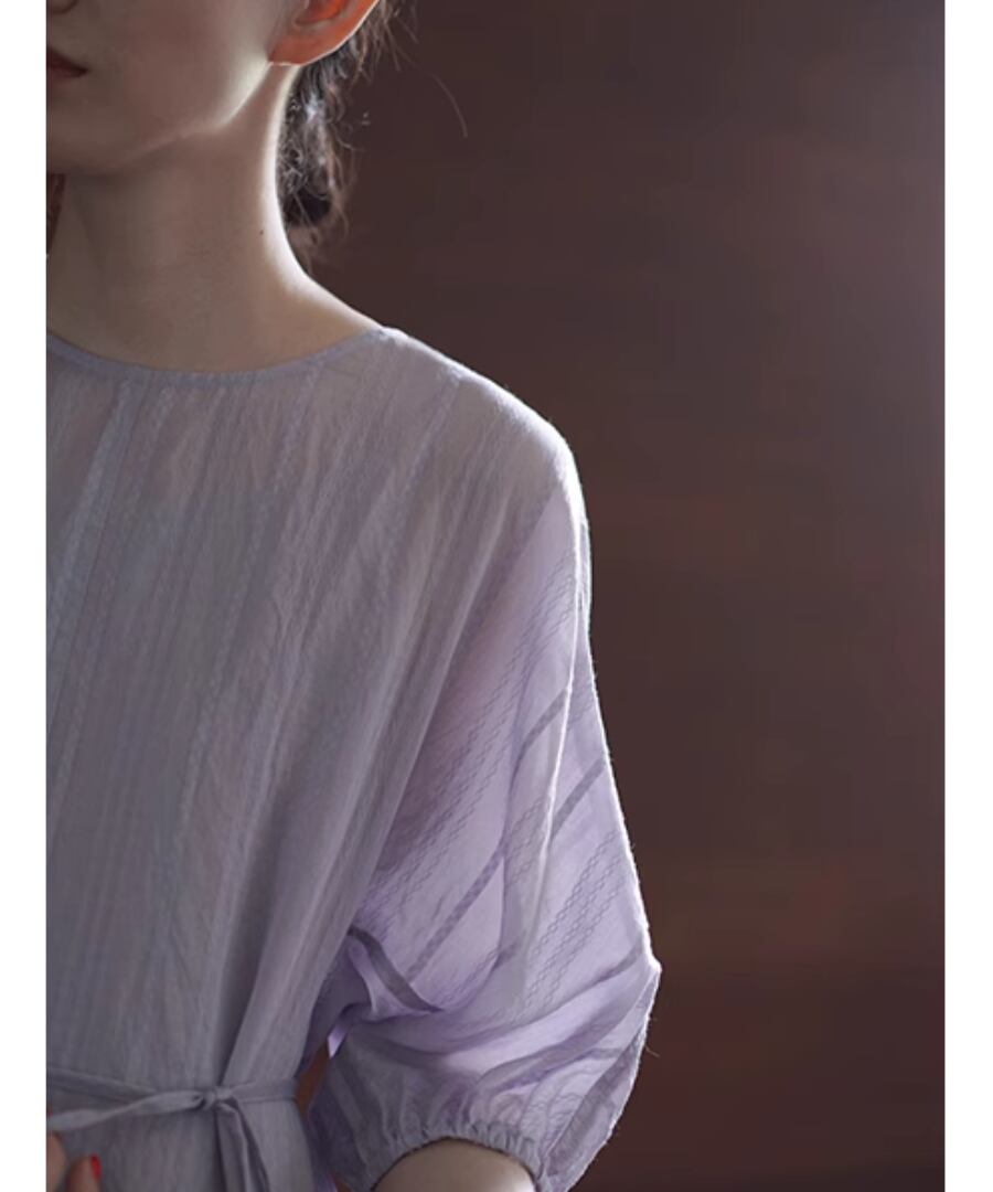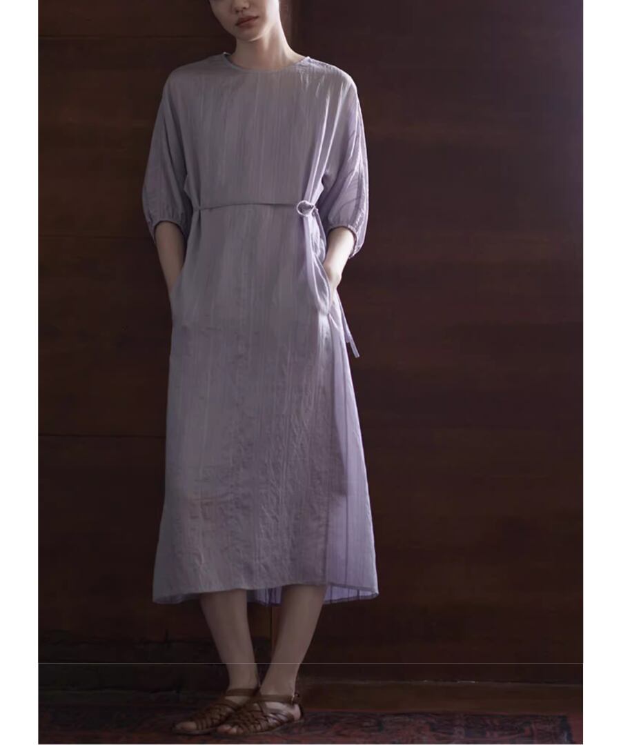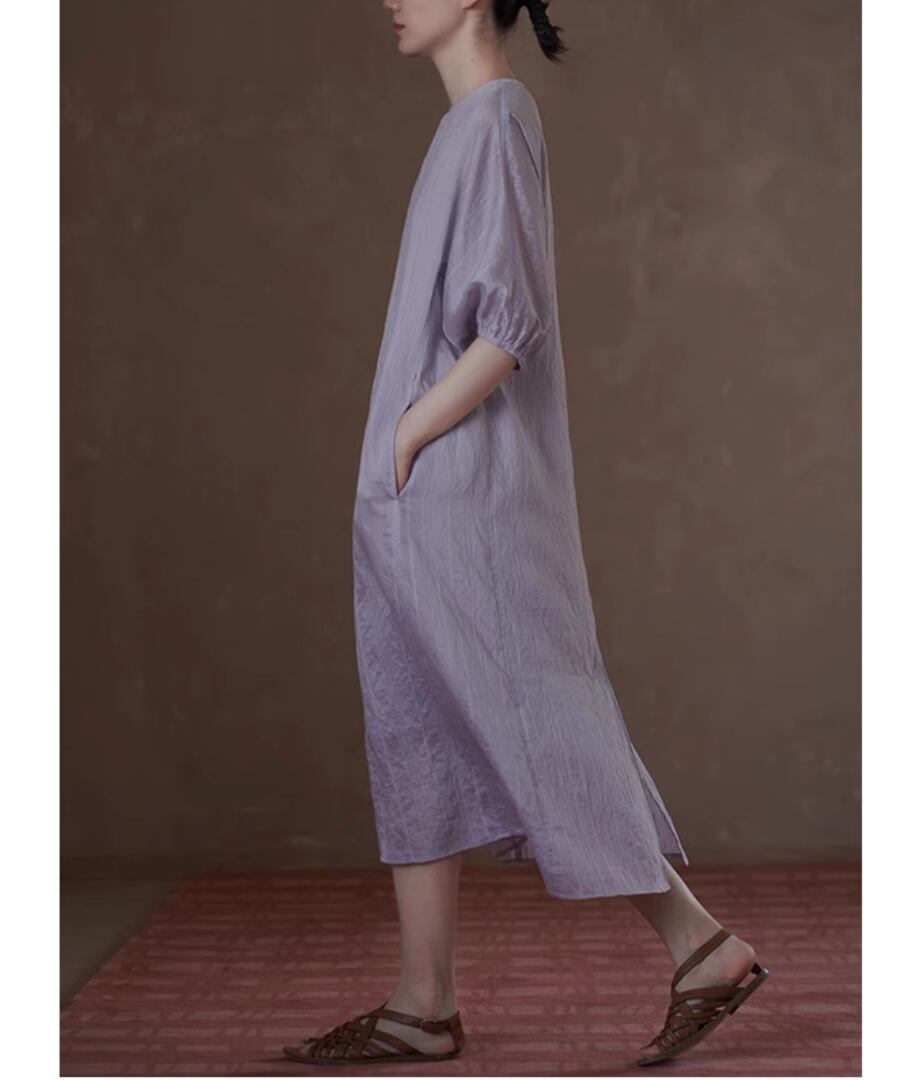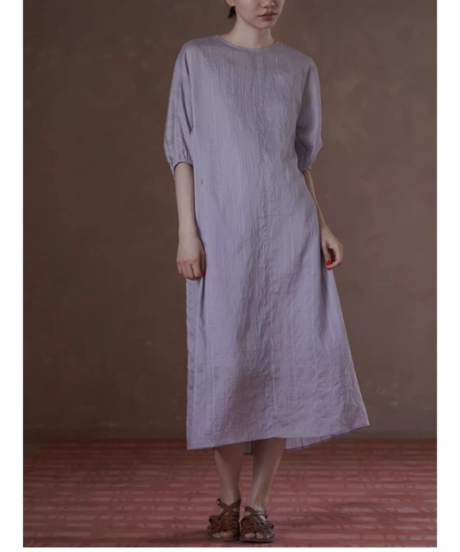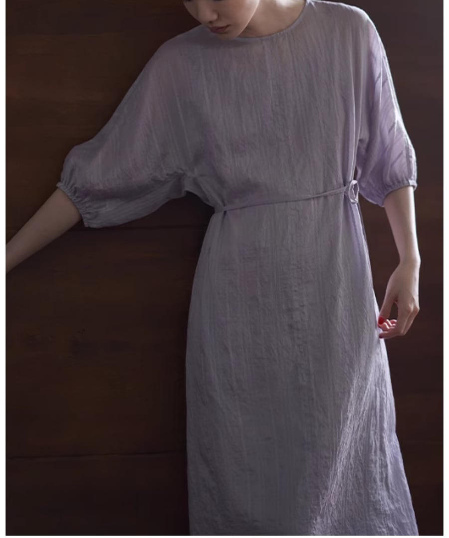 ゆったりラウンドネック◆刺繍ワンピース【w-30046】