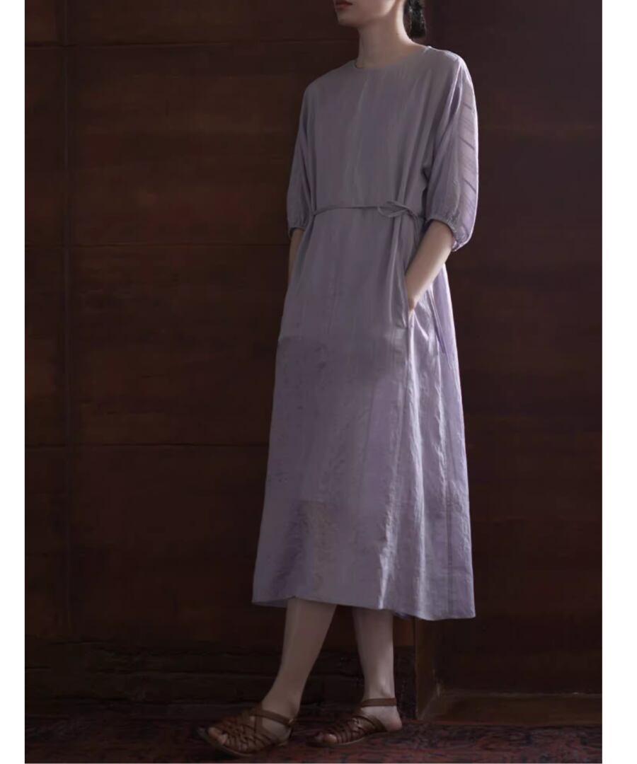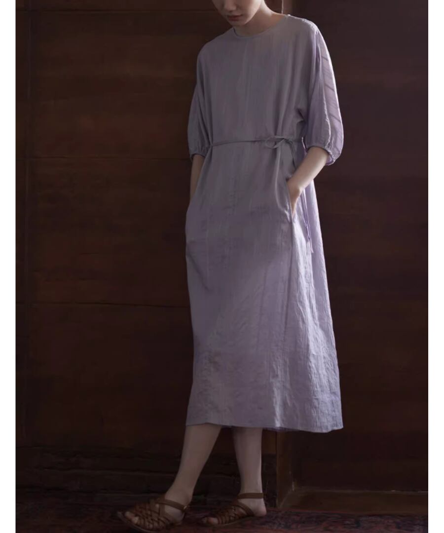 ナチュラルな雰囲気を演出してくれる、ゆったりとしたラウンドネックの刺繍ワンピース。