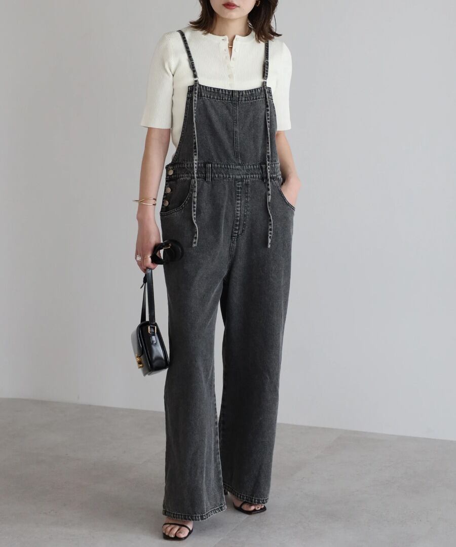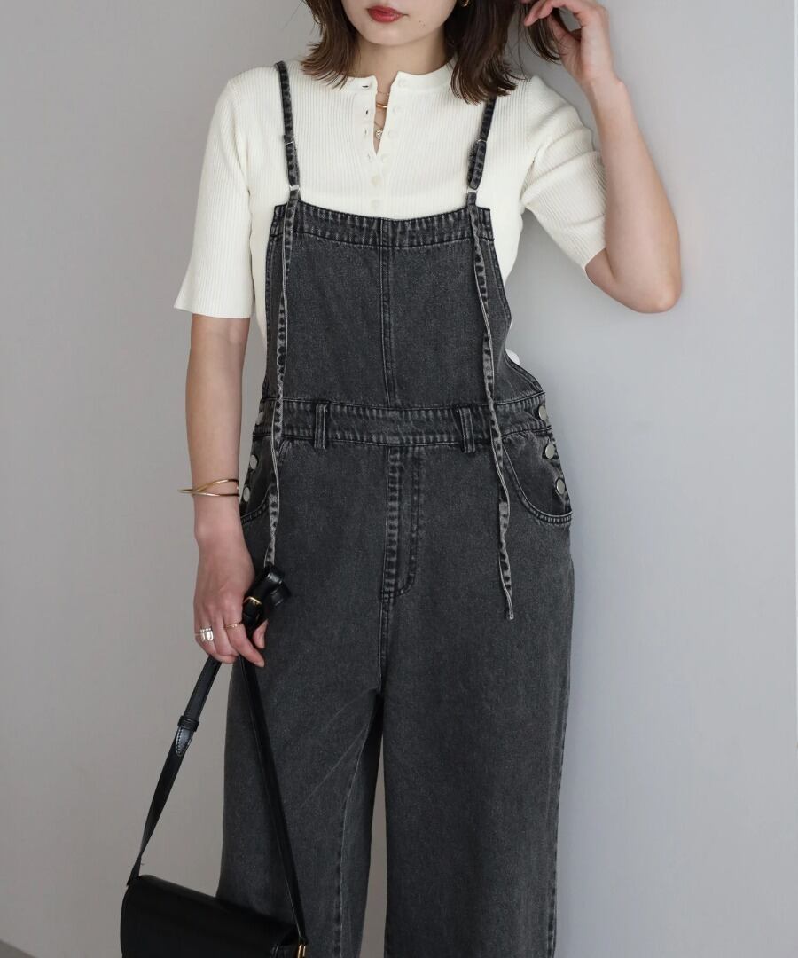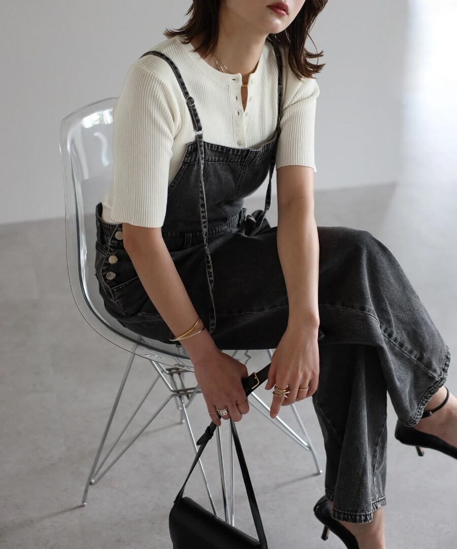 ネックラインのボタンがアクセントになり、程よい抜け感を演出します。