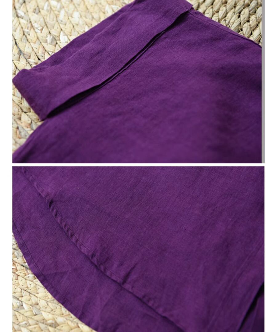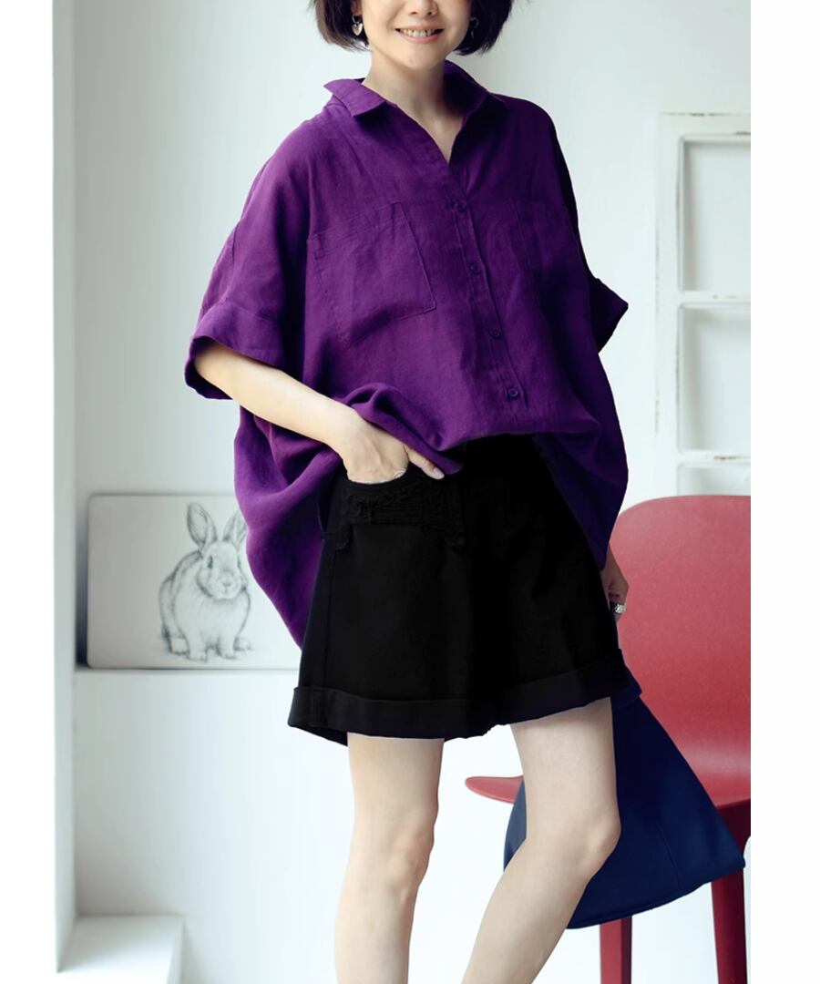 心地よい肌触りのリネン素材を使用したパープルシャツ。