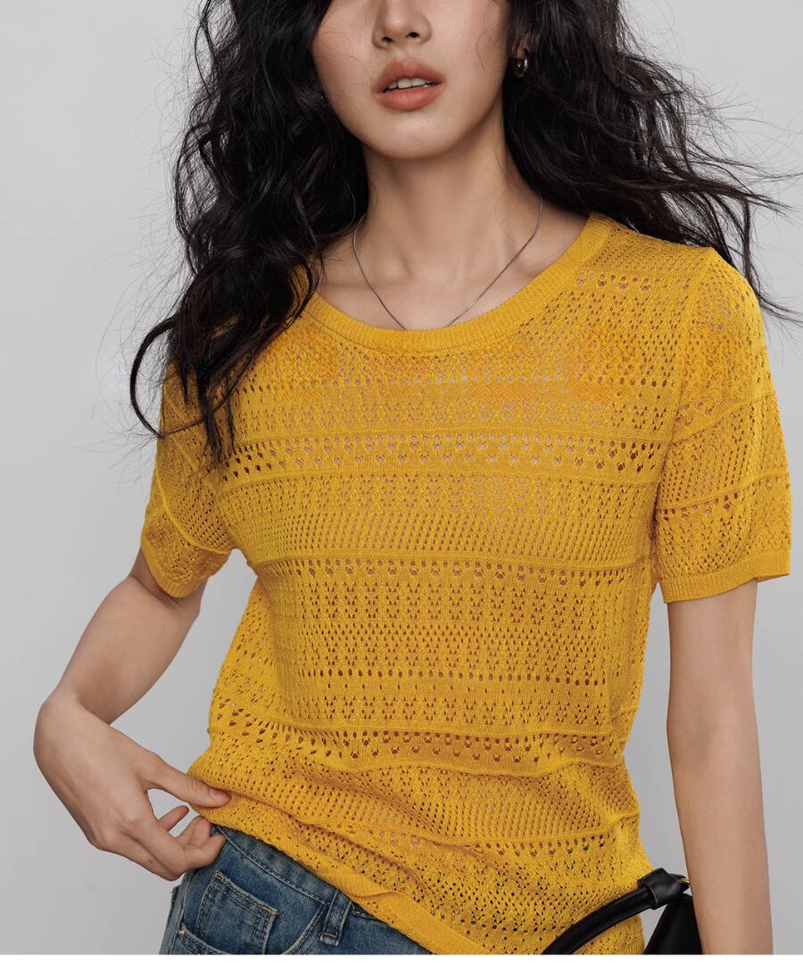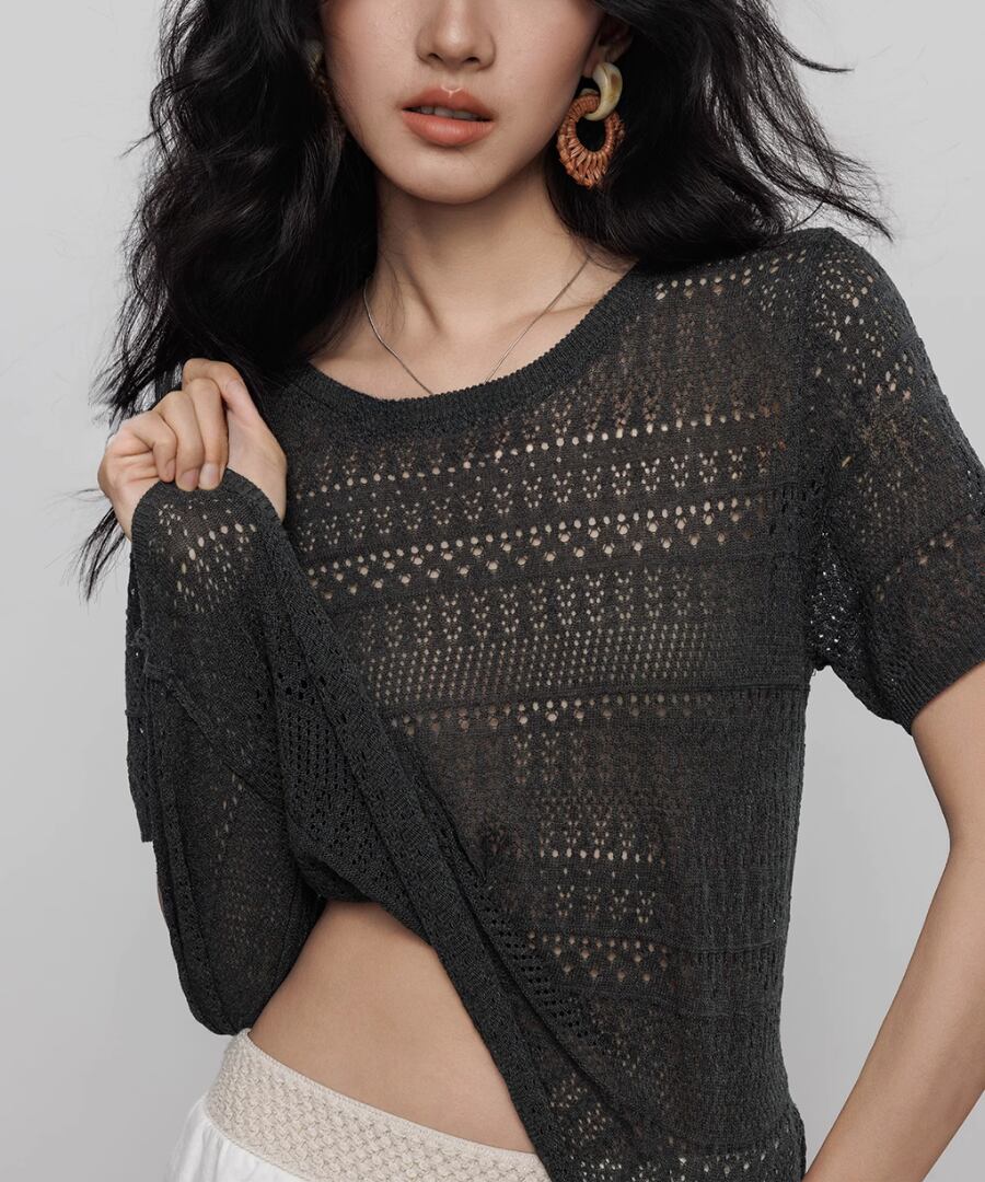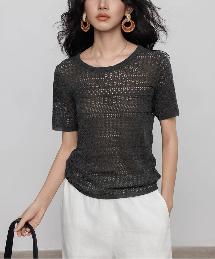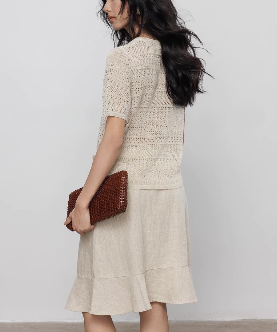 このサマーニットは、リネン混の素材を使用しており、さらりとした肌触りが特徴です。