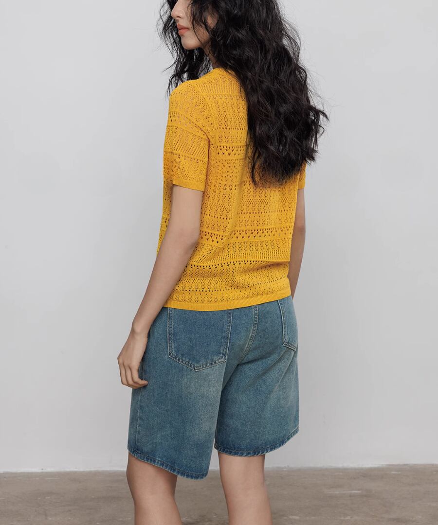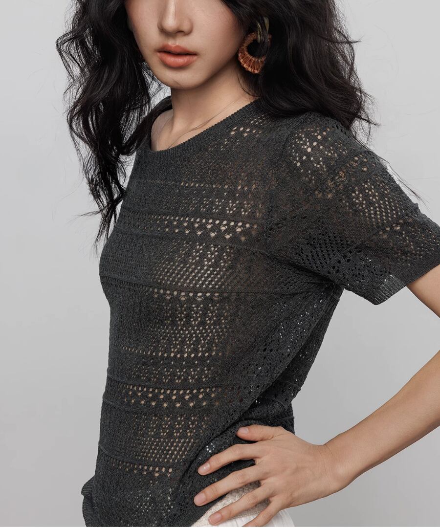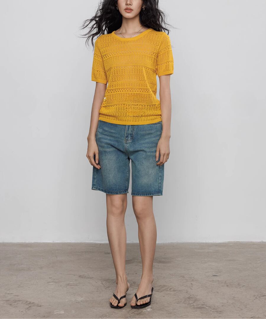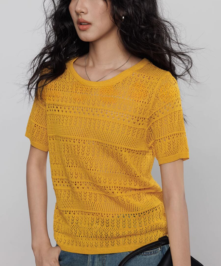 このサマーニットは、リネン混の素材を使用しており、さらりとした肌触りが特徴です。