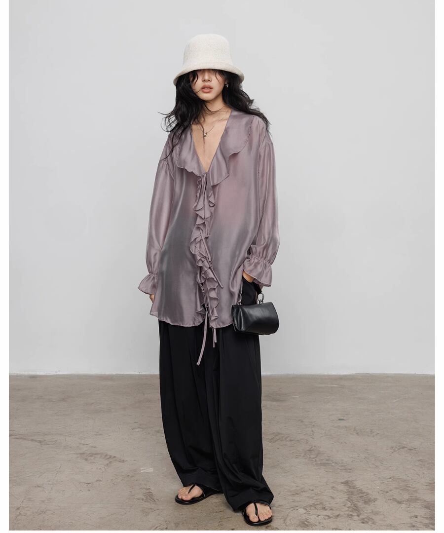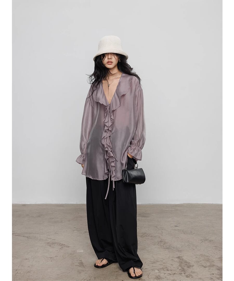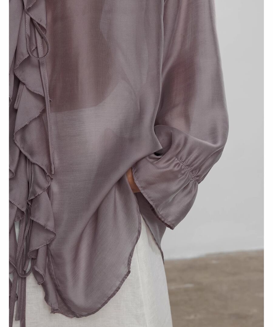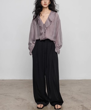 立体感のあるフリルが、シンプルなコーディネートに華やかさをプラス。