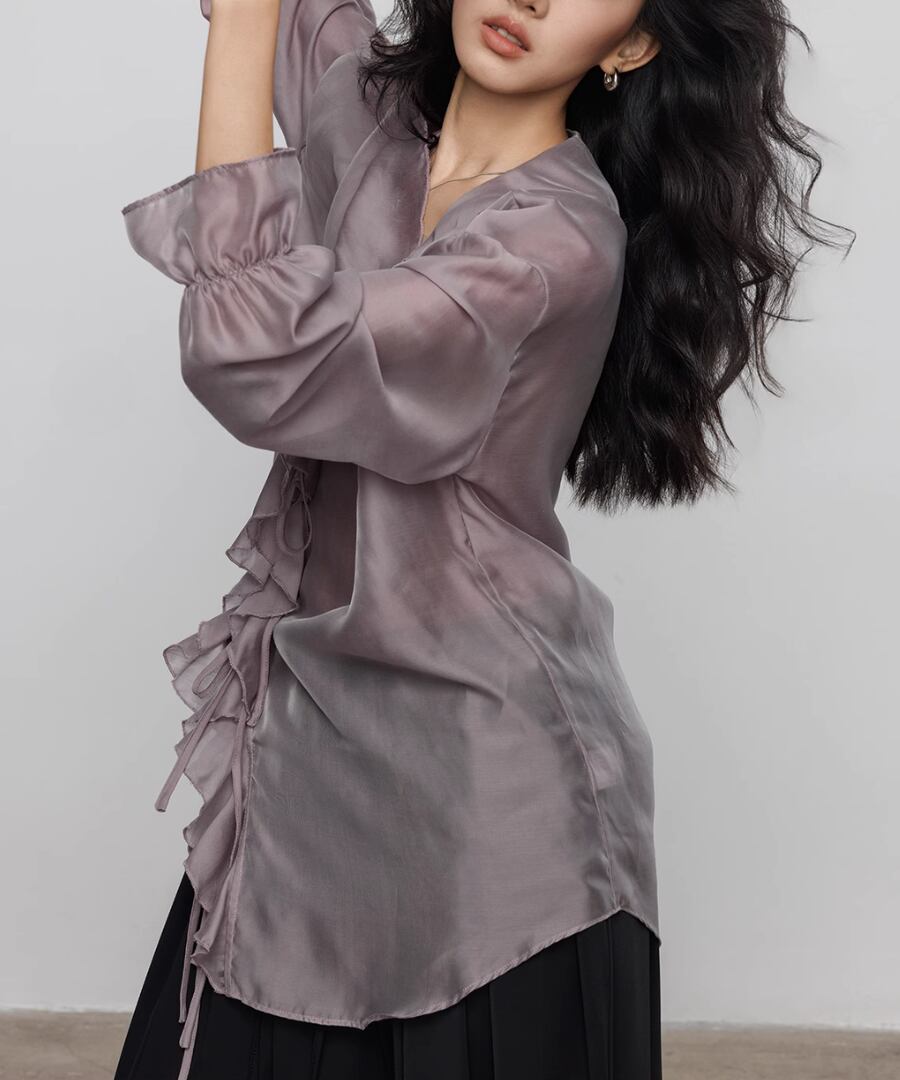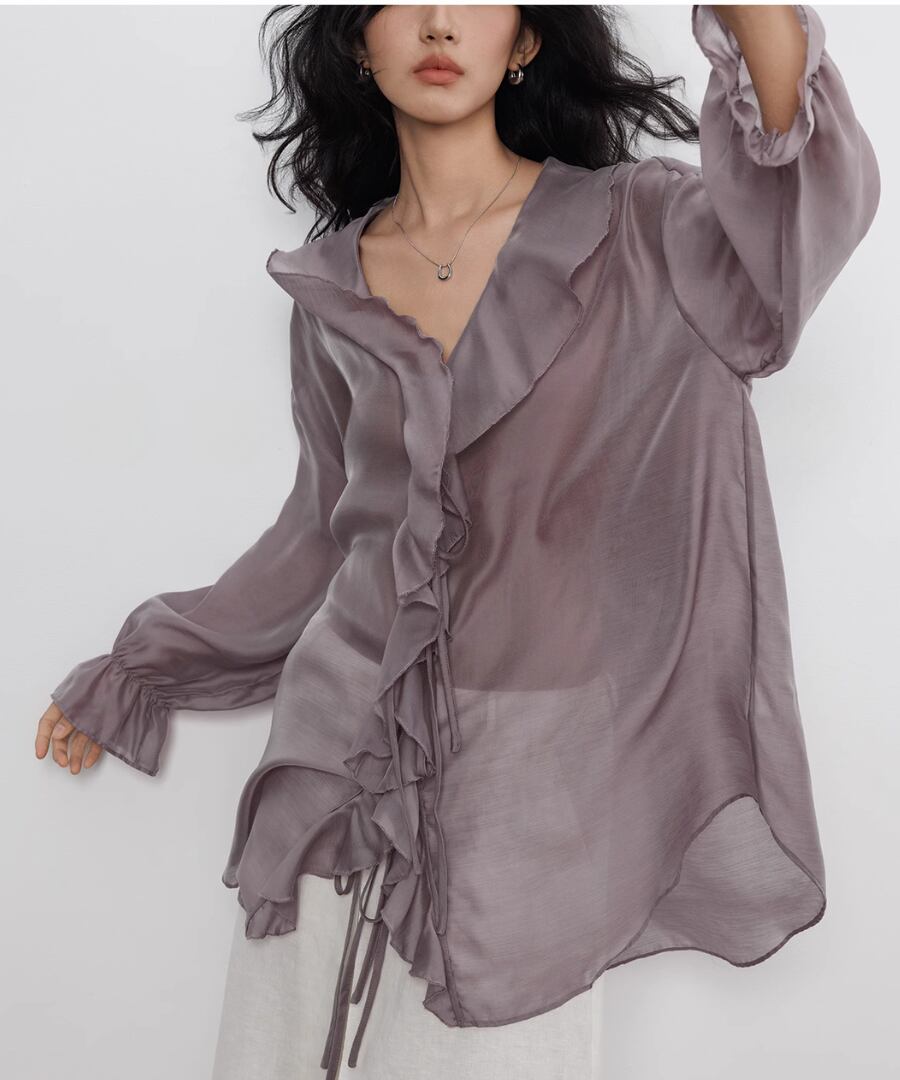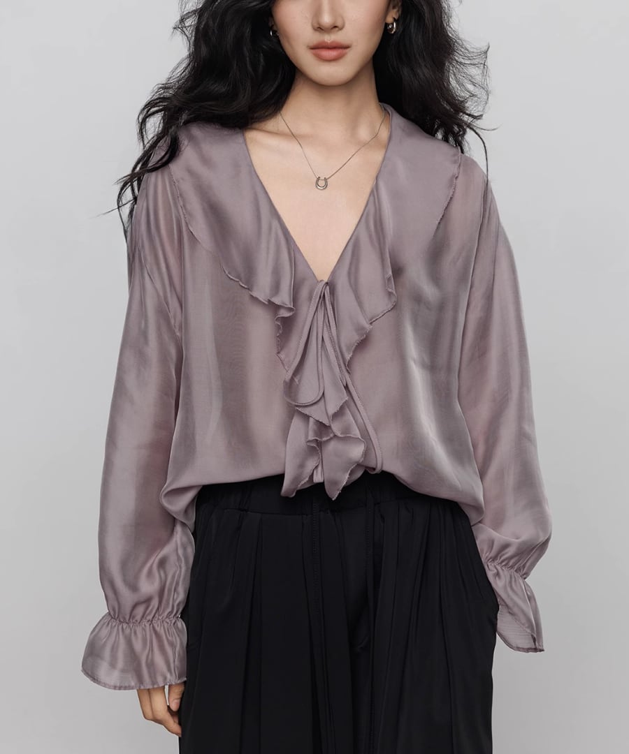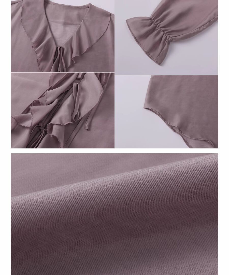 立体感のあるフリルが、シンプルなコーディネートに華やかさをプラス。