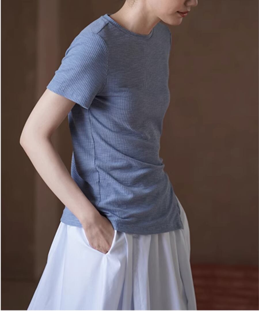スタイリッシュなラウンドネックフィットで、しわになりにくい素材を使用しており、日常使いからお出かけシーンまで幅広くお使いいただけます。