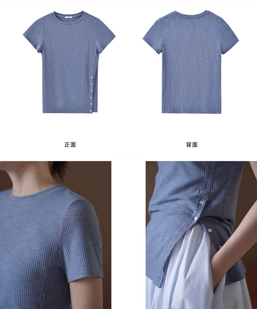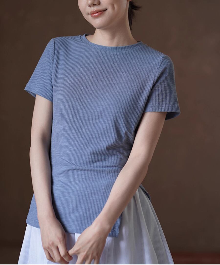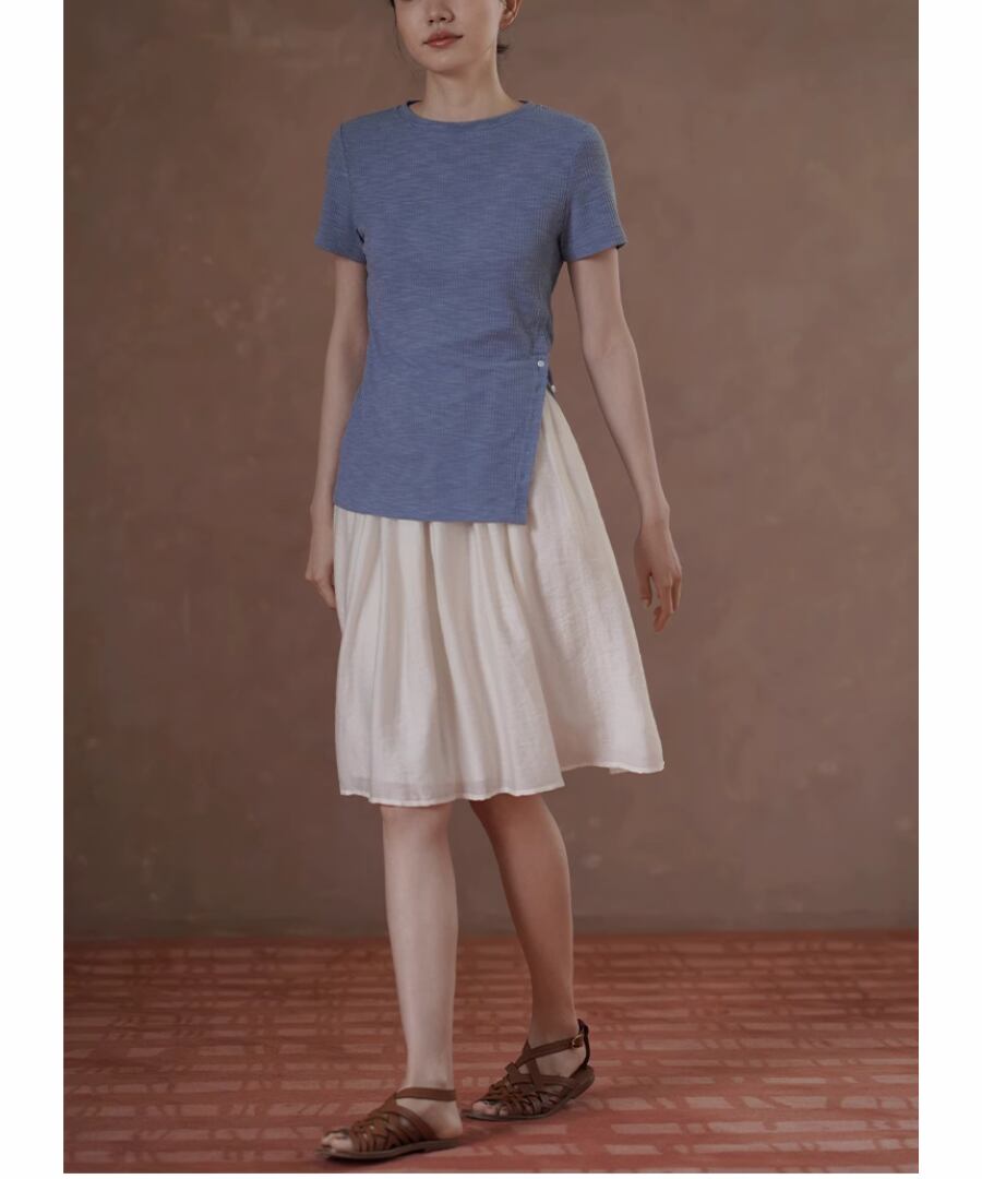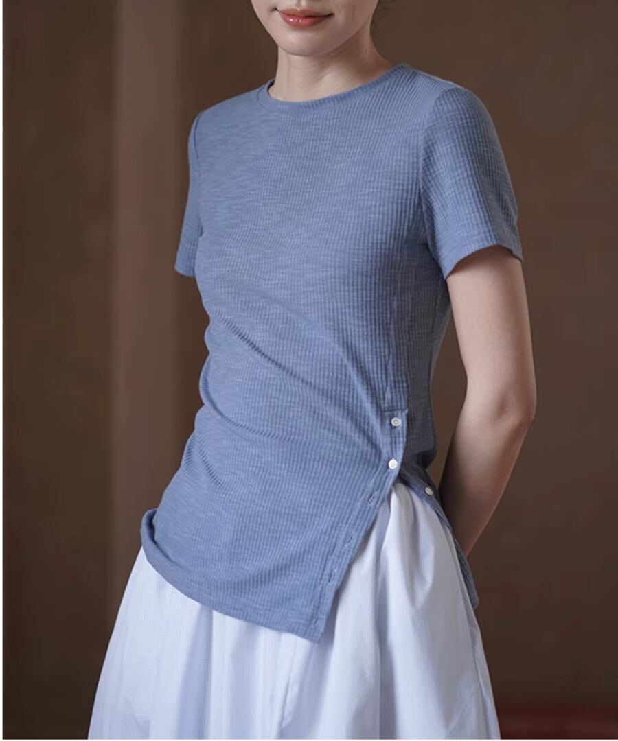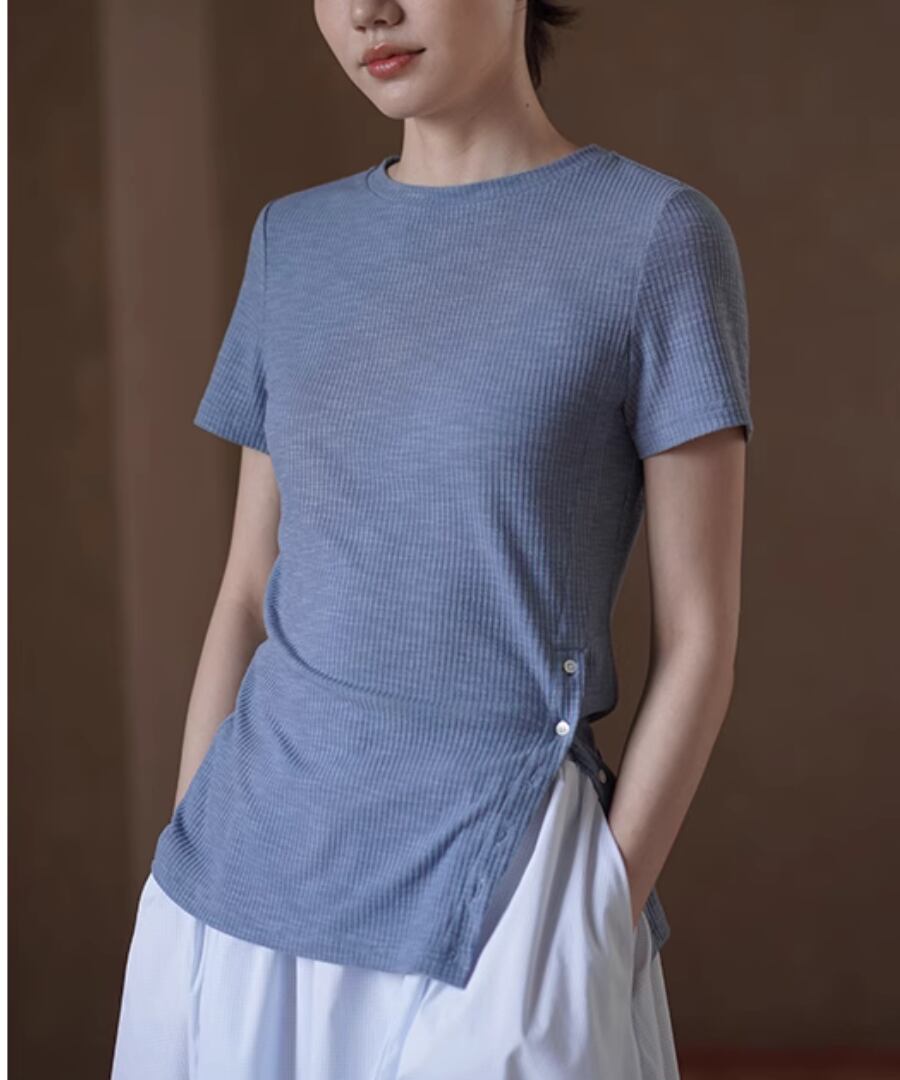 フェアリーサイドボタンスリットデザインが魅力の半袖Tシャツ。