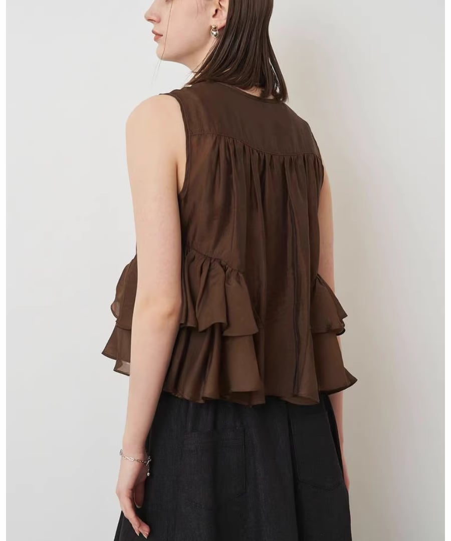 シアーフリルノースリーブブラウス【t-10379】