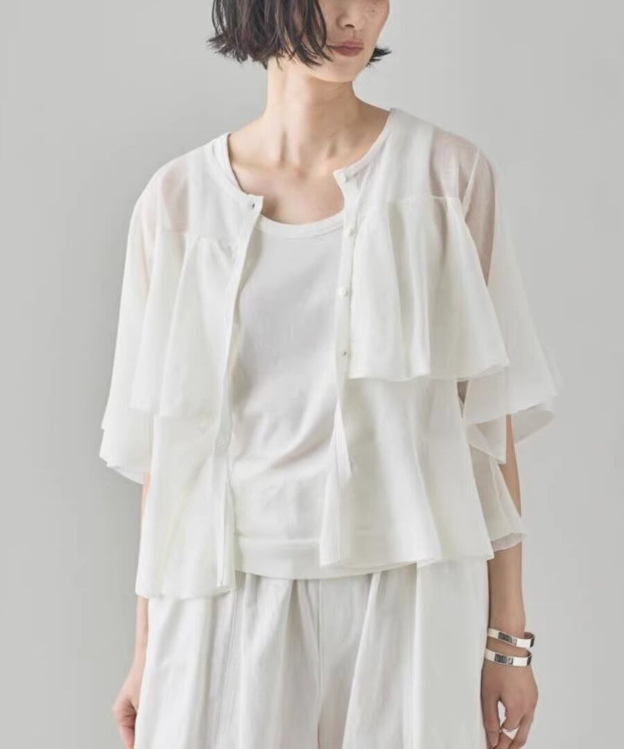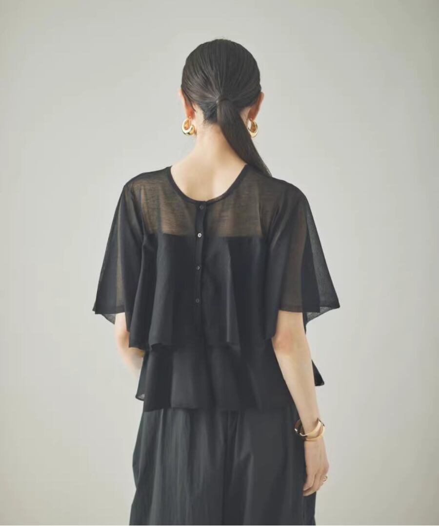 涼しげなシアーニットが魅力。前後2WAY仕様プルオーバー。