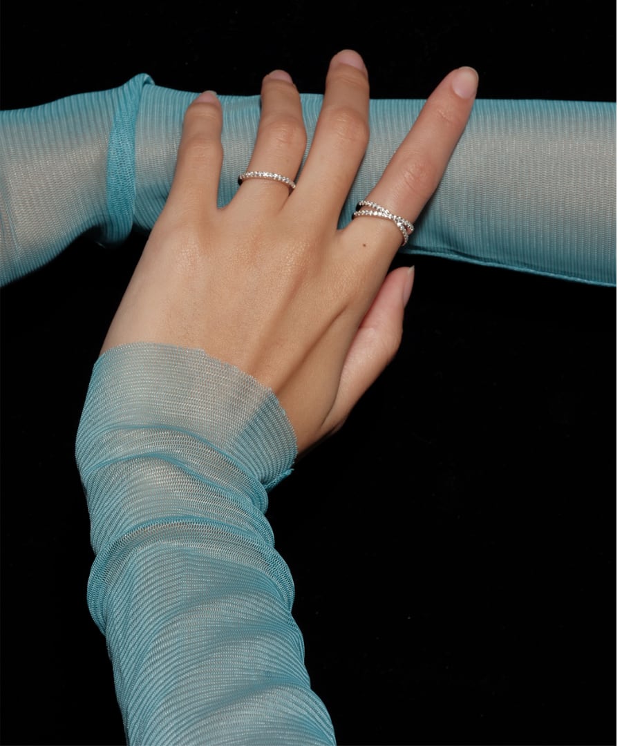 細やかな輝きが指元を彩り、特別な日や日常のコーディネートに華やかさをプラスします。