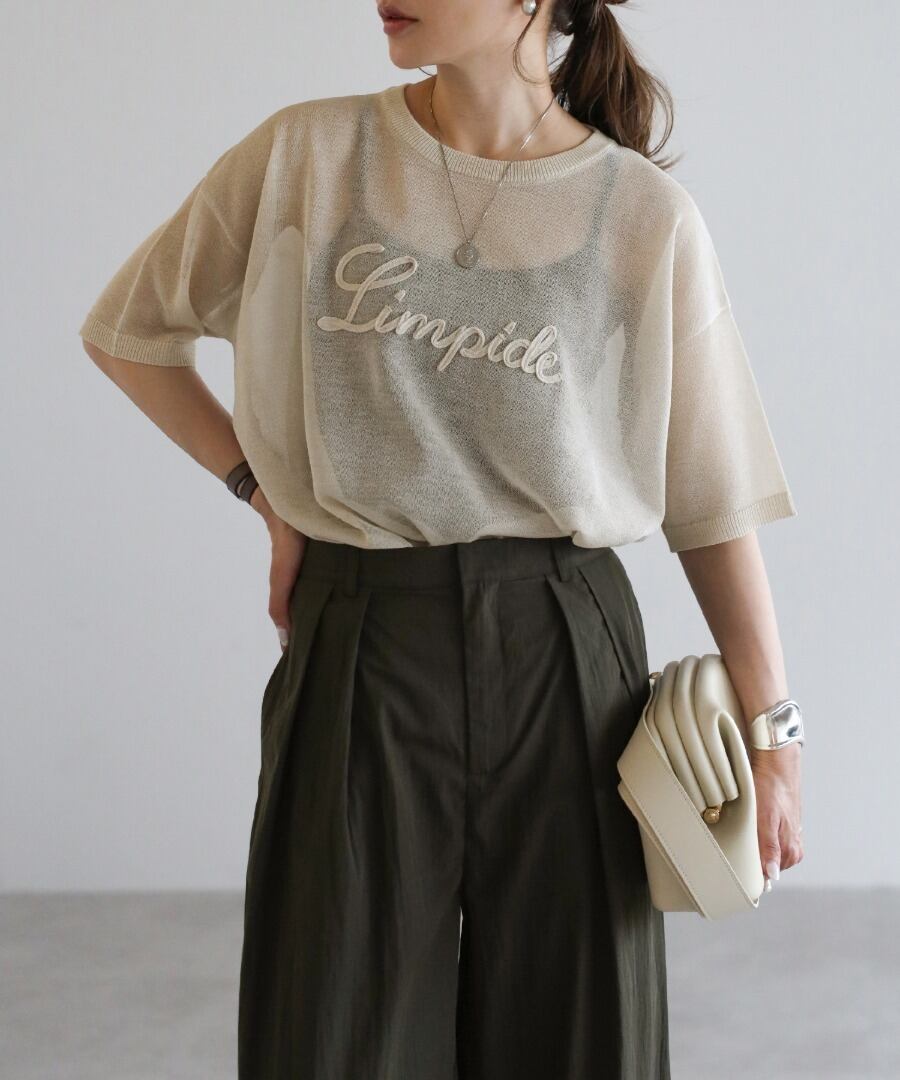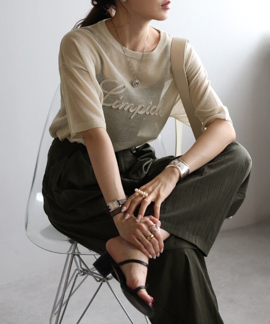 甘すぎない透明感。刺繍が映えるミニマルシアーニット