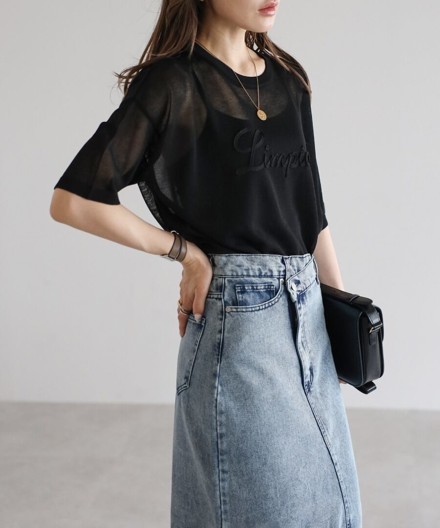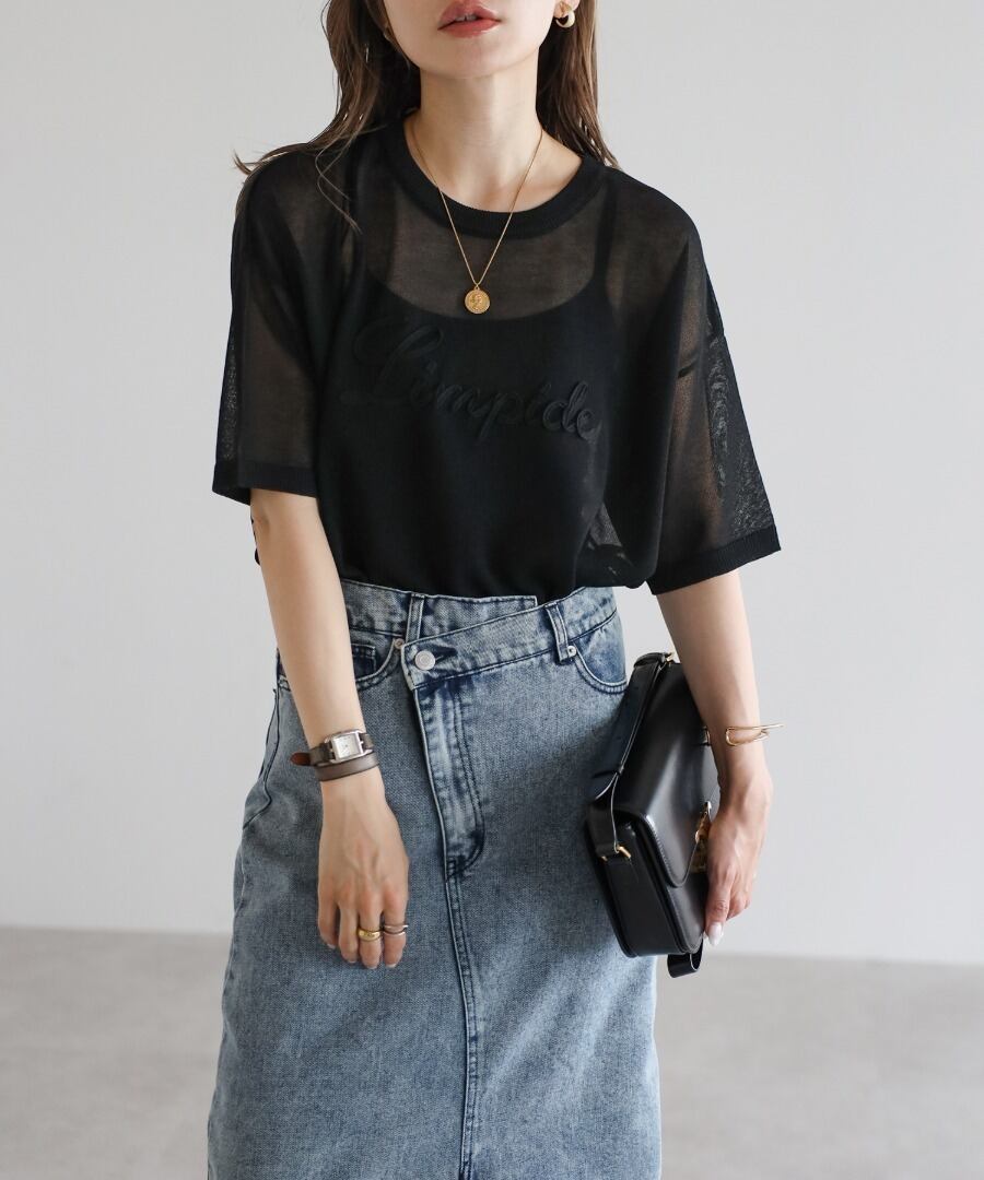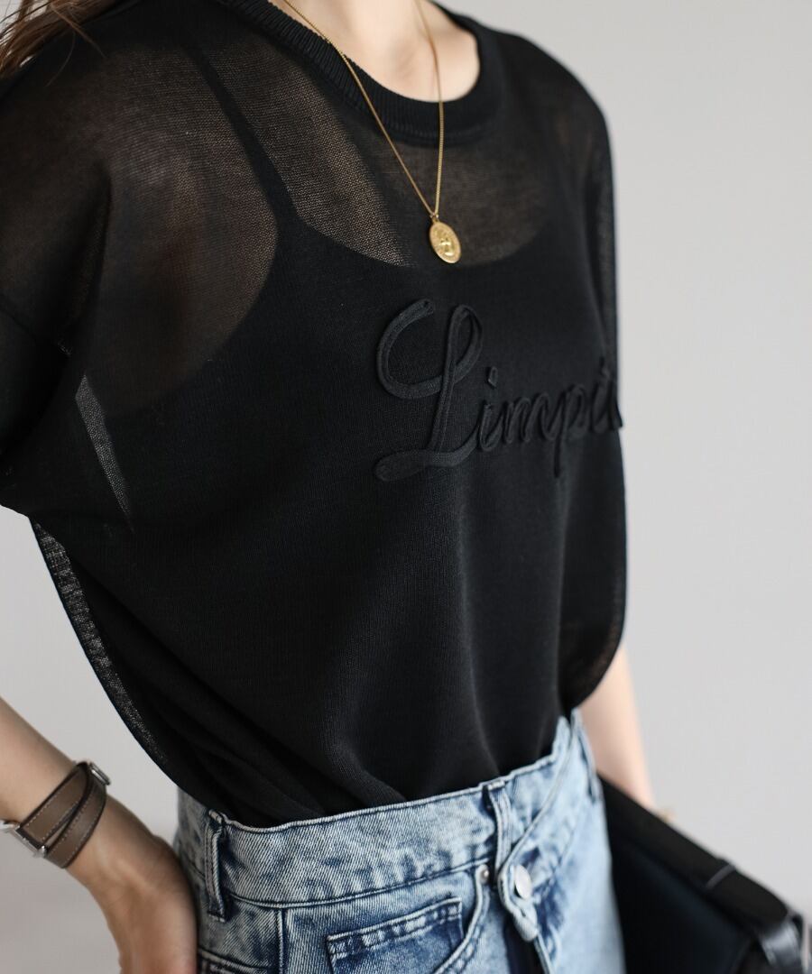 コード刺繍半袖シアーニット【t-10390】.
