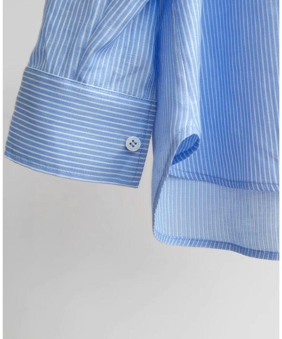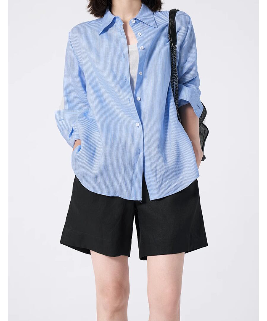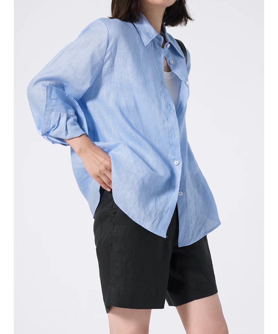 リネン100%◆ストライプシャツ/2color【t-10072】