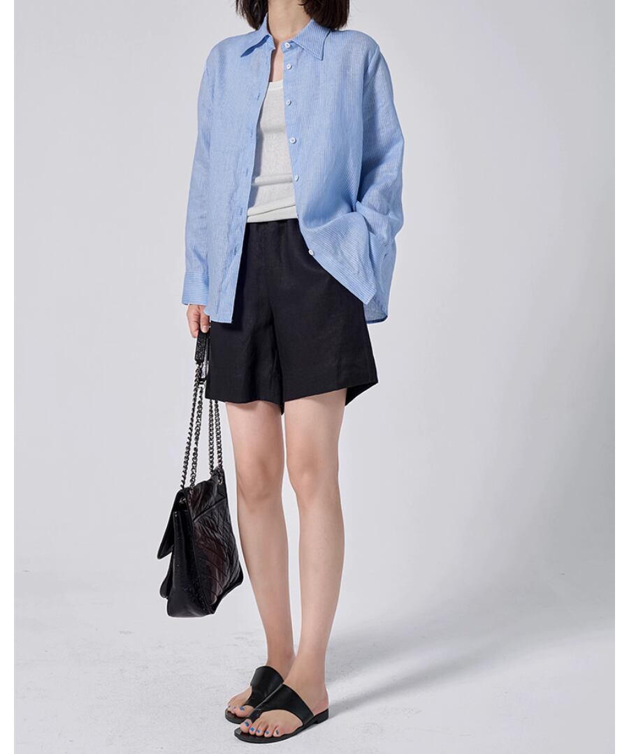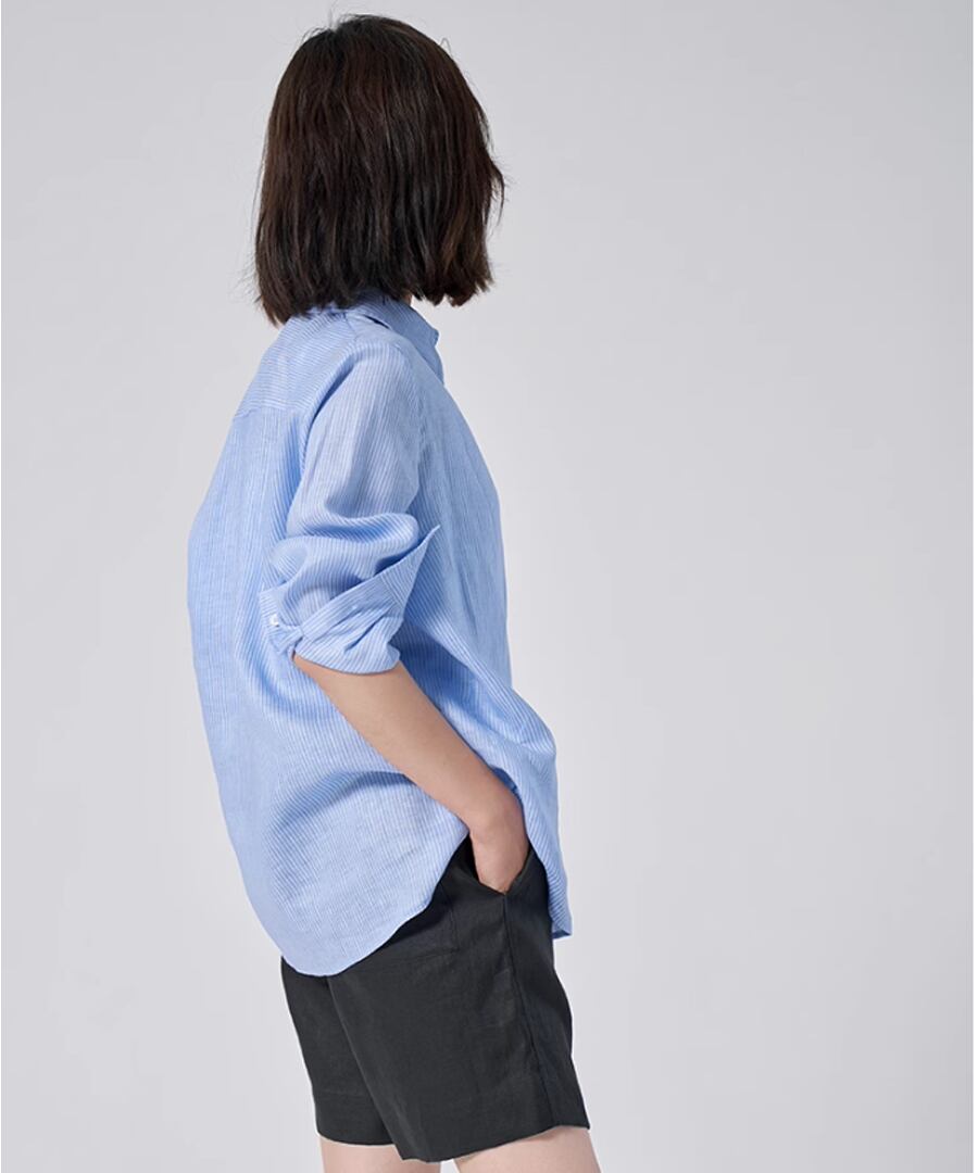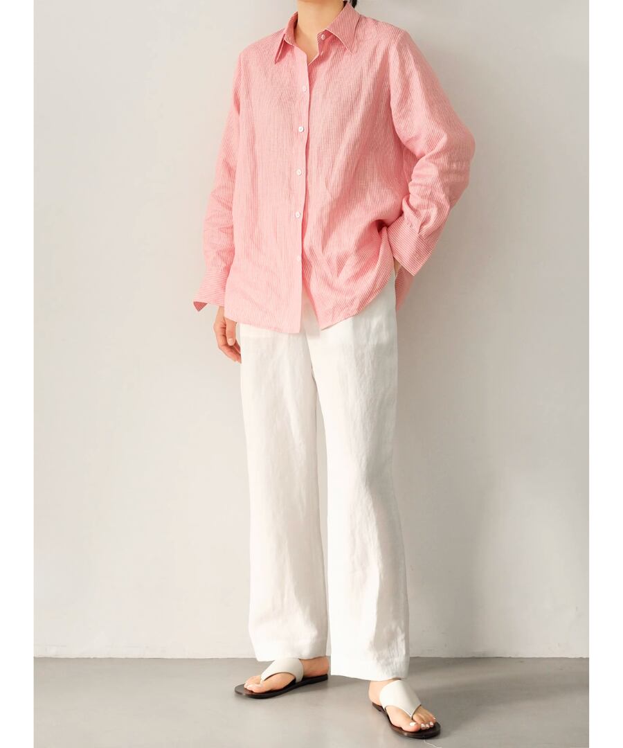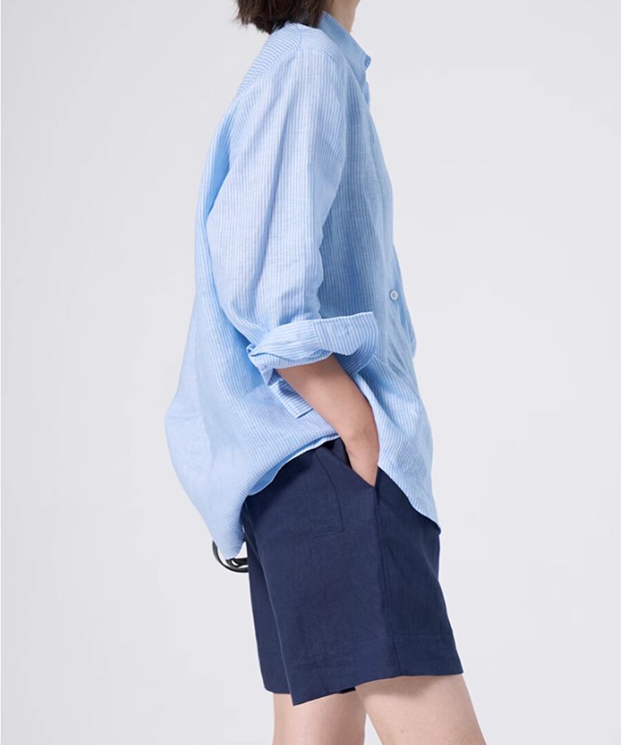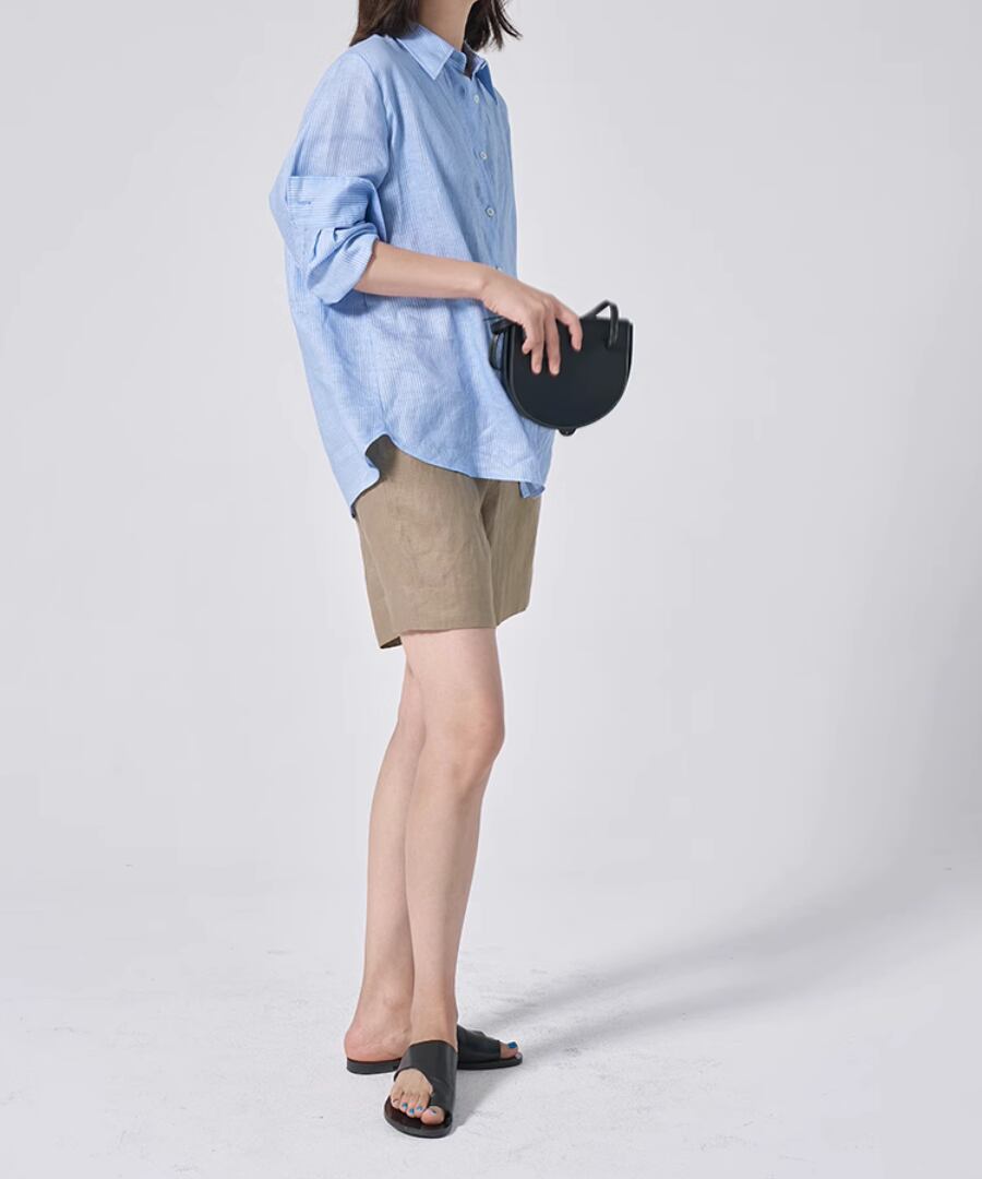 リネン100%の涼やかな生地感が、清涼感を演出し、暑い夏にぴったりのアイテム。