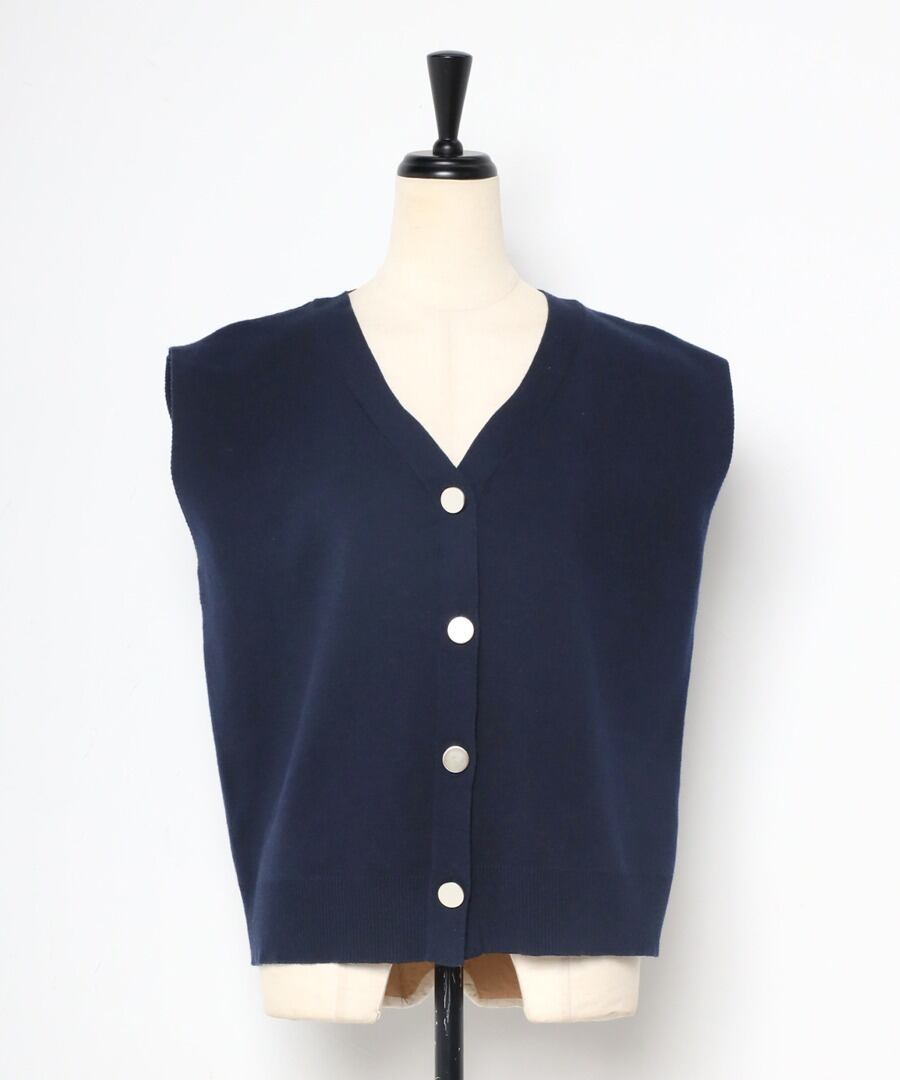 ゴールド釦ボクシーニットベスト【t-10421】.