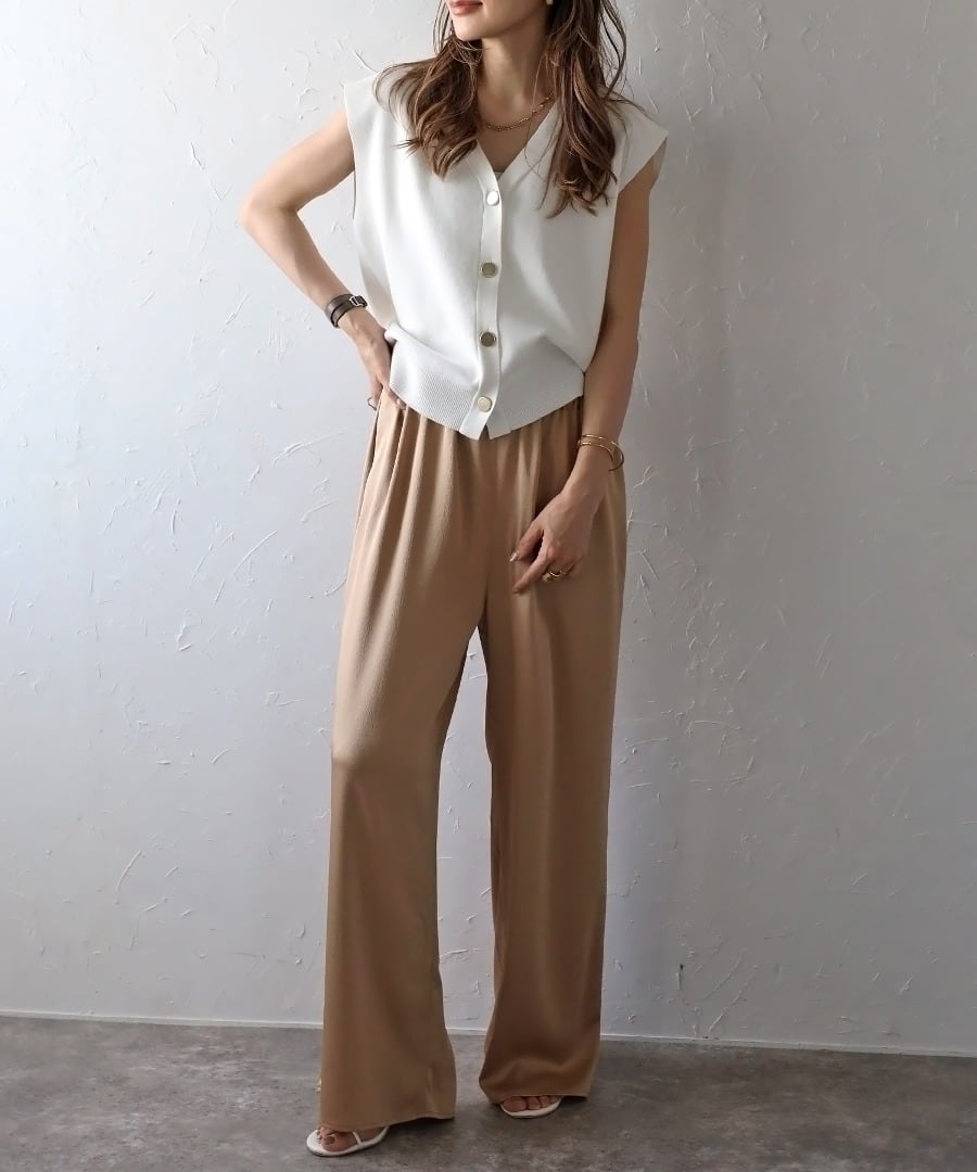 絶妙なサイジングのボクシーシルエットで体型カバーが叶うニットベスト。