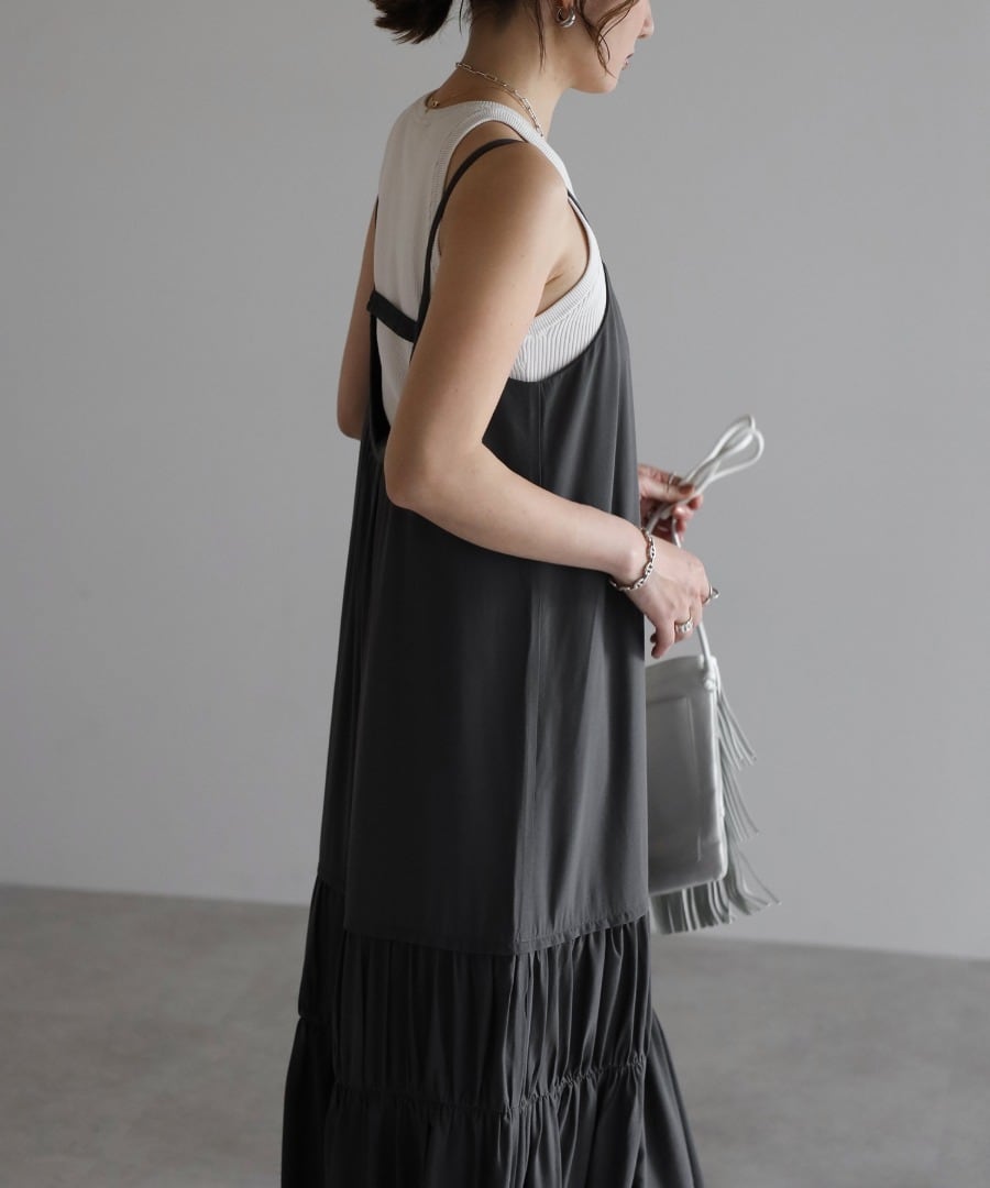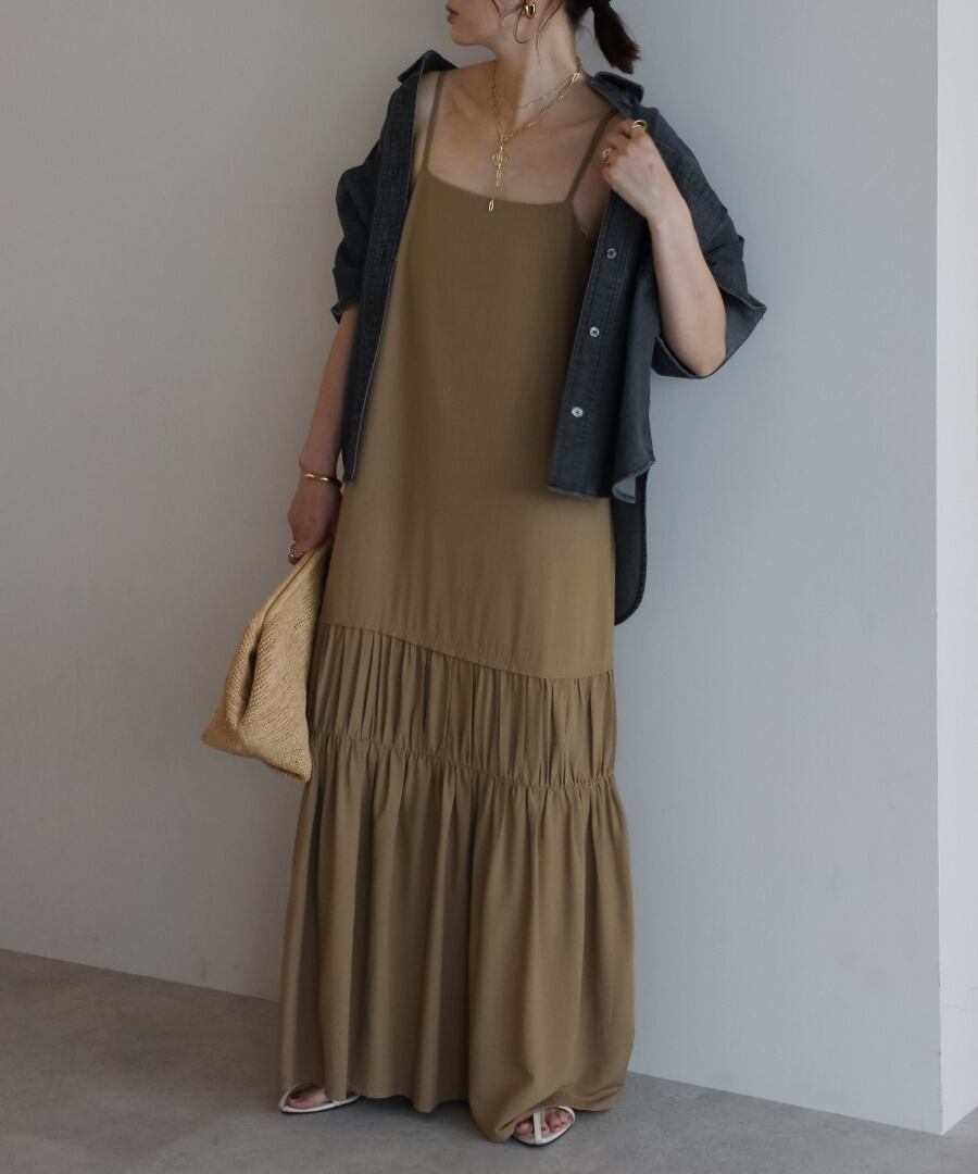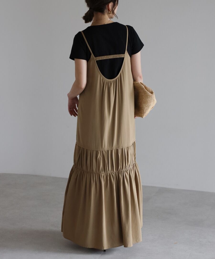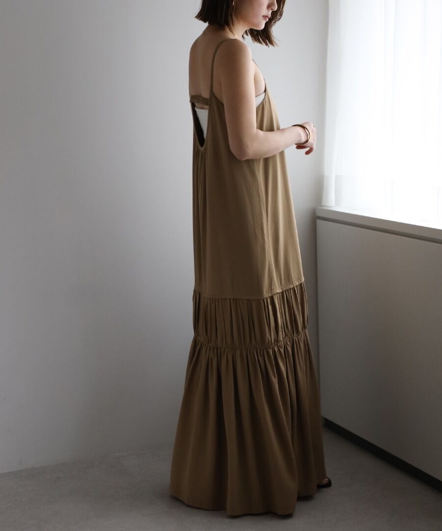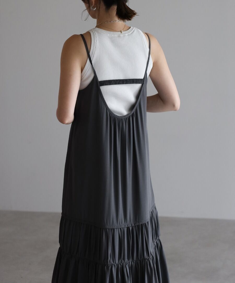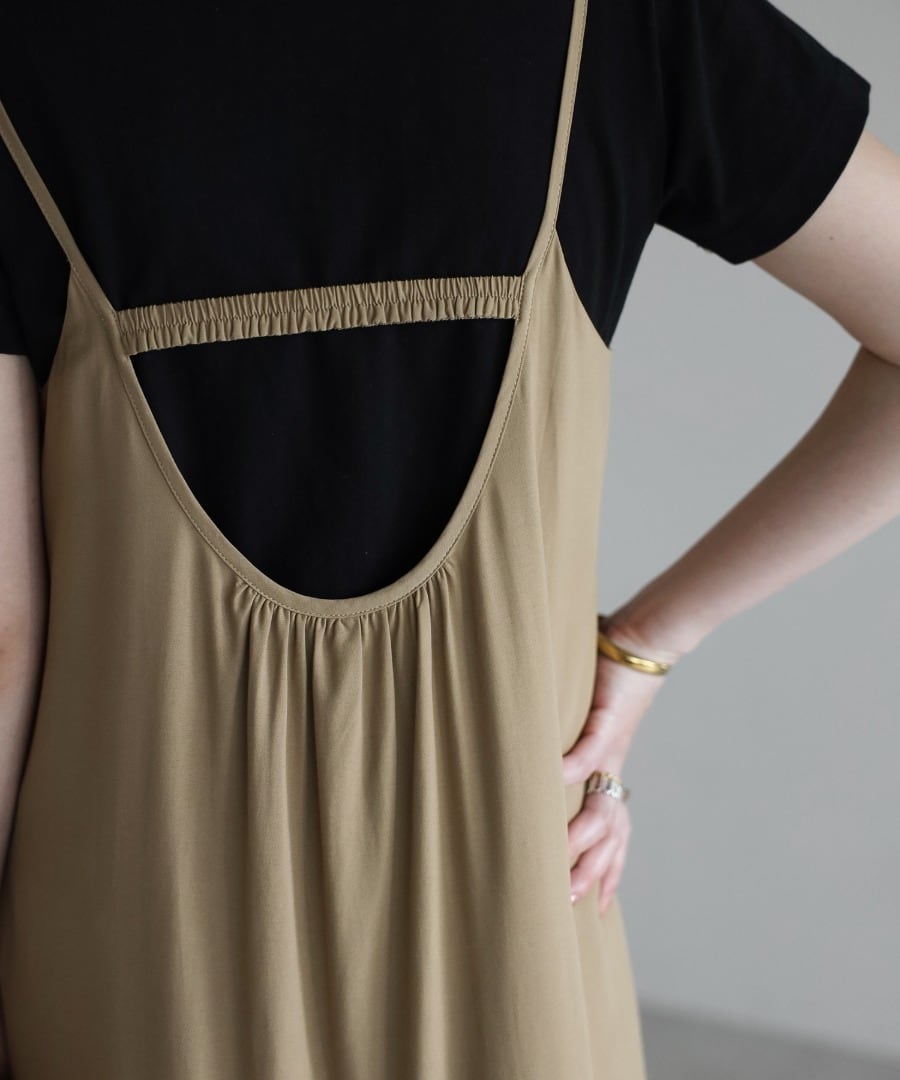 ヘルシーな肌見せが叶う、ギャザー入りのバックオープンキャミワンピ。