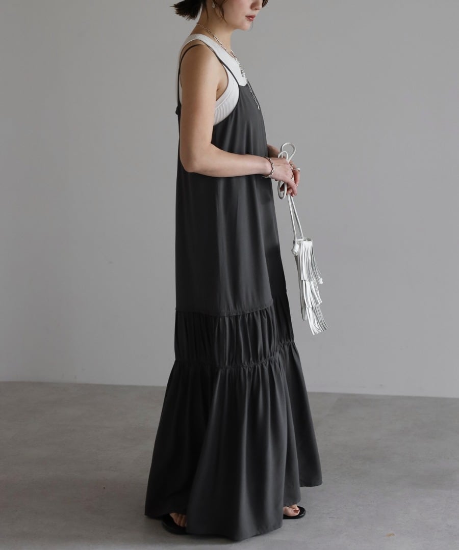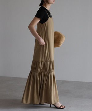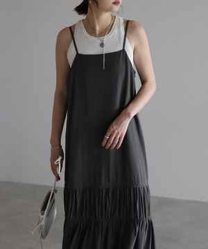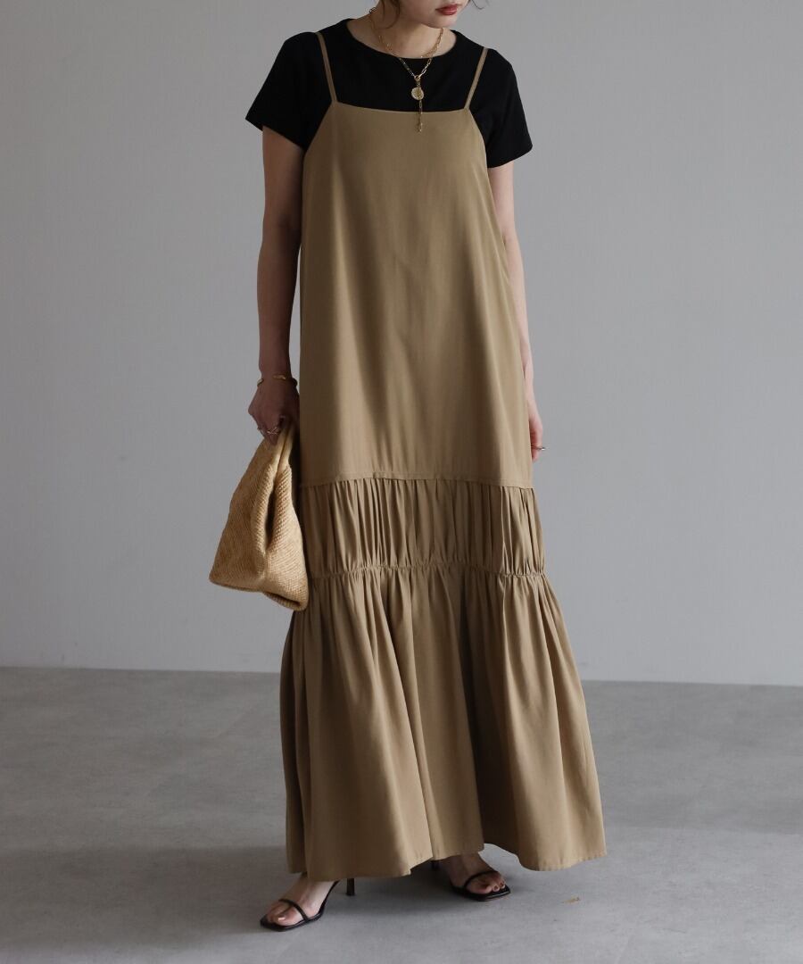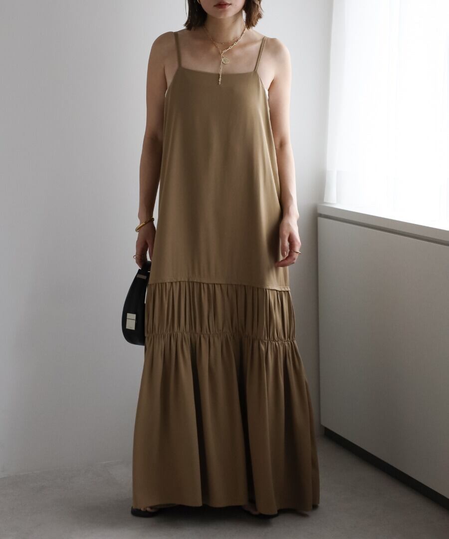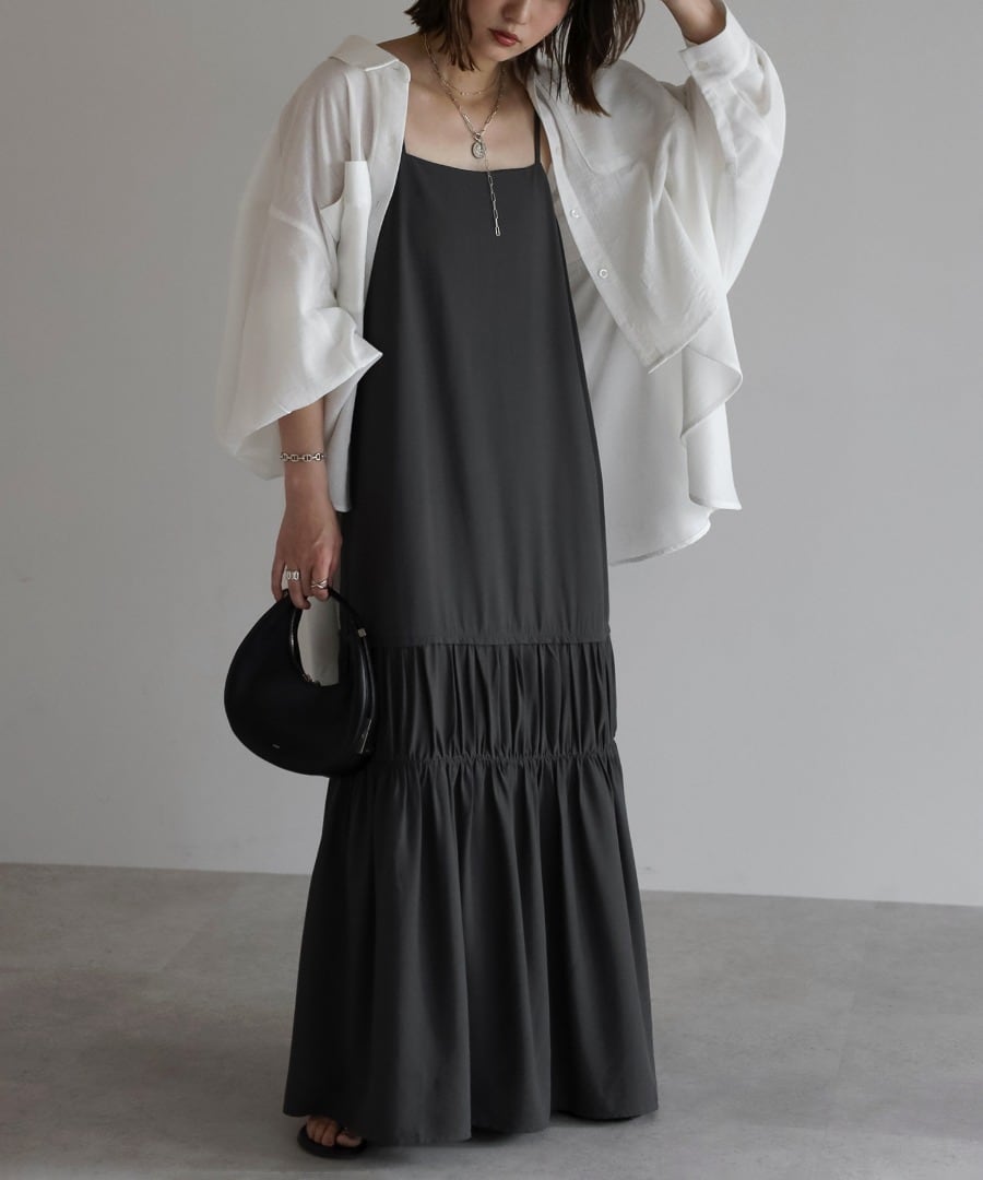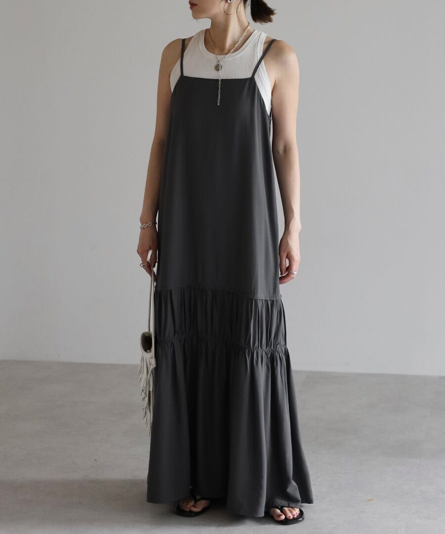 ヘルシーな肌見せが叶う、ギャザー入りのバックオープンキャミワンピ。