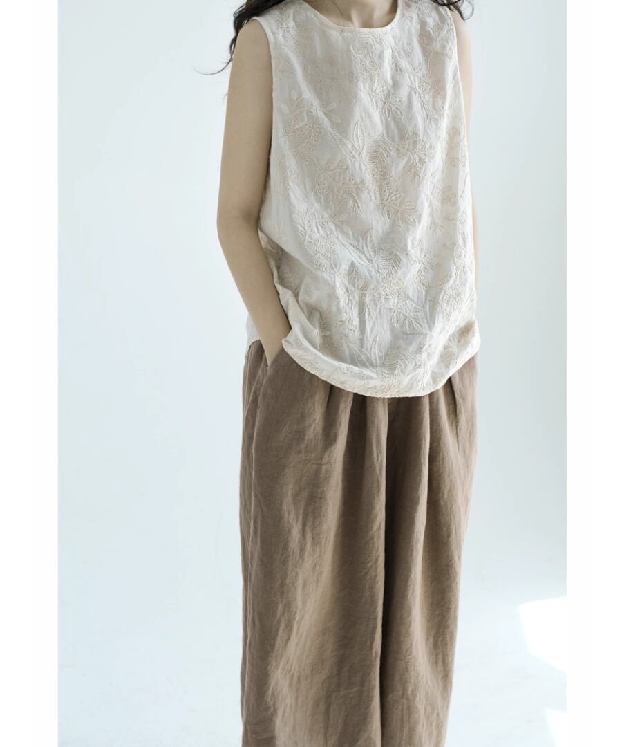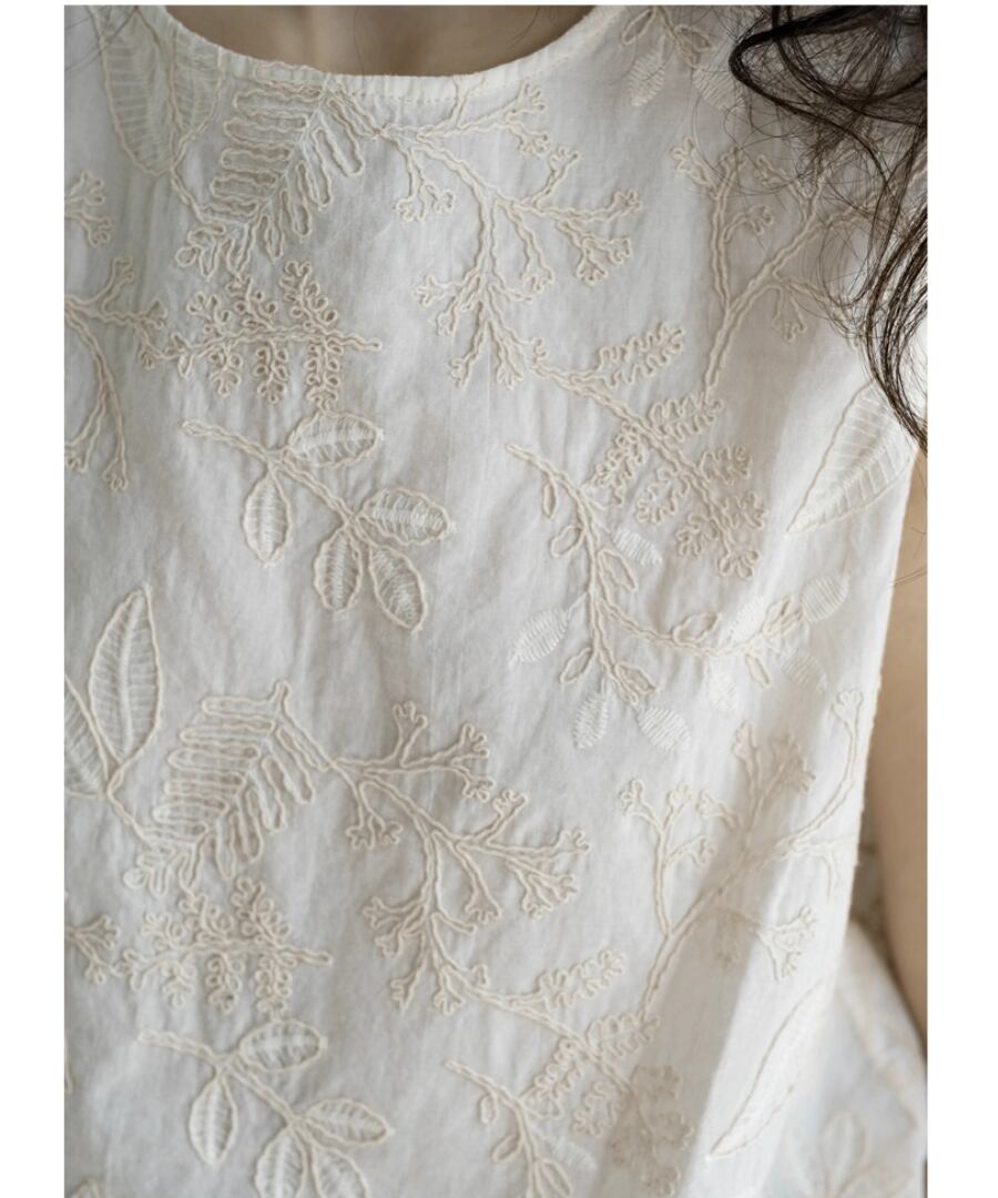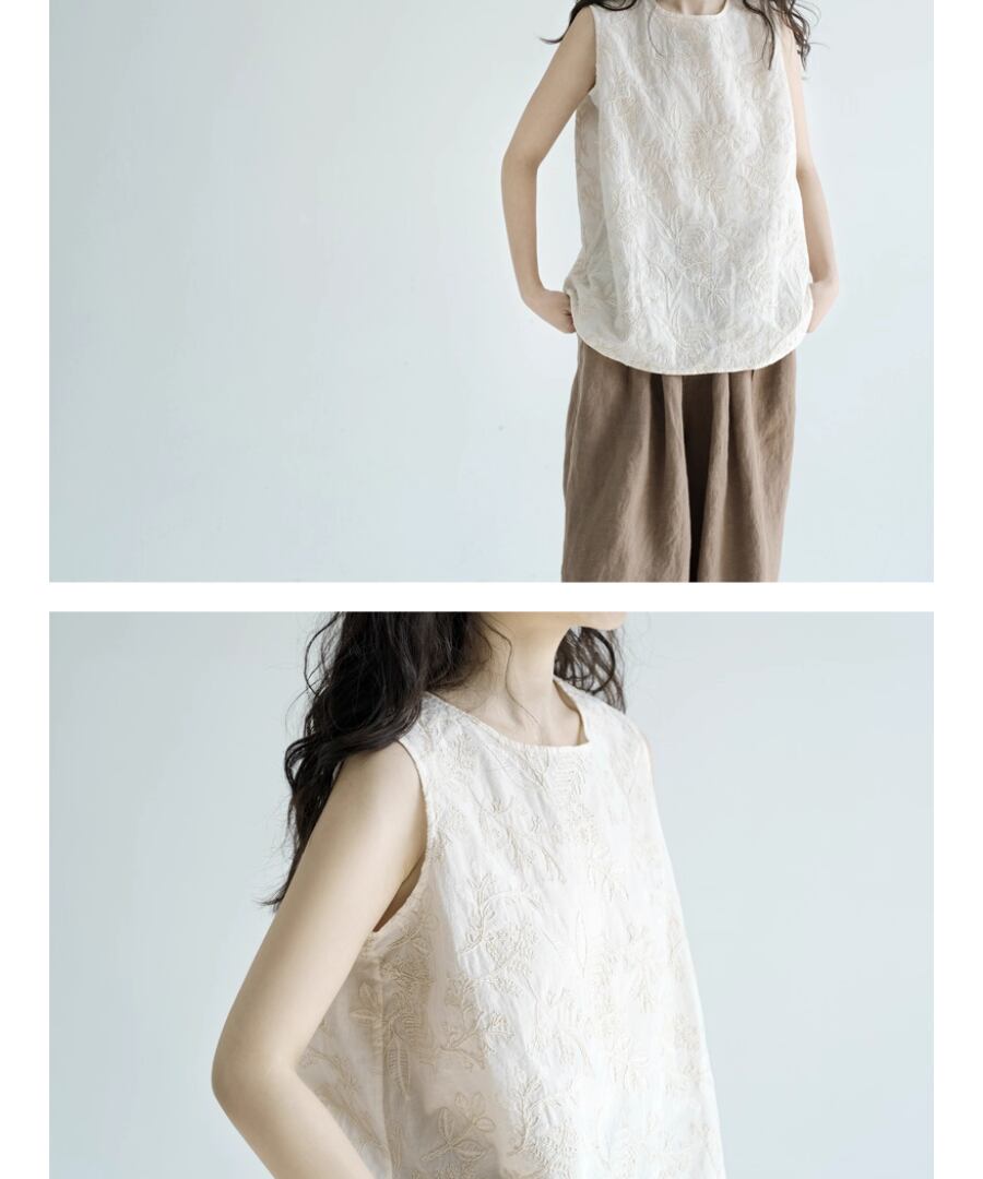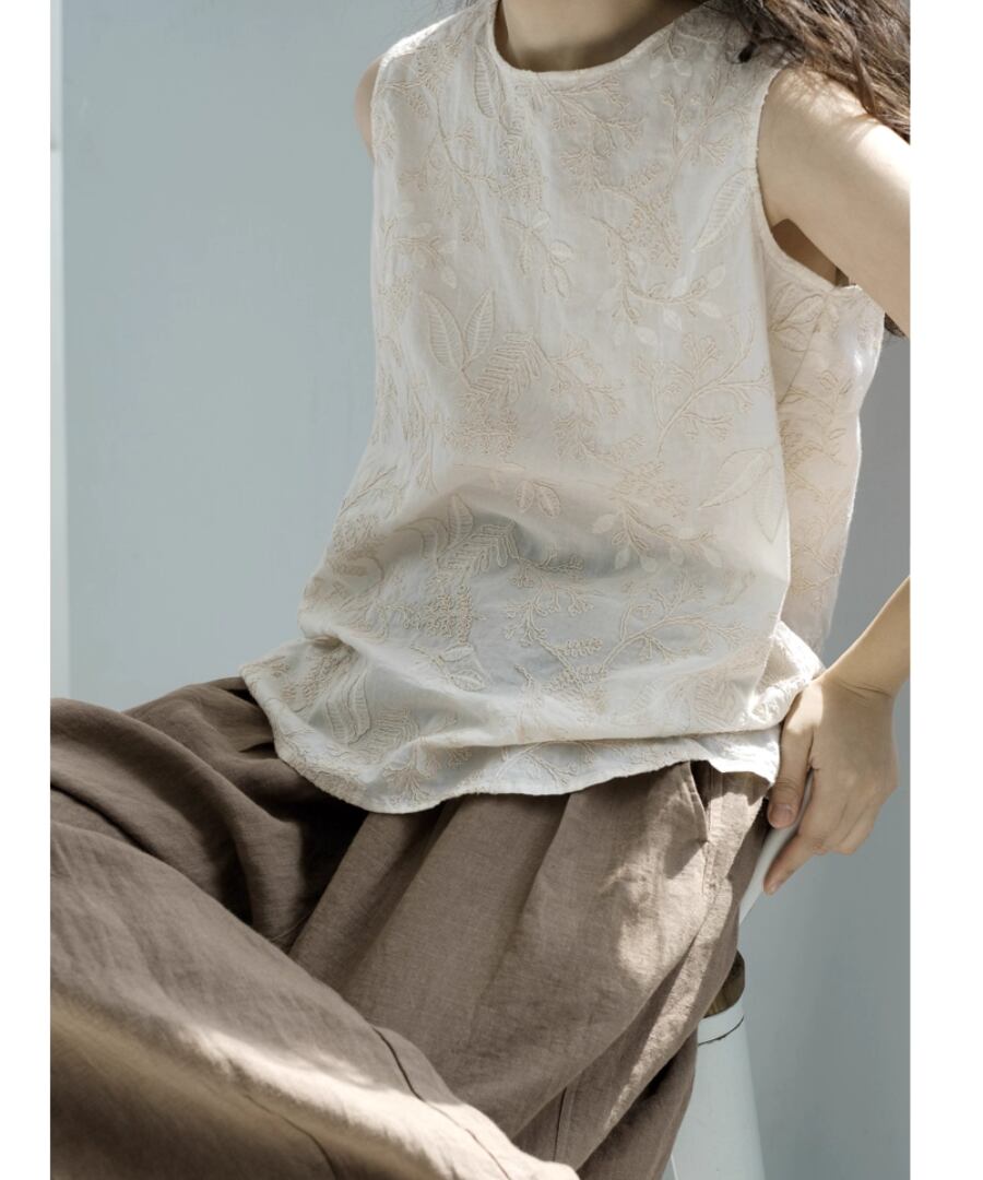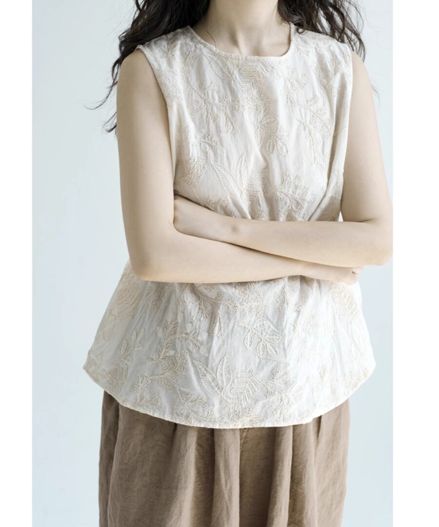 美しい刺しゅうが施され、シンプルながらも存在感のあるタンクトップ。