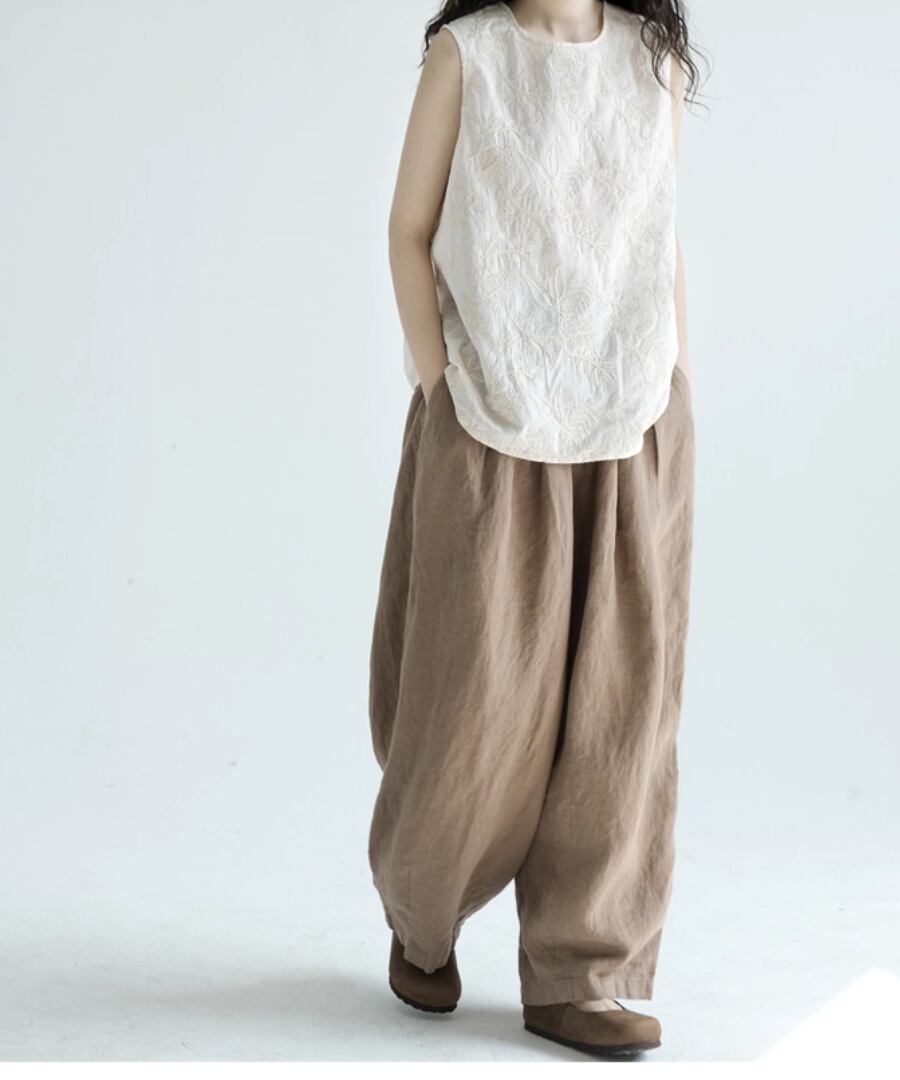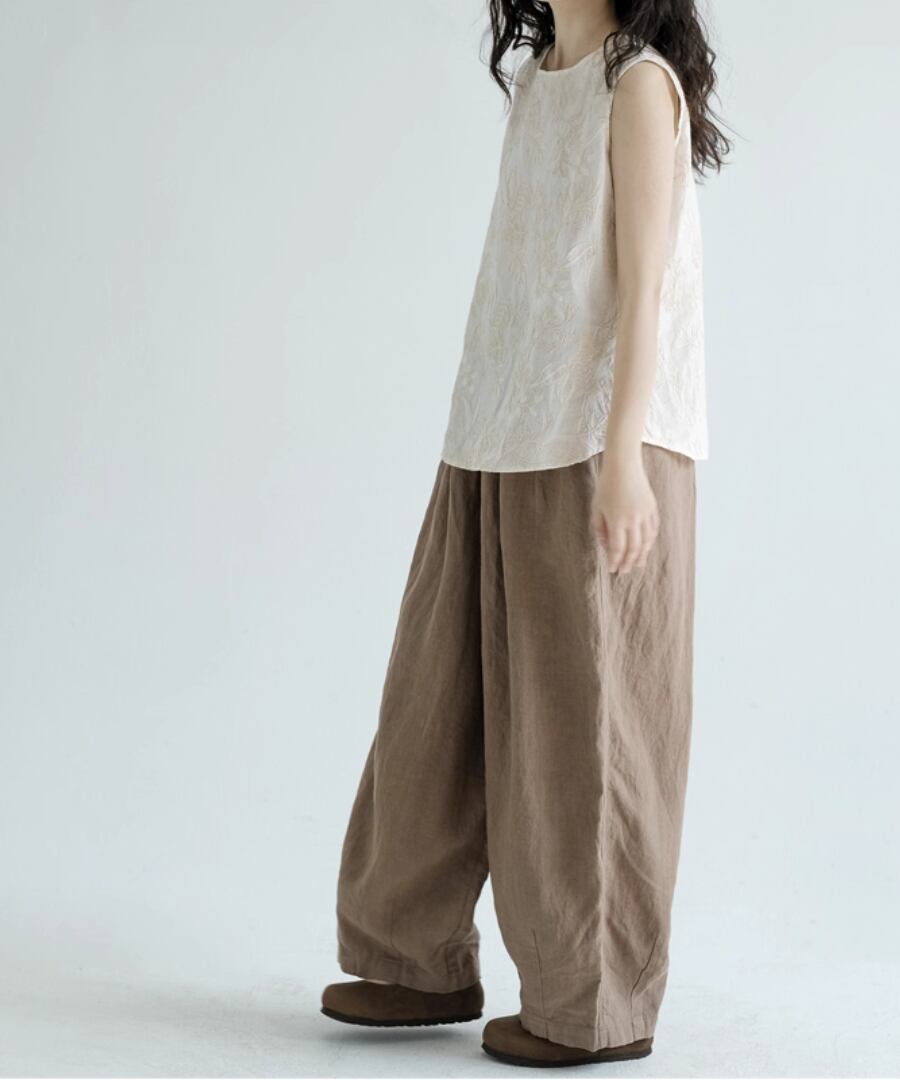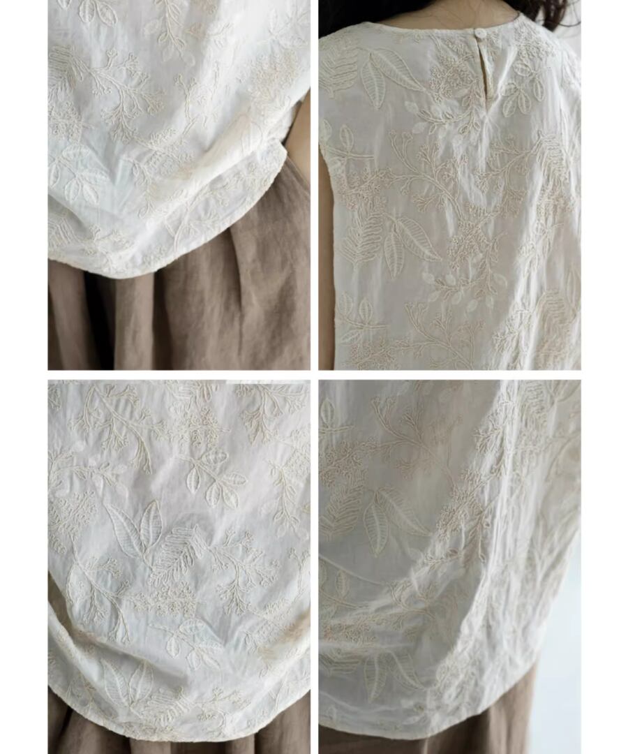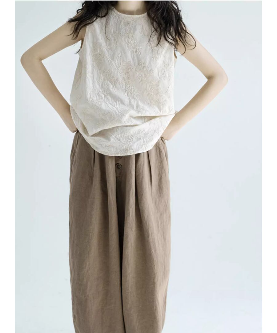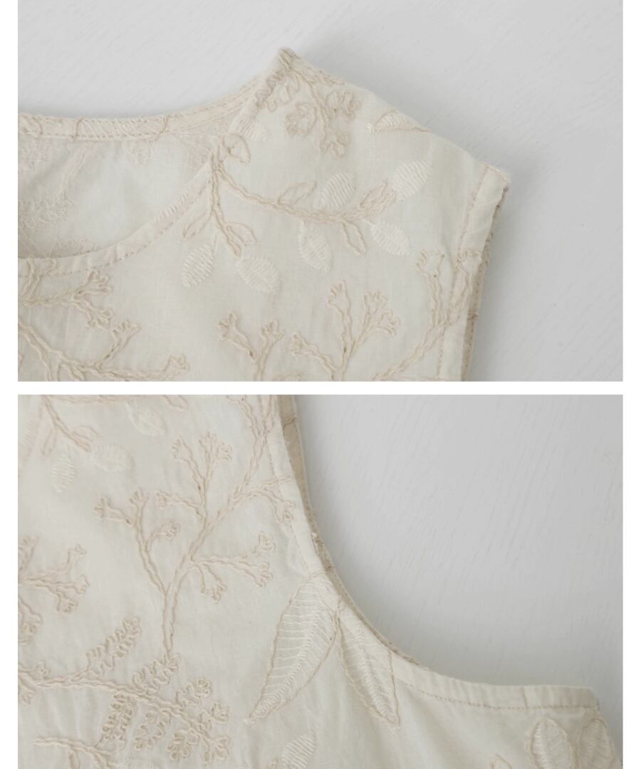 美しい刺しゅうが施され、シンプルながらも存在感のあるタンクトップ。