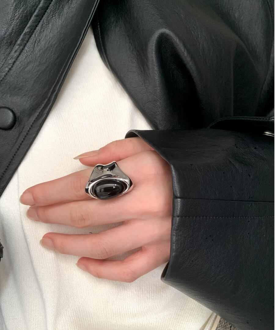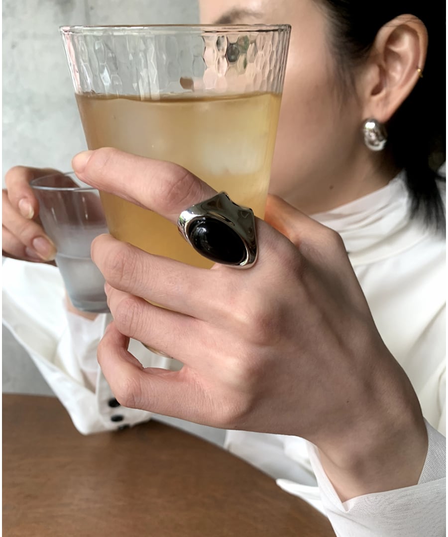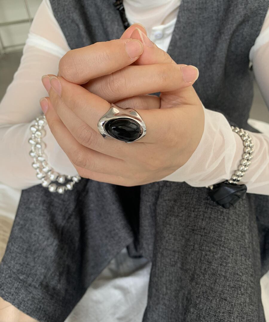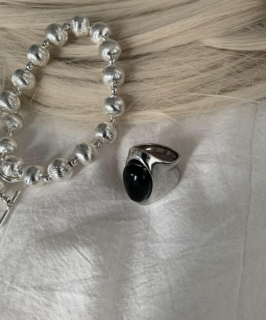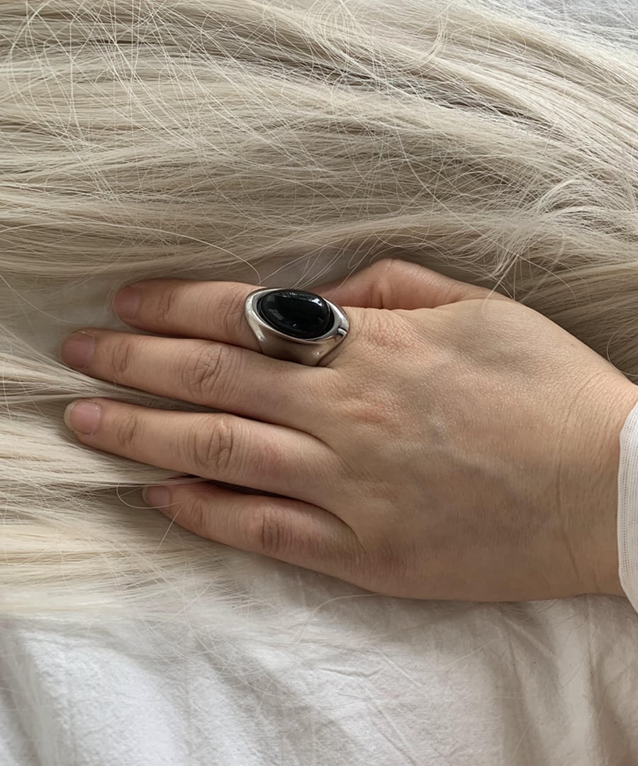 存在感のある黒曜石を使用したシルバーリングは、スタイリッシュなアクセントを手元にプラス。