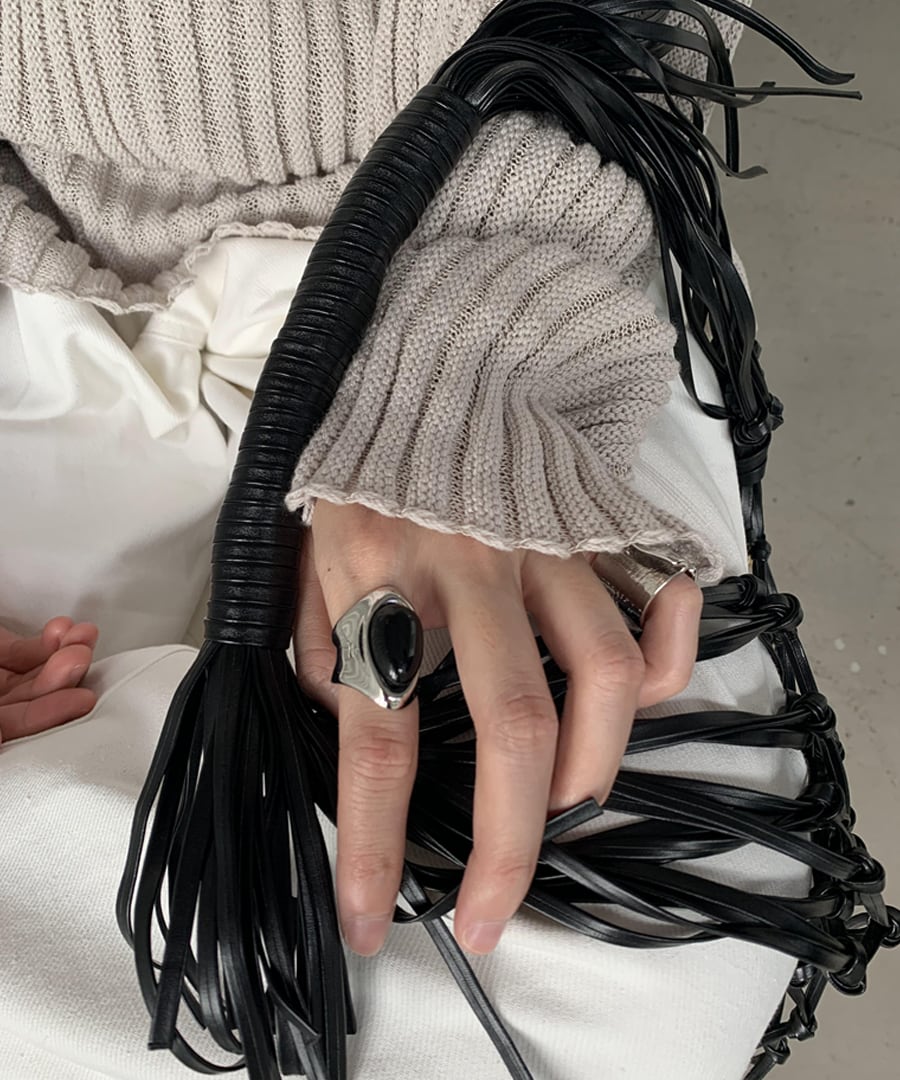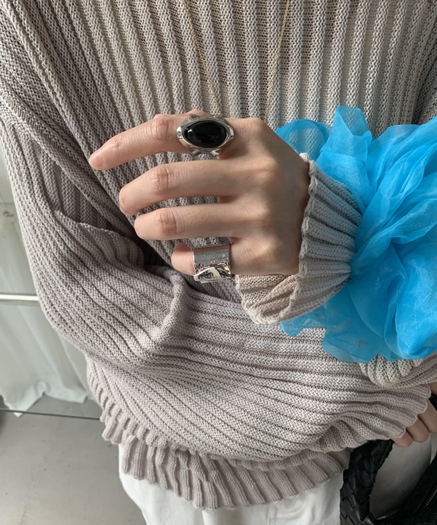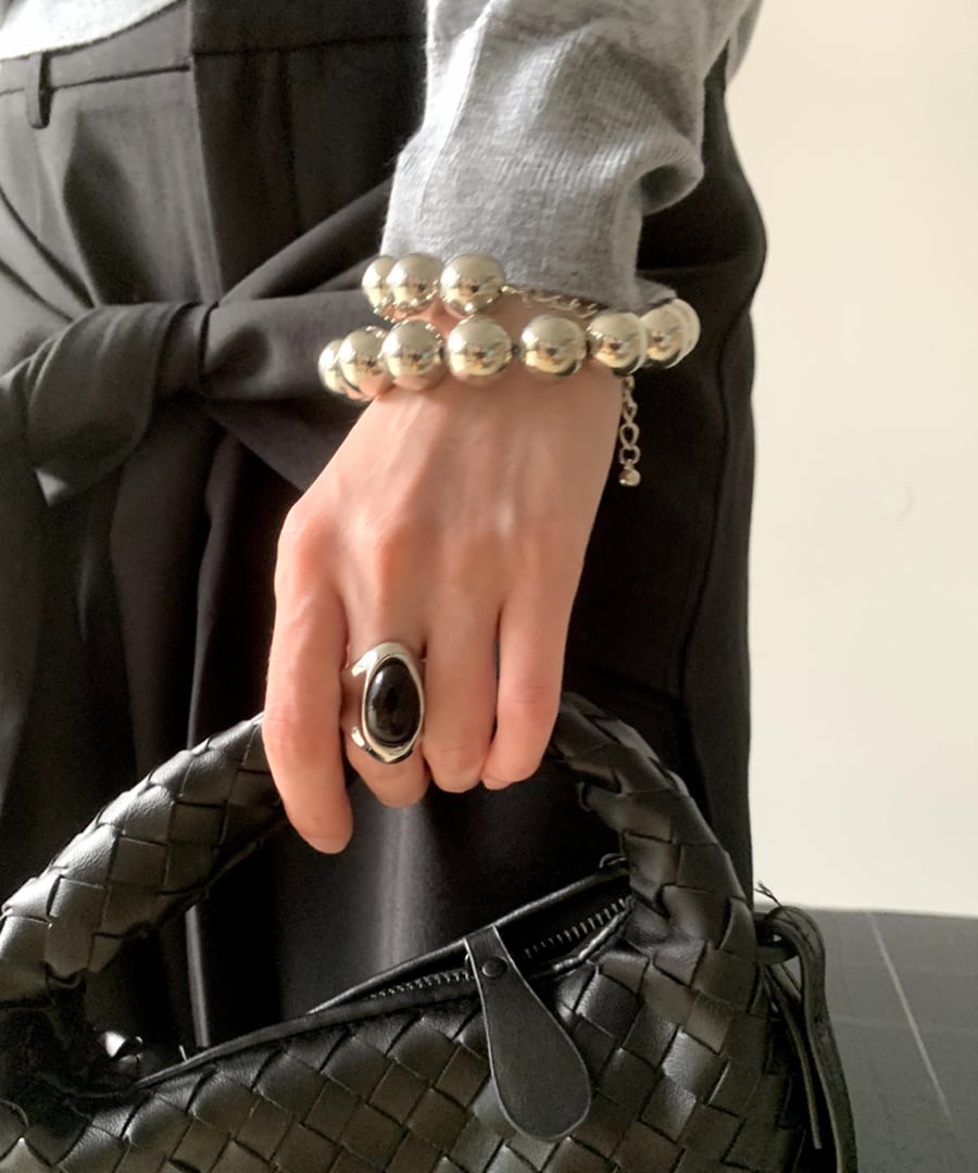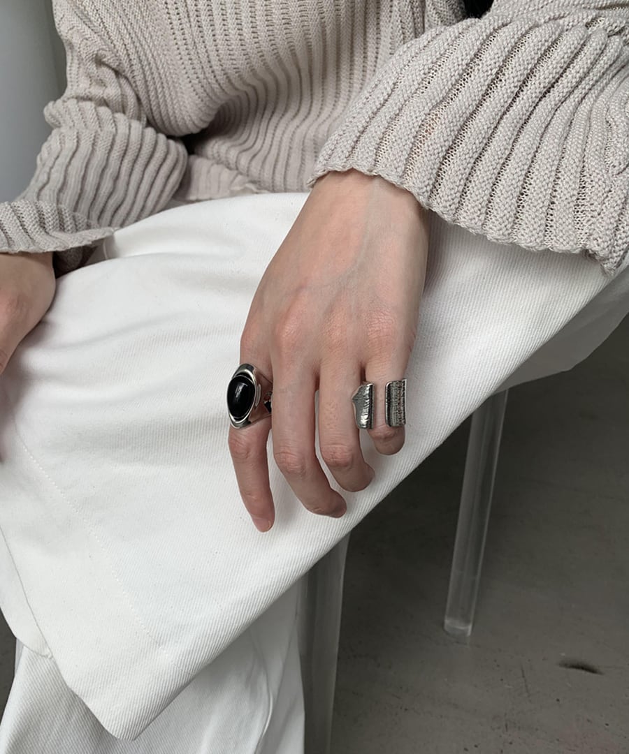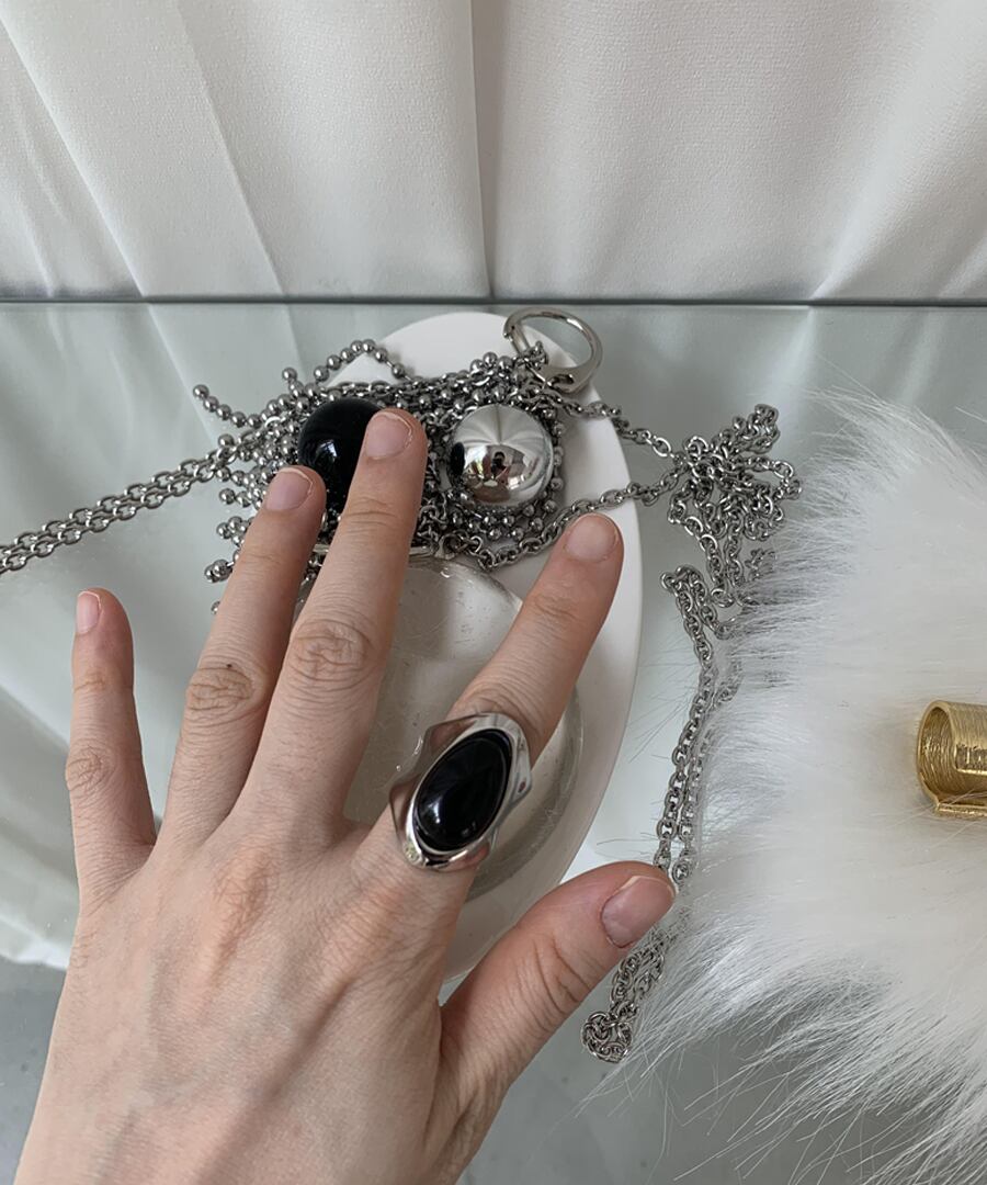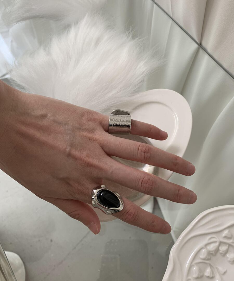 存在感のある黒曜石を使用したシルバーリングは、スタイリッシュなアクセントを手元にプラス。