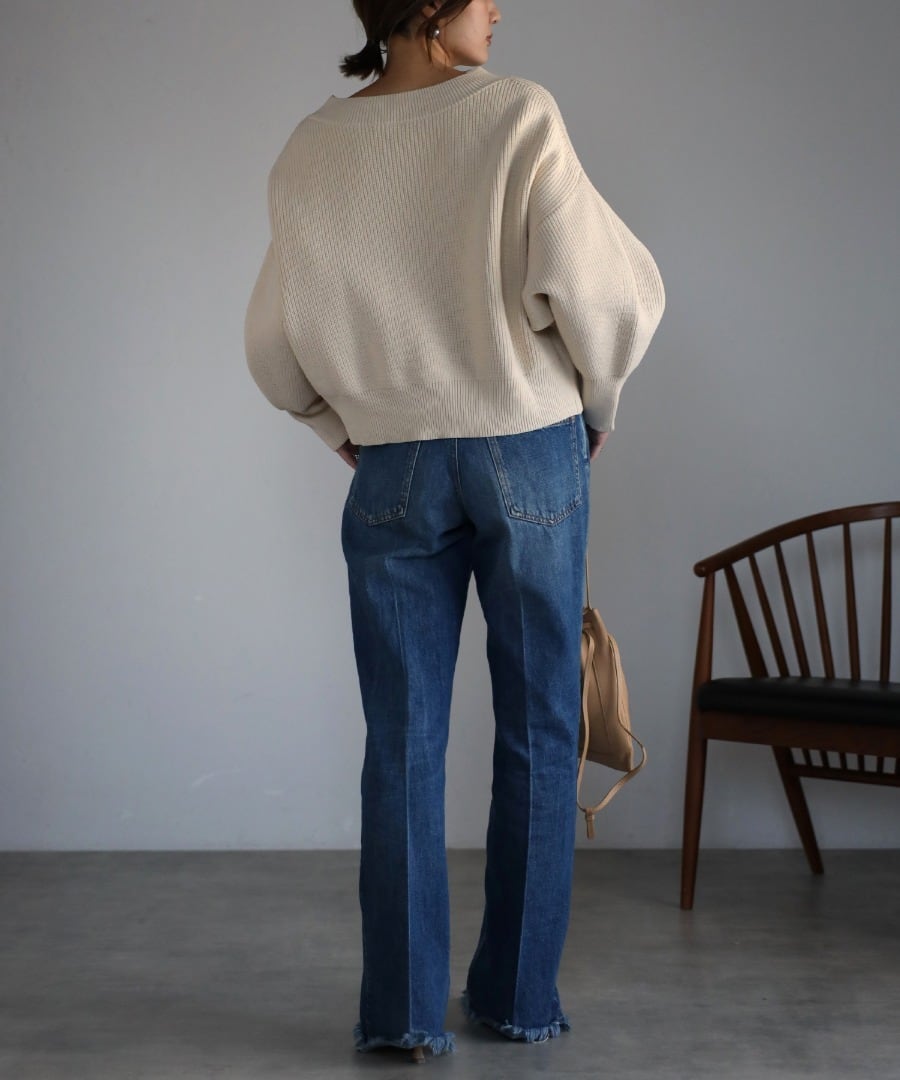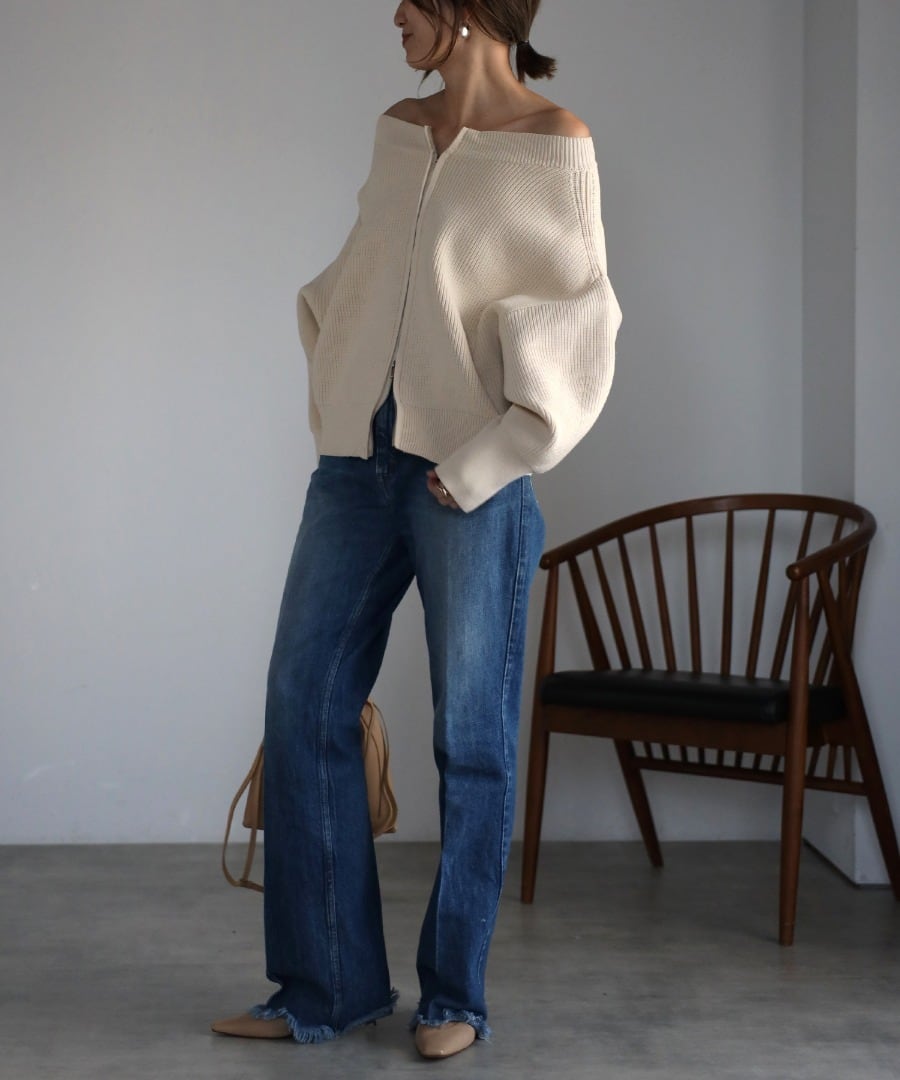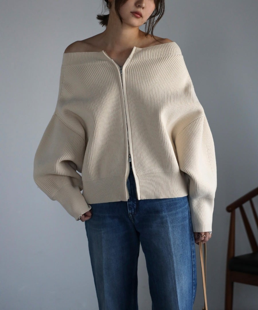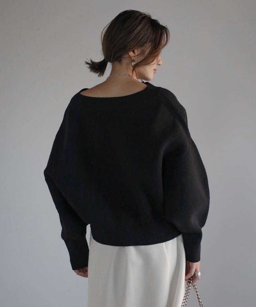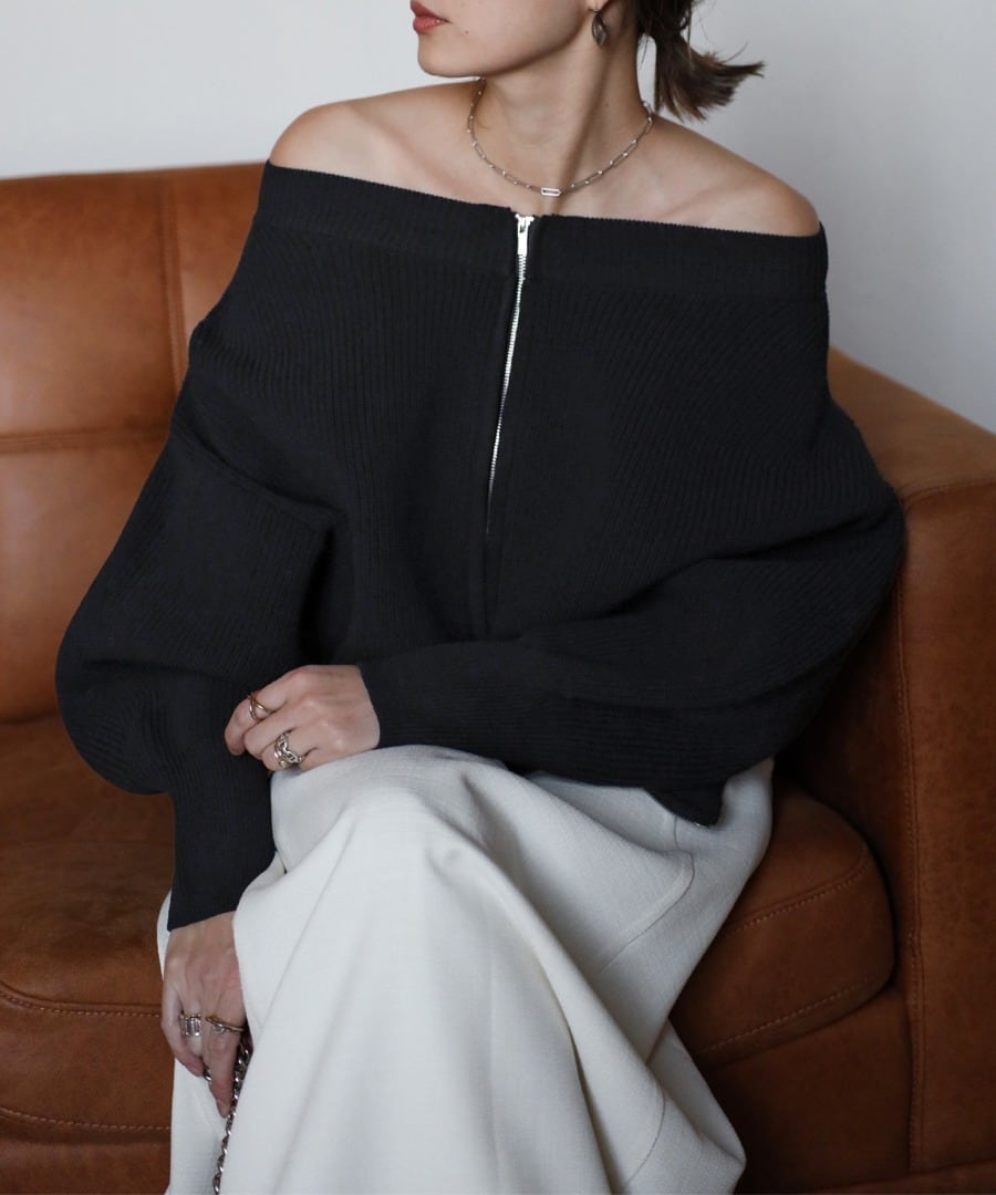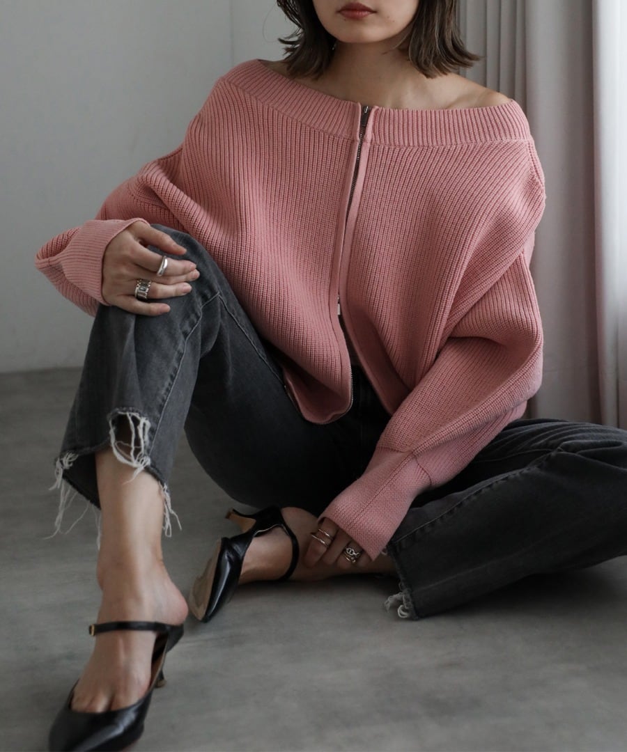 ボートネックで上品な着こなしはもちろん、トレンドのオフショルダーやジップをあけて首元を抜くアレンジも◎
