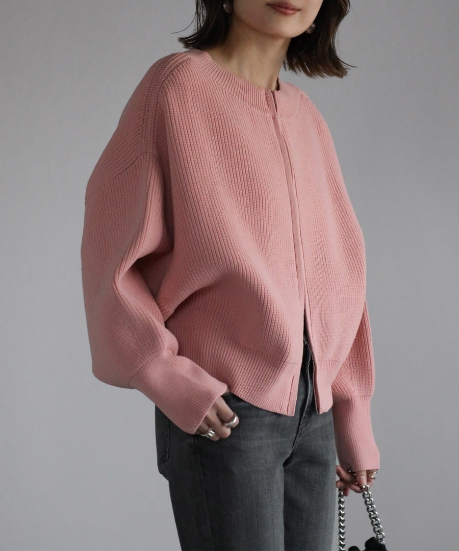柔らかなスポンディッシュニットを使用した、軽やかな着心地のジップカーディガン。