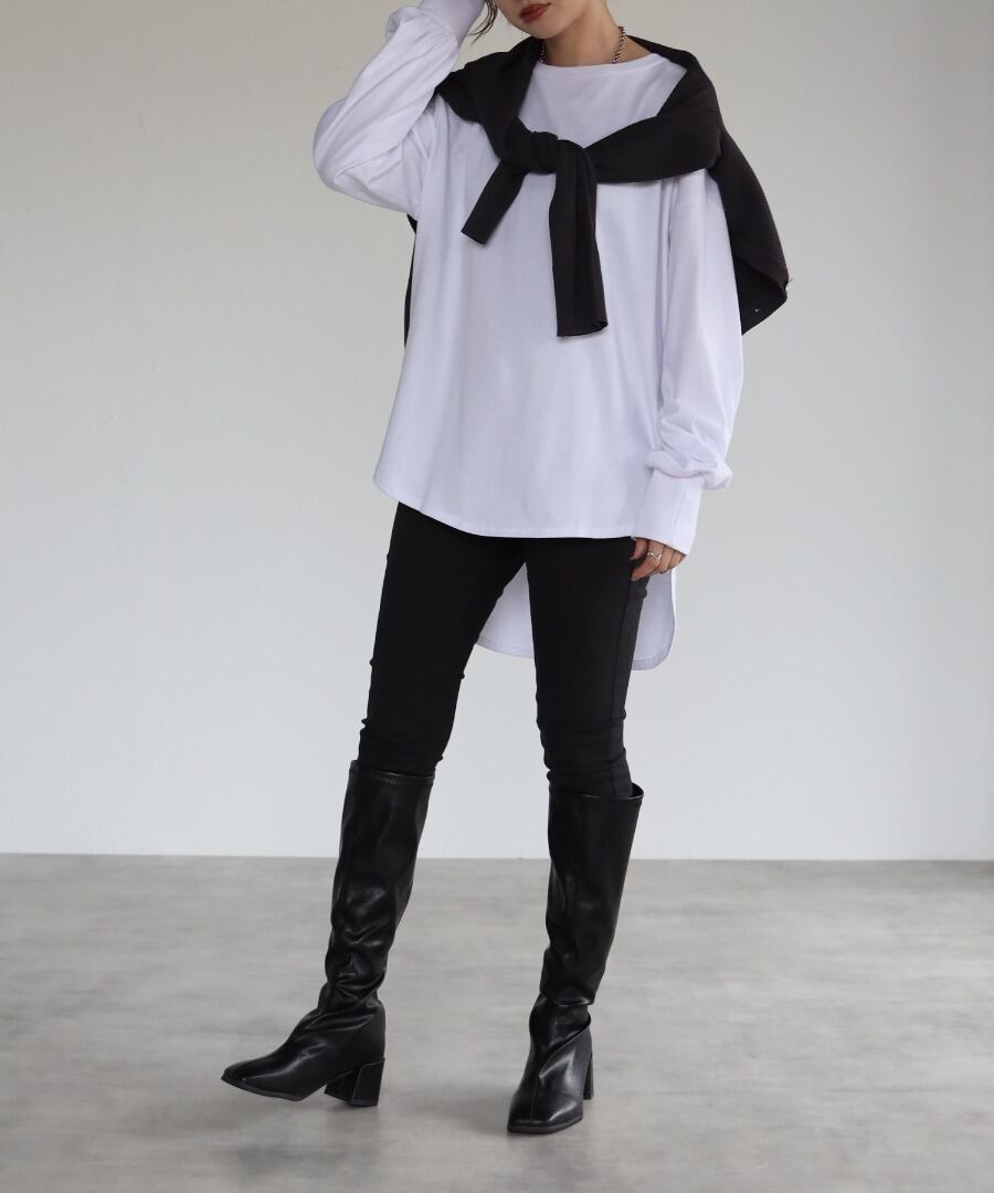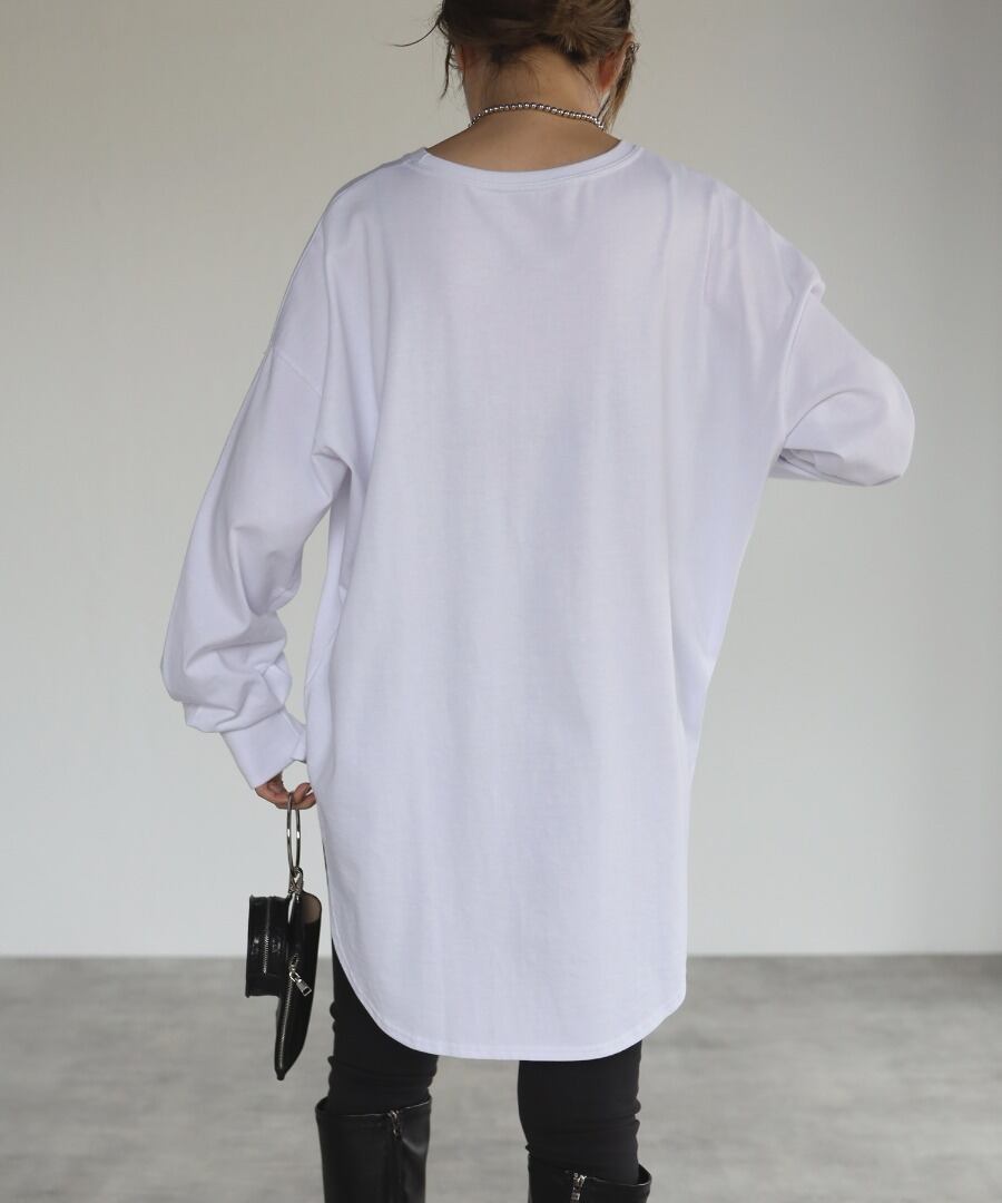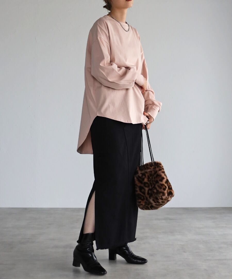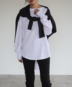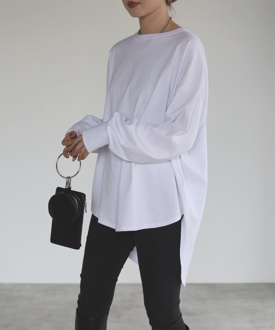 前後差サイドスリットコットンロンT【t-10163】.