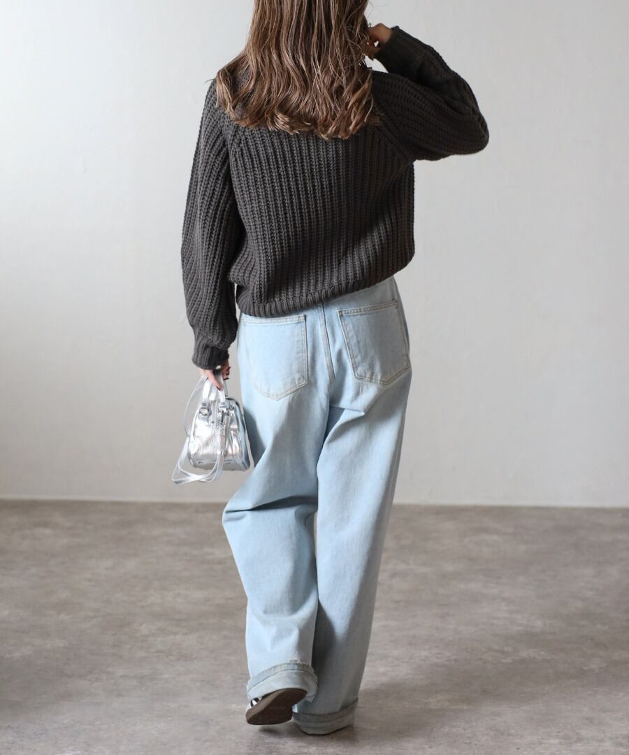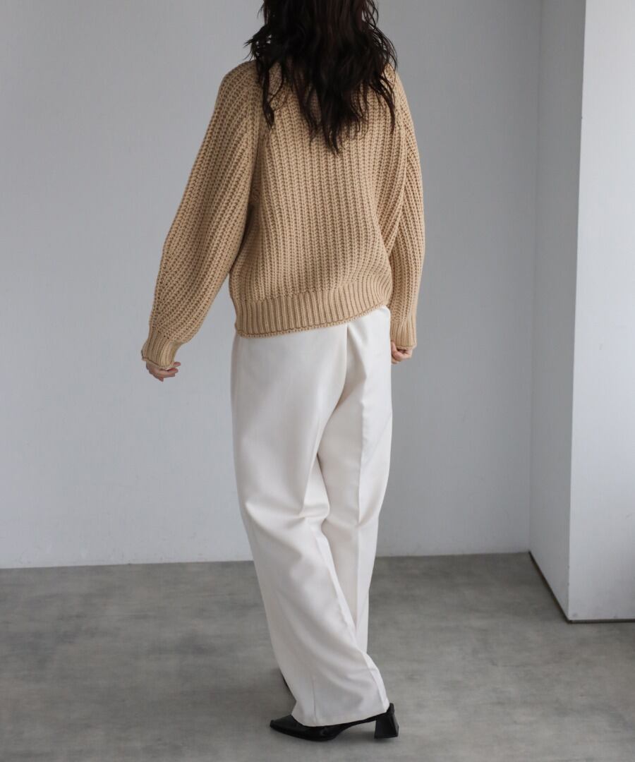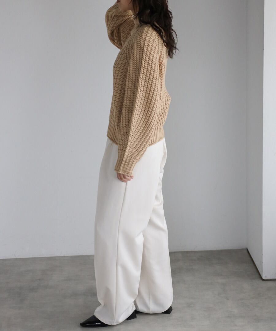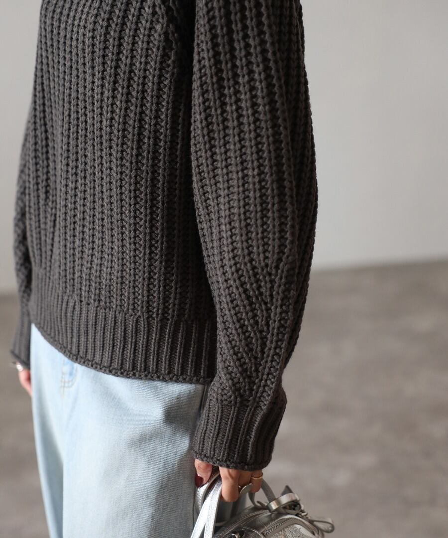 ざっくりとした畔編みが特徴的で、リラックス感と存在感を演出します。