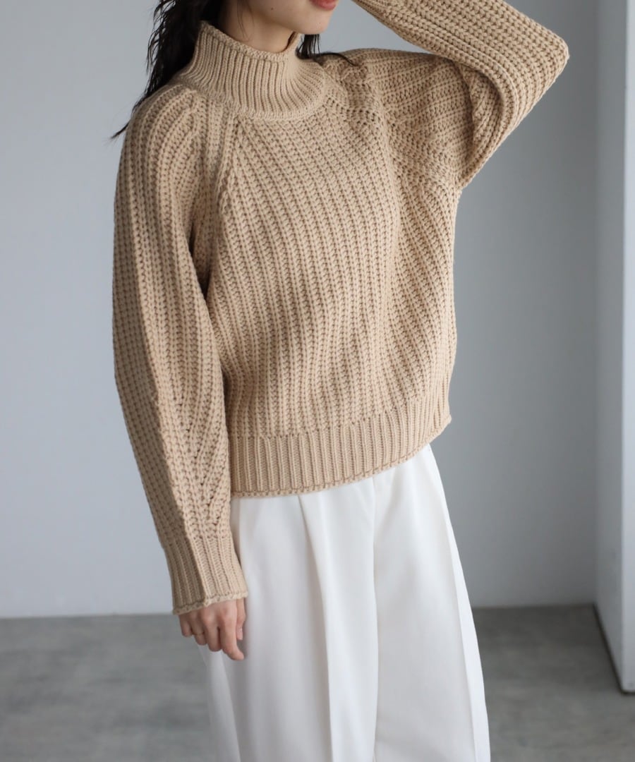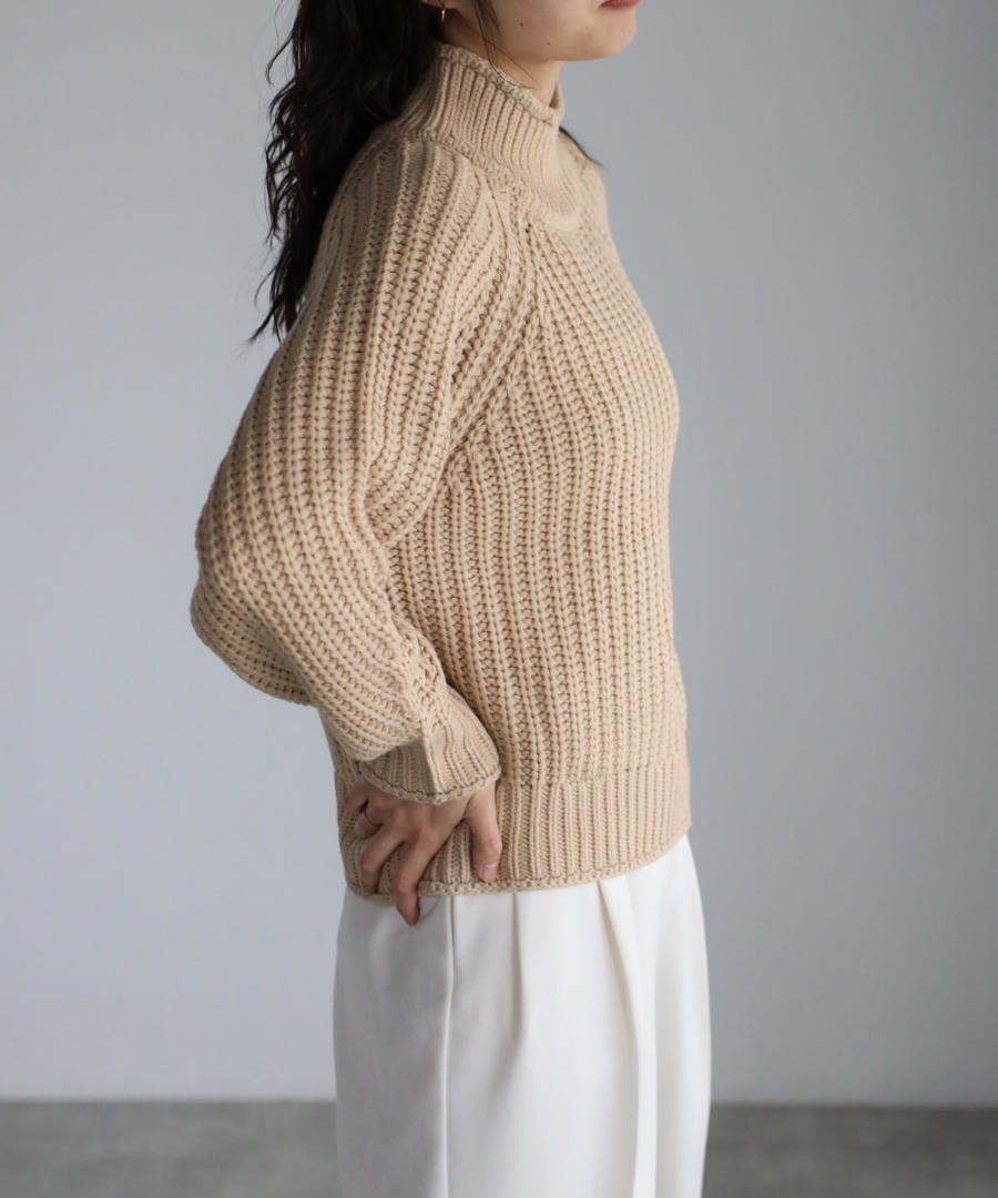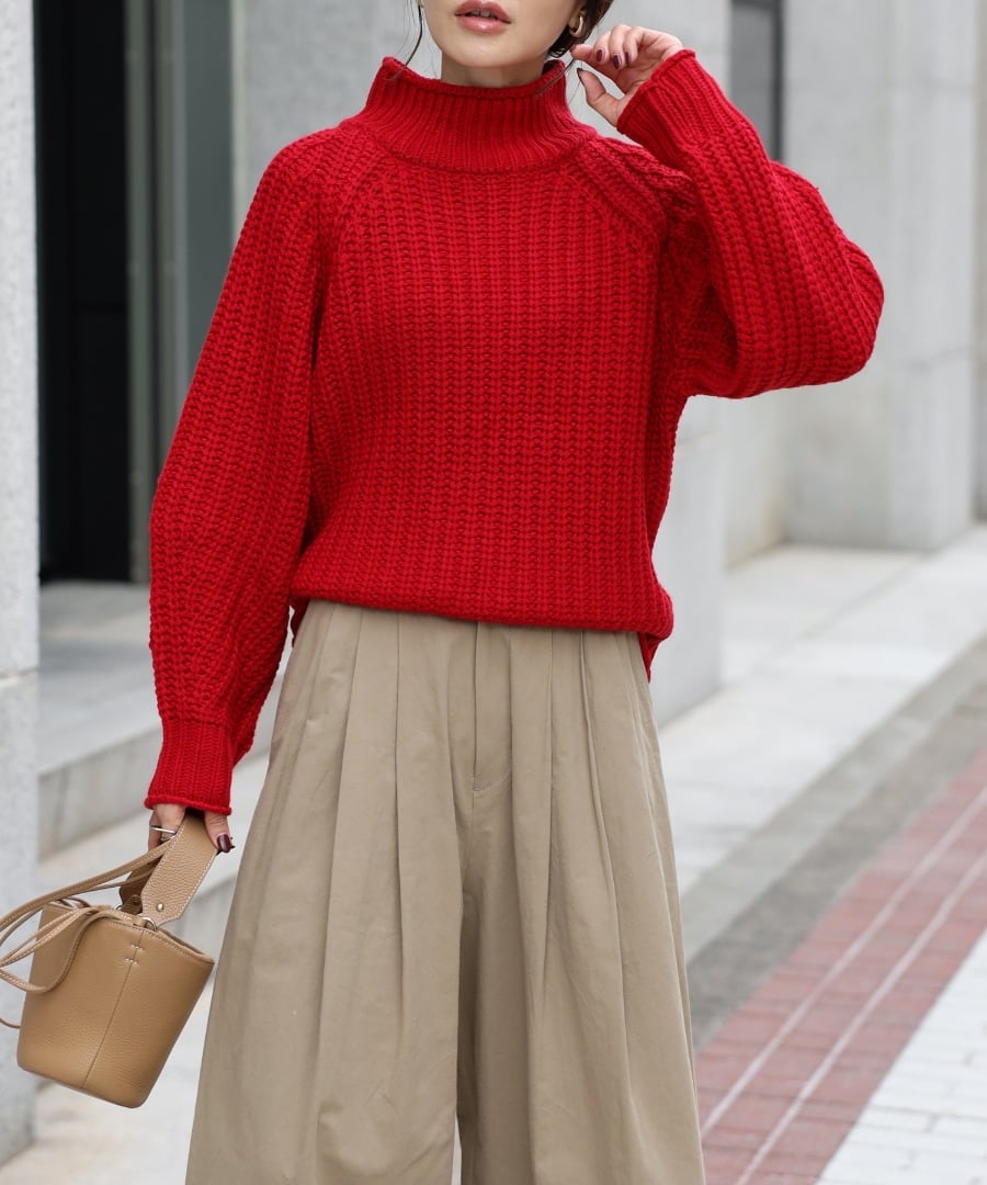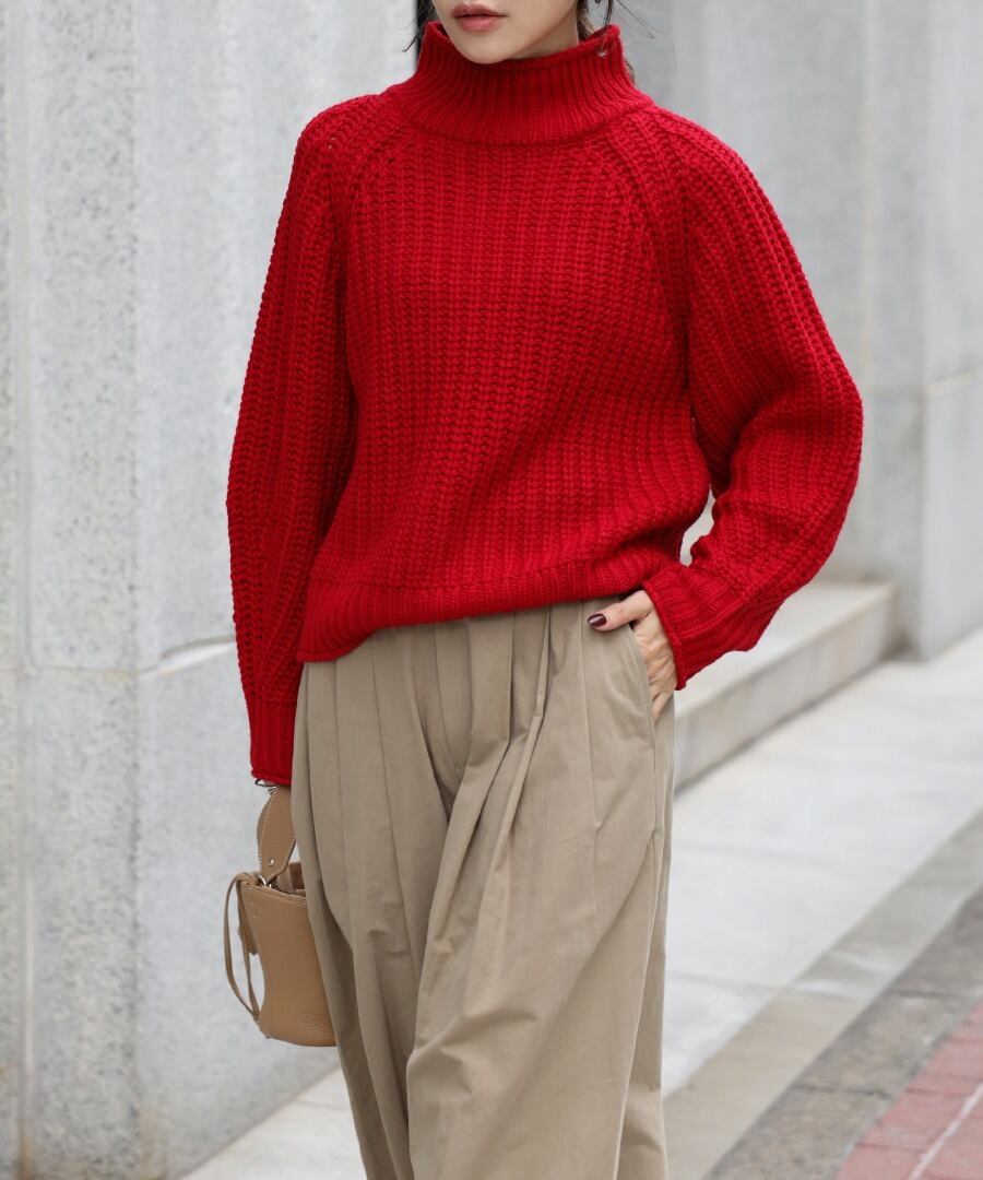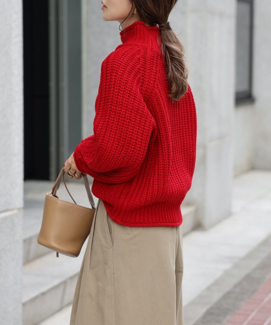 柔らかなハイネックデザインで首元まで暖かさをキープしてくれるセーター。