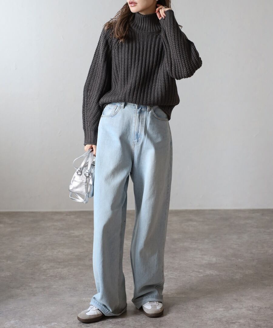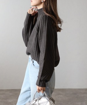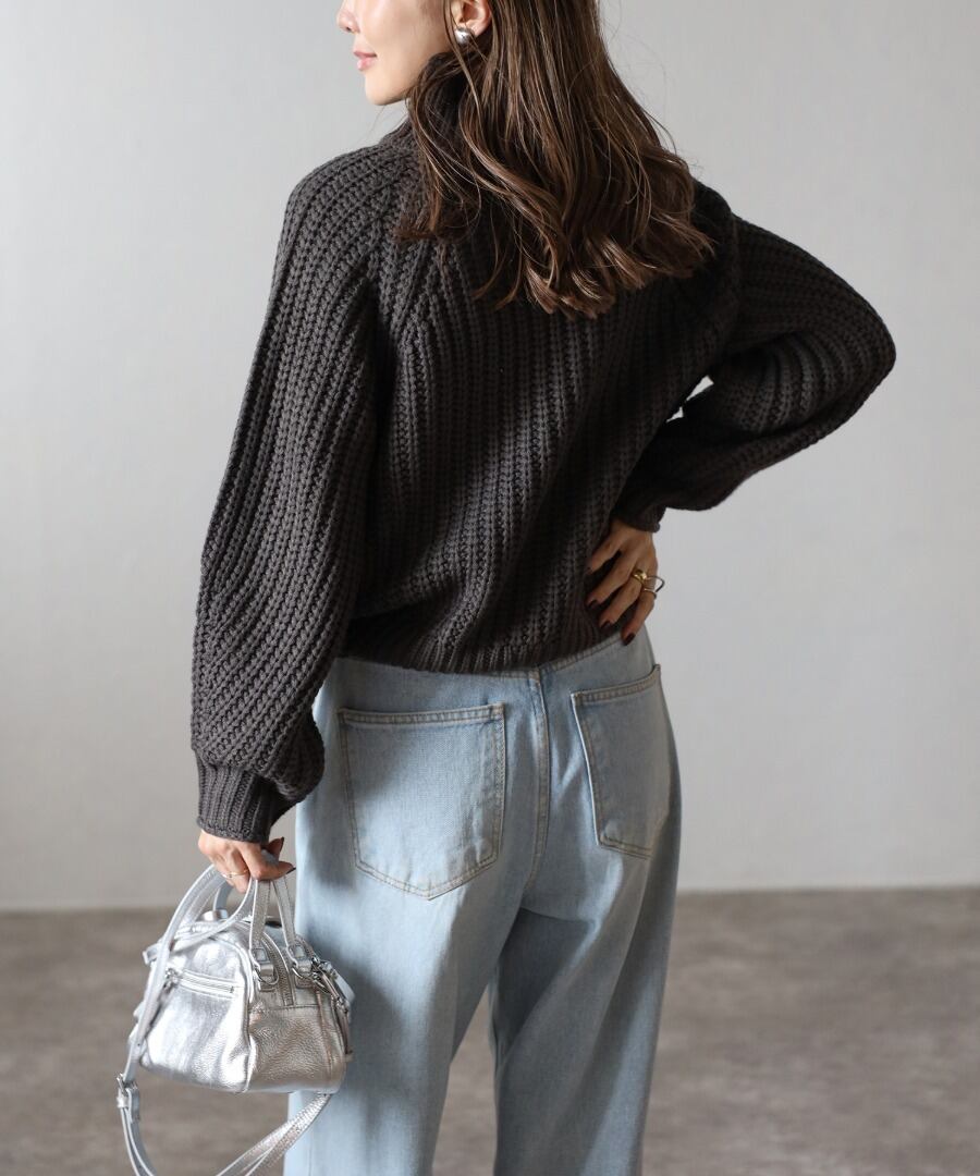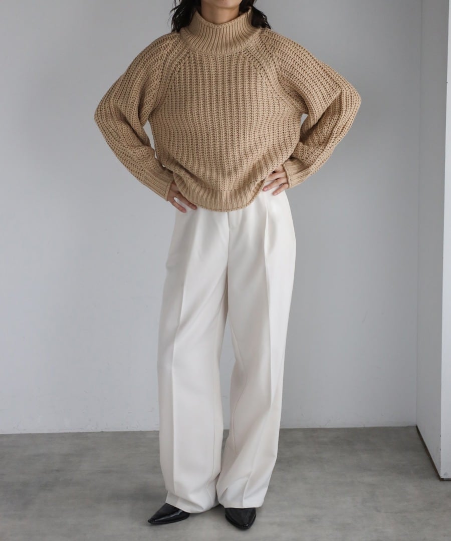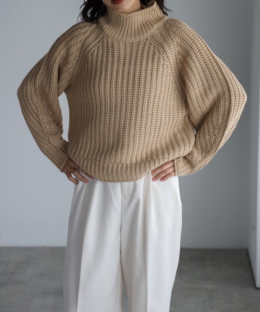柔らかなハイネックデザインで首元まで暖かさをキープしてくれるセーター。