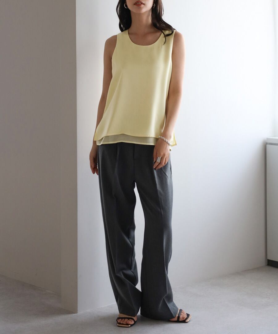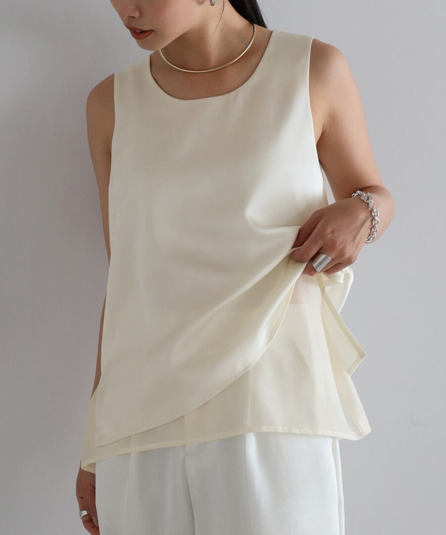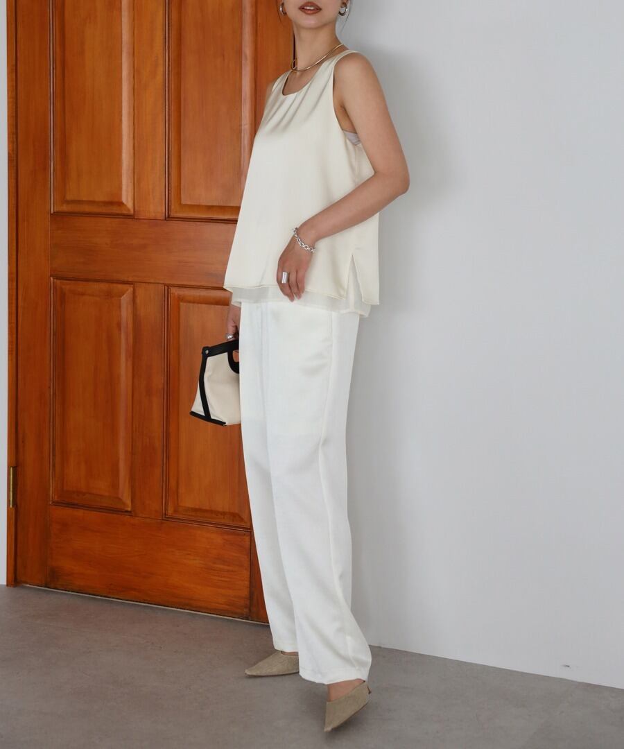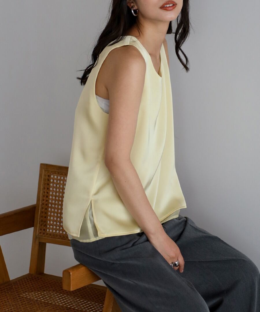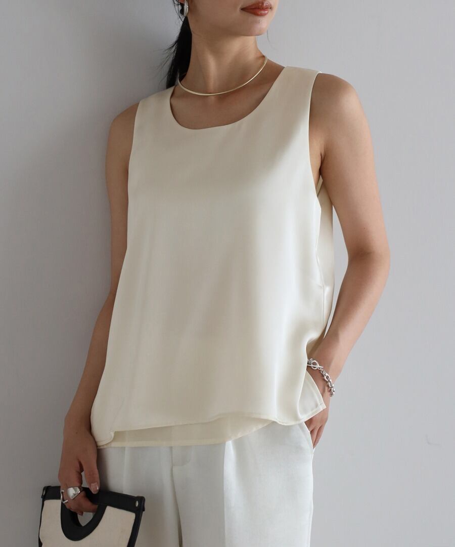 1枚でサマになる、上品サテンのレイヤード風タンク