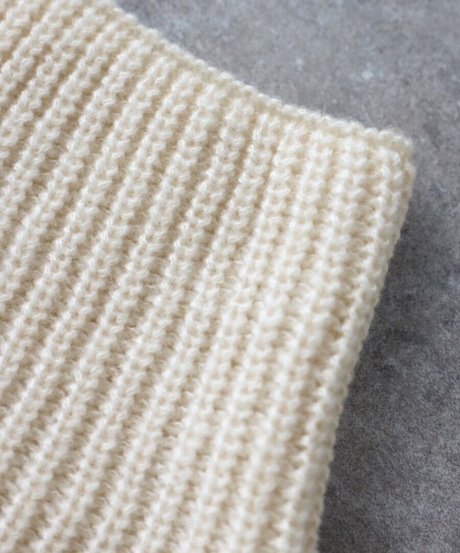 ざっくりと立体感のある編み地がポイントで、デザイン性と実用性を兼ね備えた一枚です。