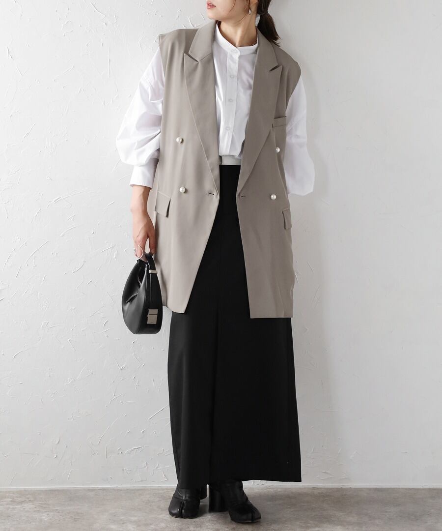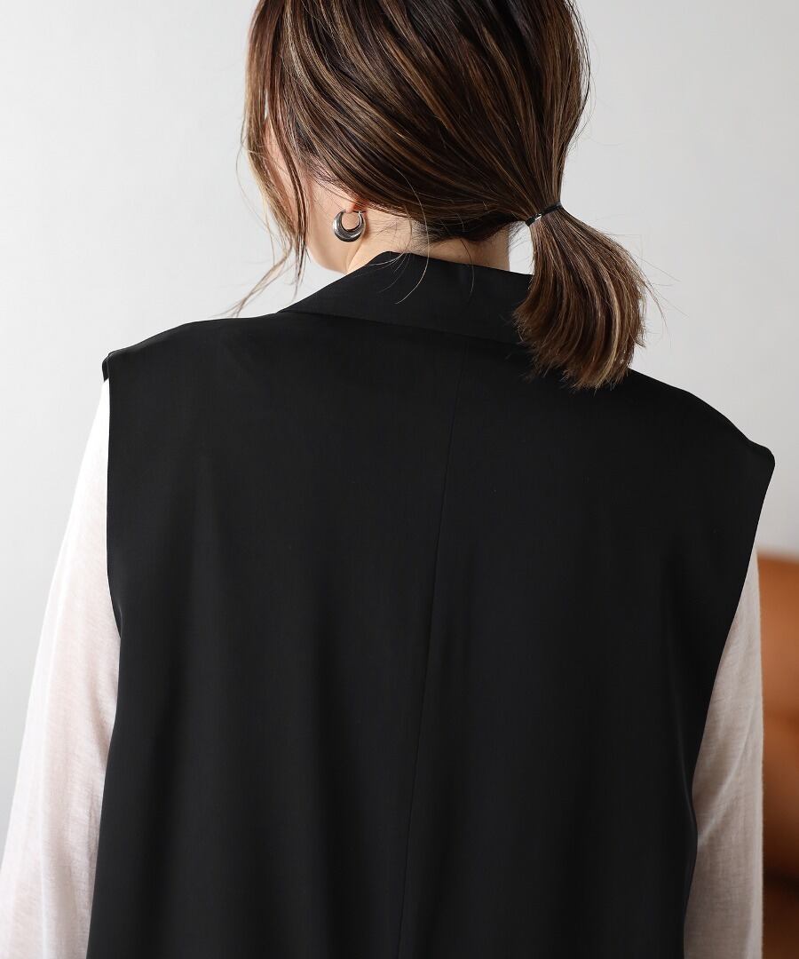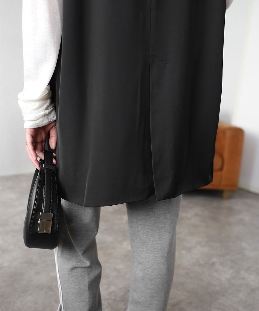 滑らかな質感が魅力のエステルスムース素材を使用したロングベスト。