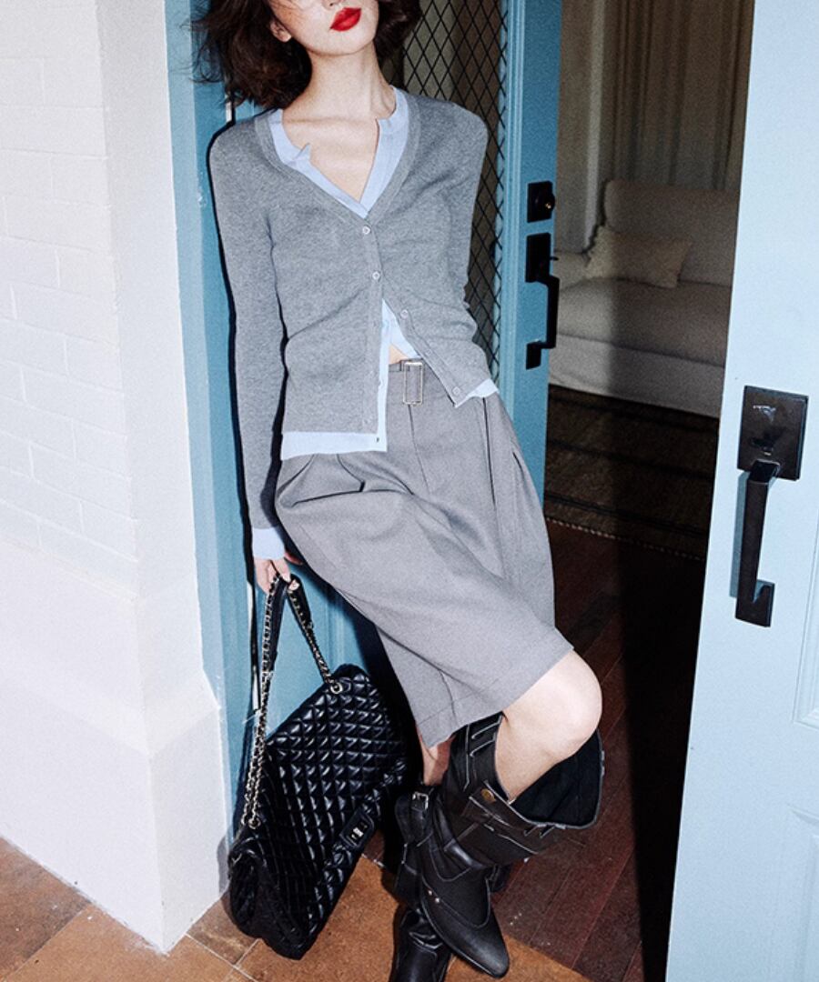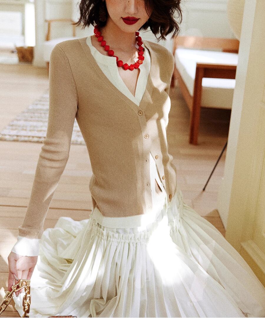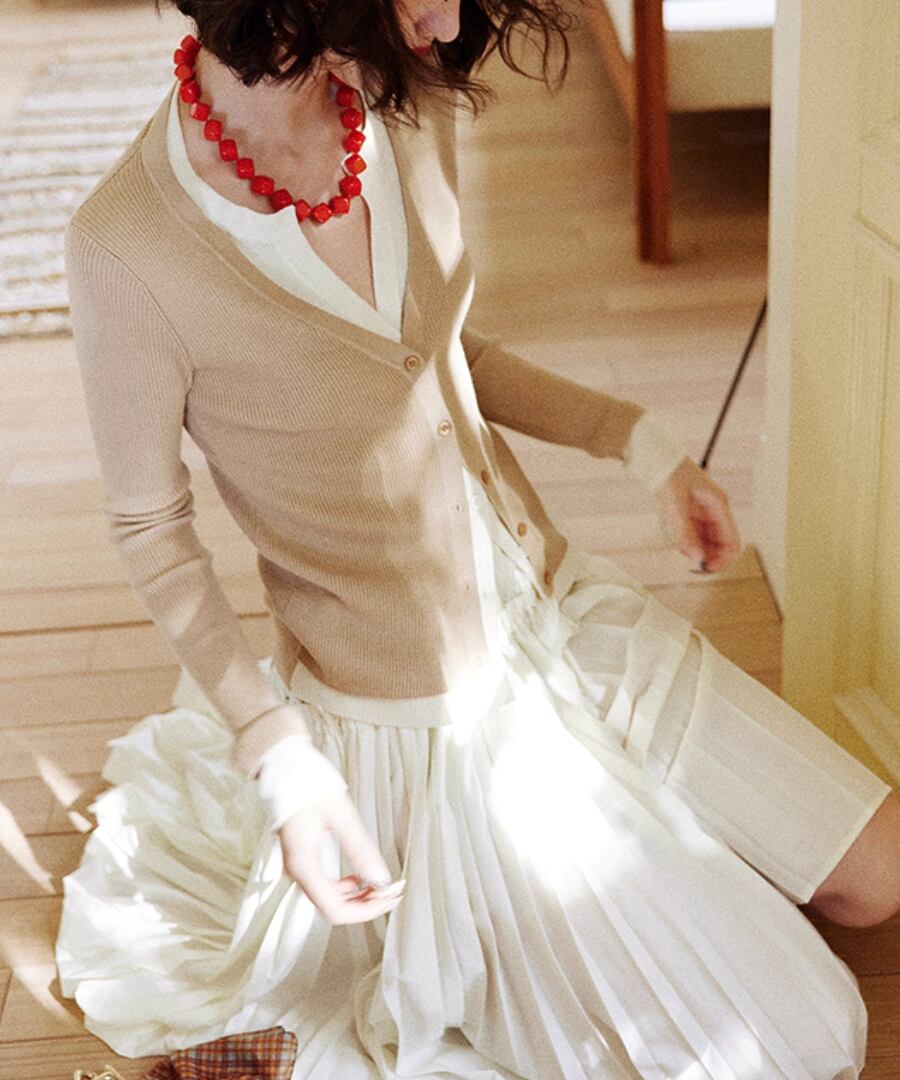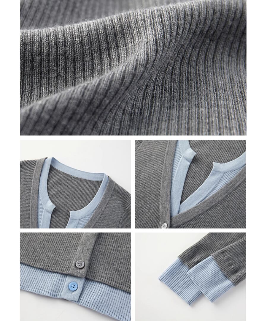 フェイクツーピース◆ニットカーディガン【t-10458】