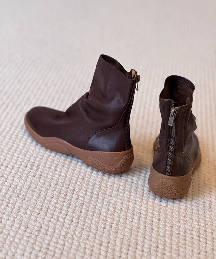 柔らかなシープスキン素材を使用し、どんなシーンでも安心して履けるブーツです。