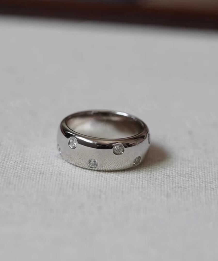 その輝きは、点在するジルコンの透き通る美しさによって一層引き立てられ、指先に華やかさをもたらします。